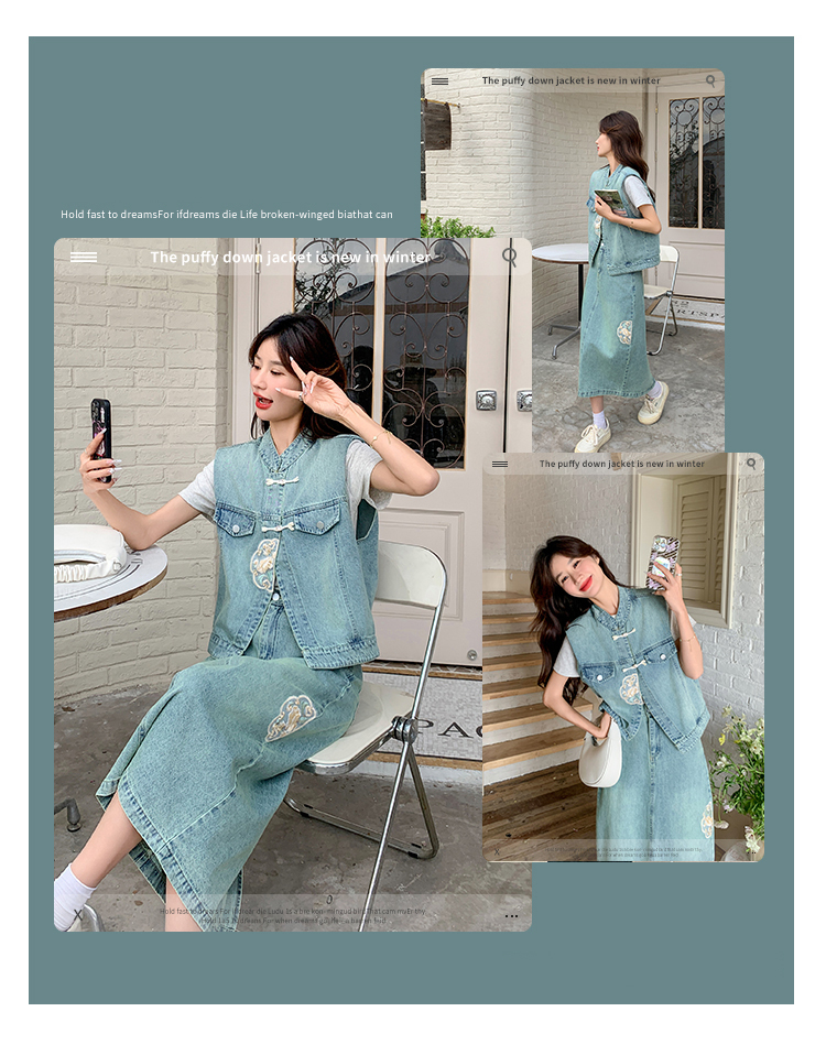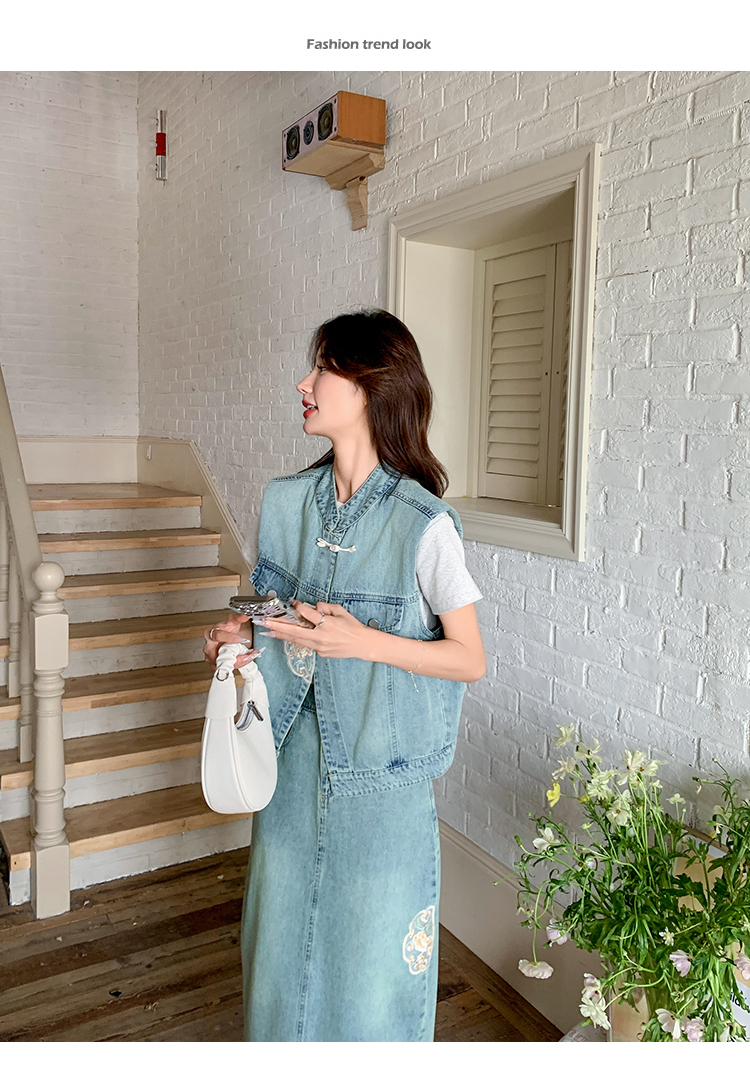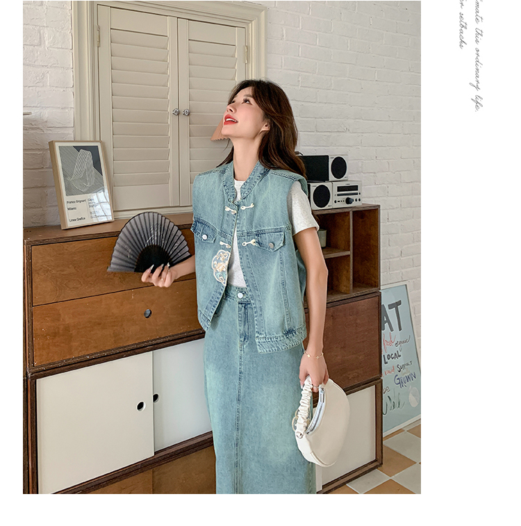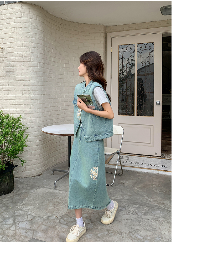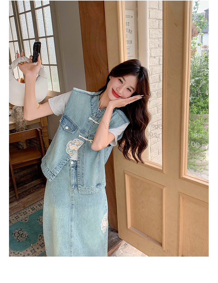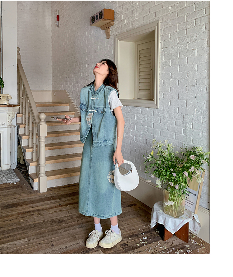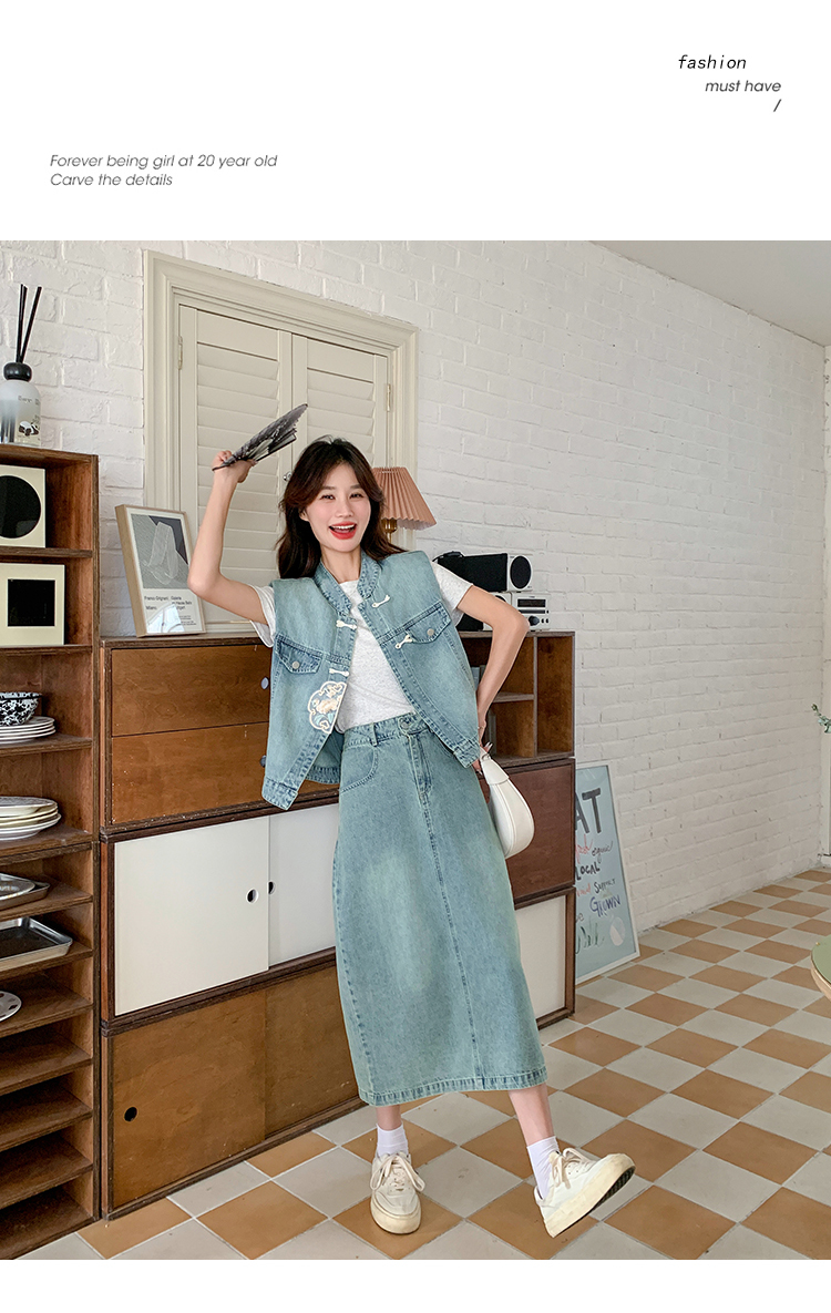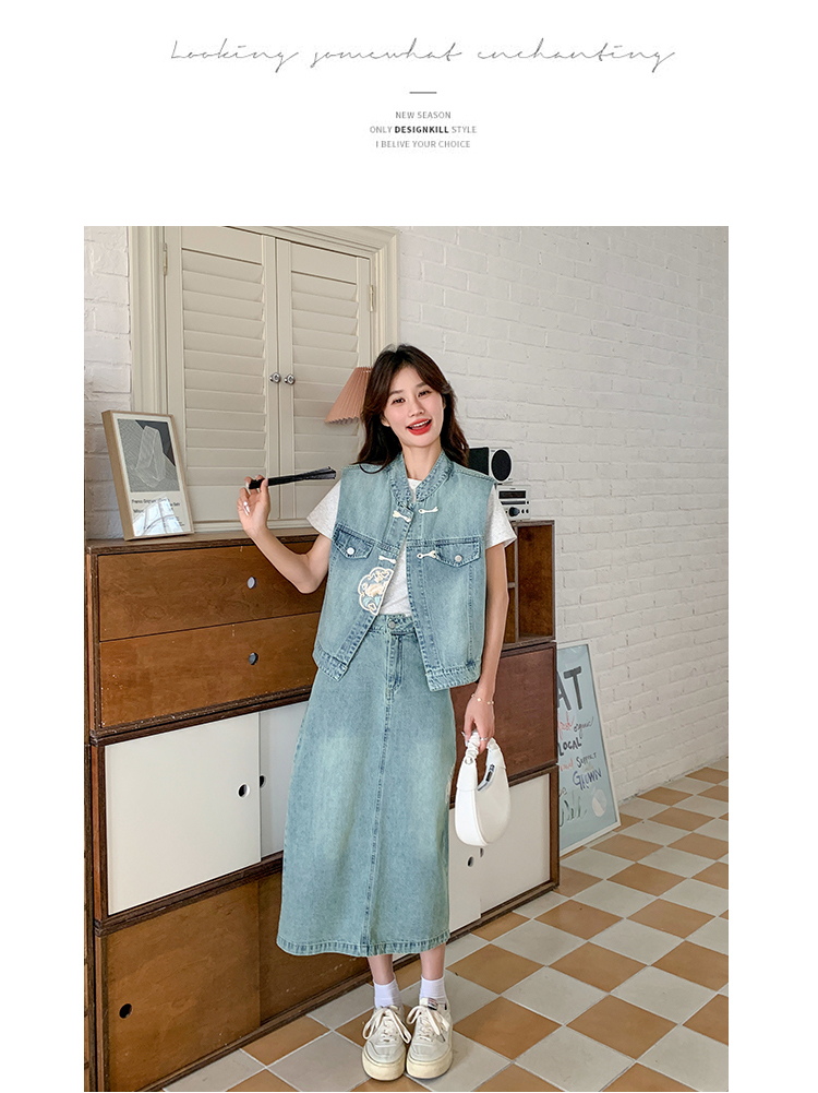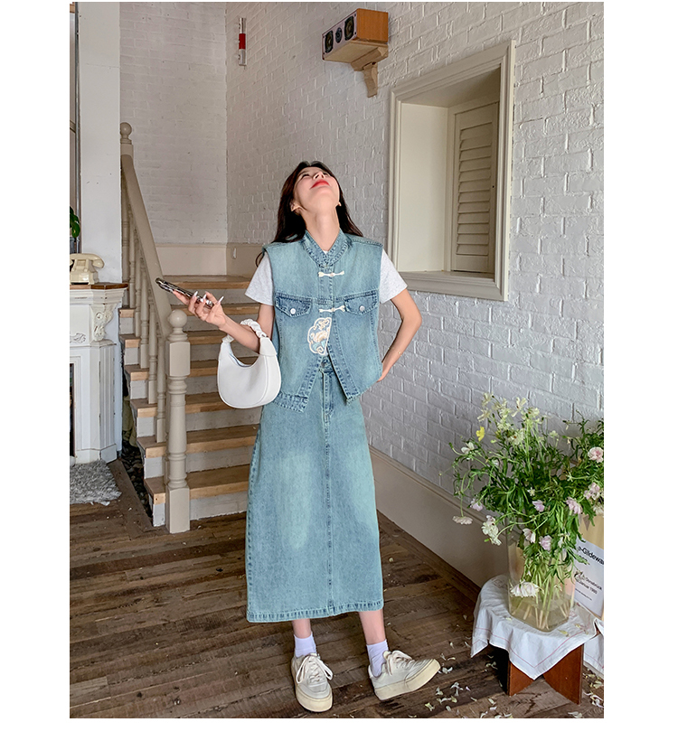 獨家訂製│韓系甜姐兒重工盤扣刺繡背心+A字裙兩件式套裝組(05H6242)