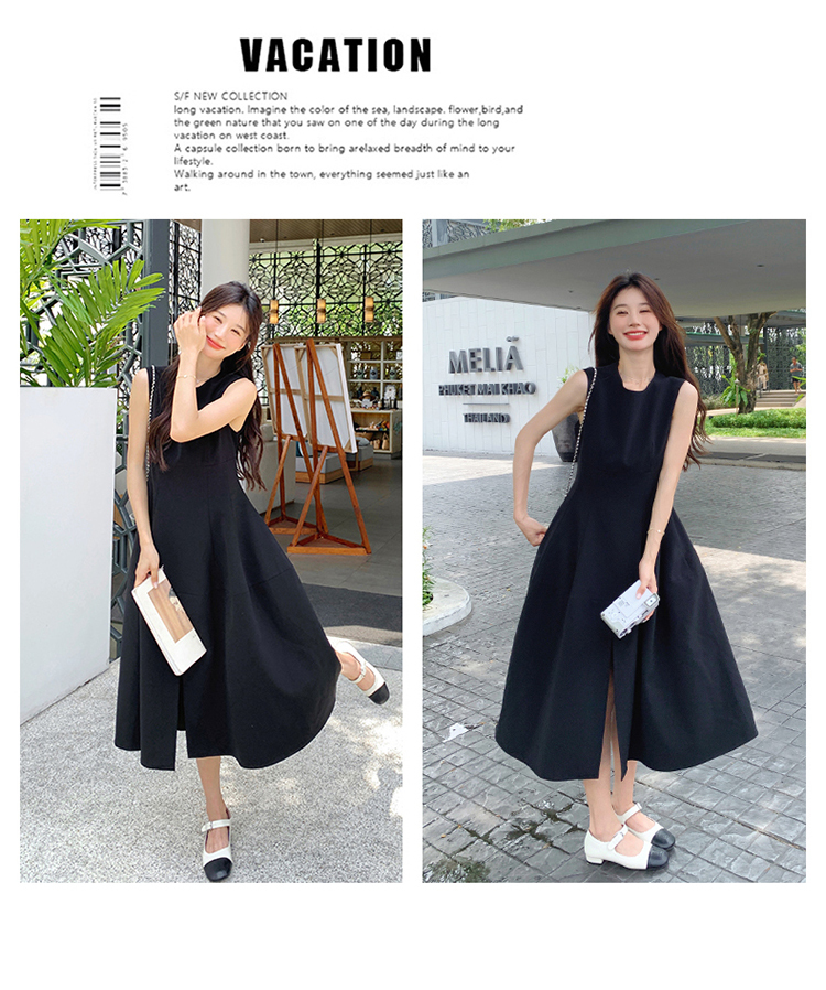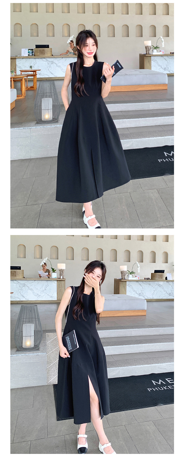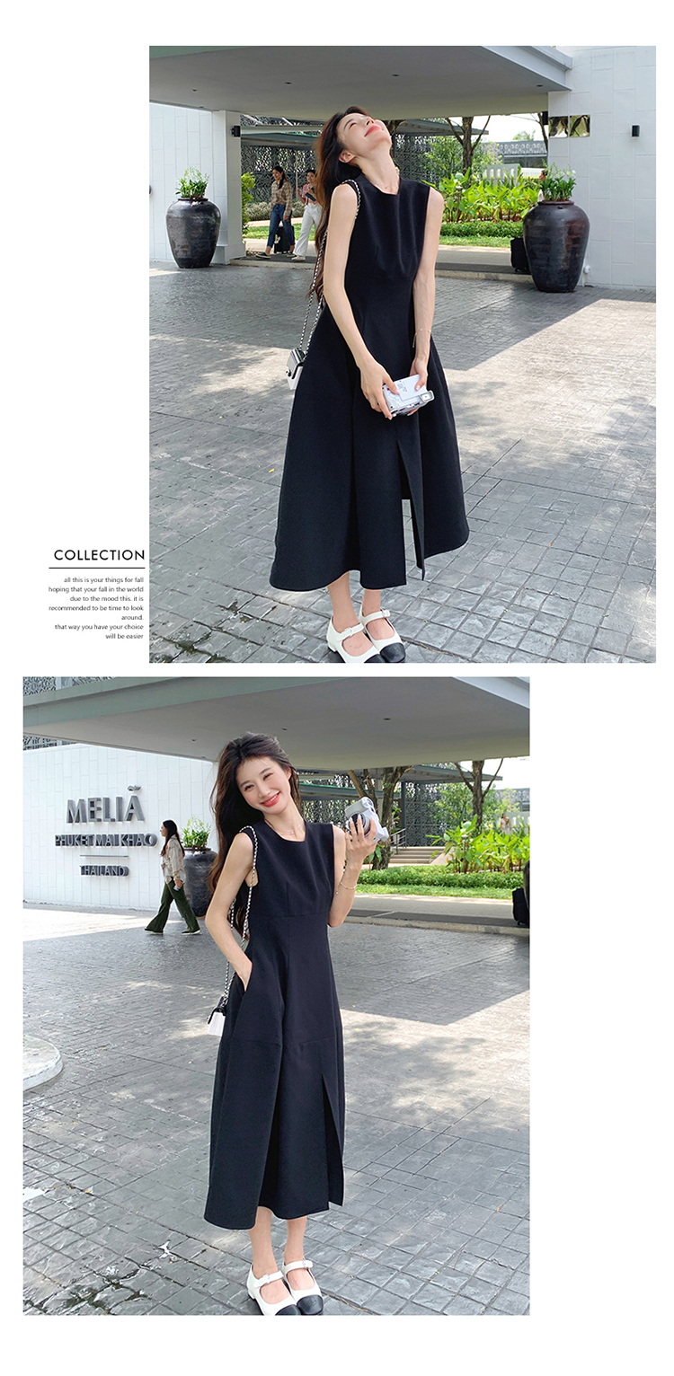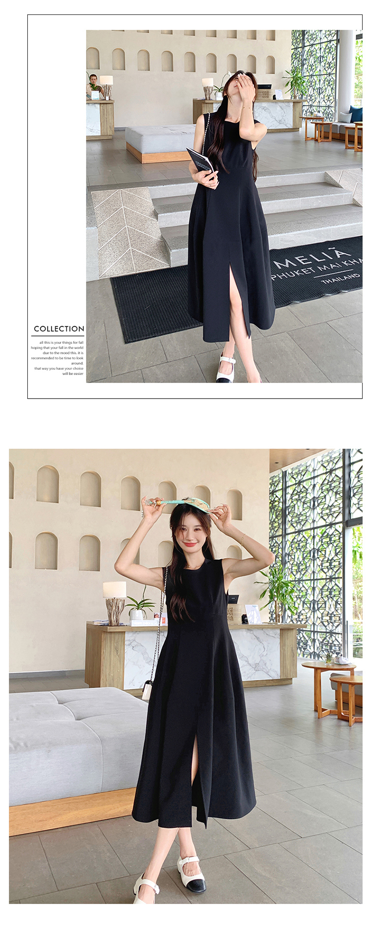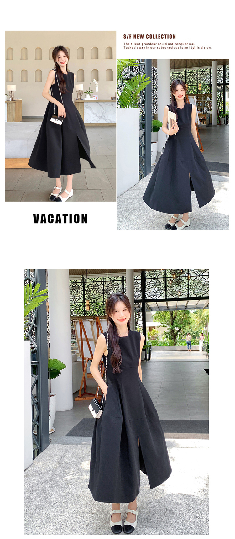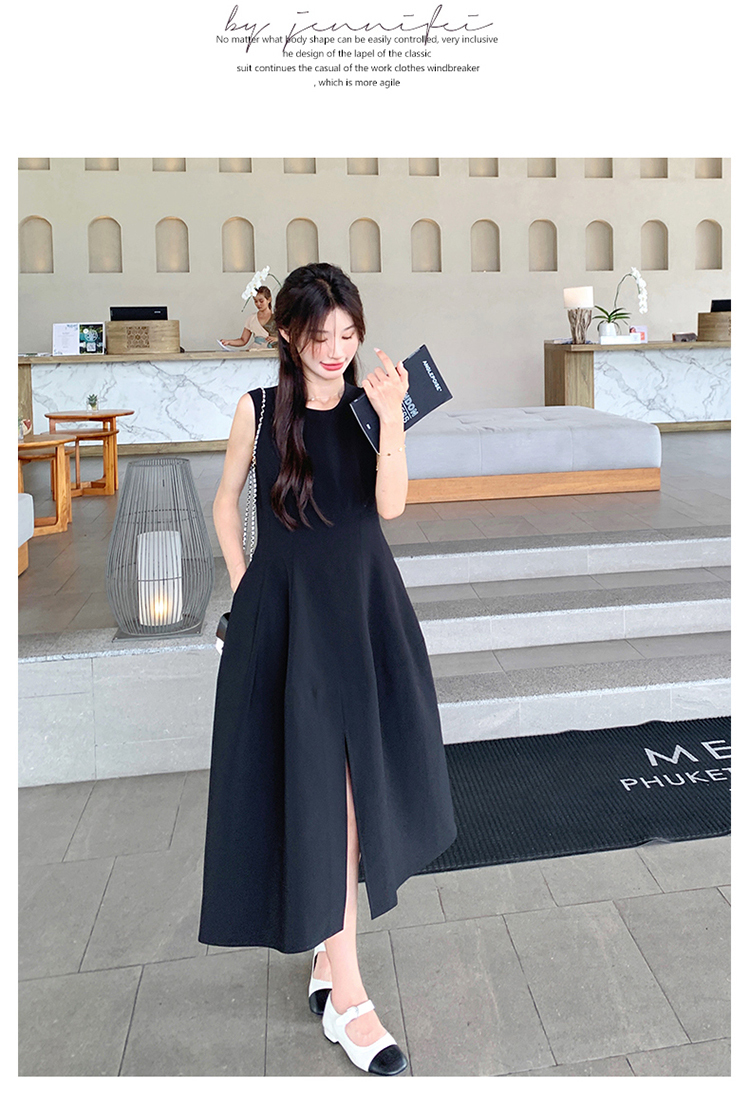 獨家訂製│韓系氣質感收腰開叉裙擺連衣裙(05H6252)