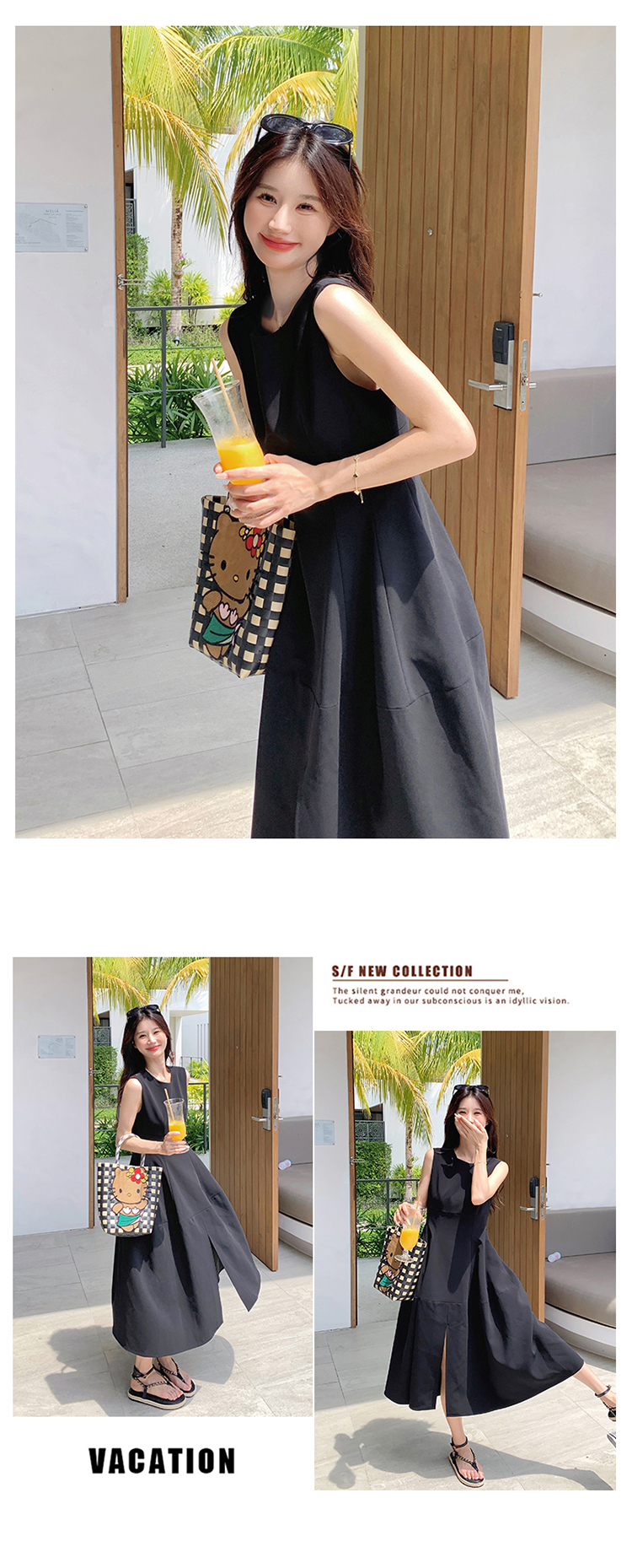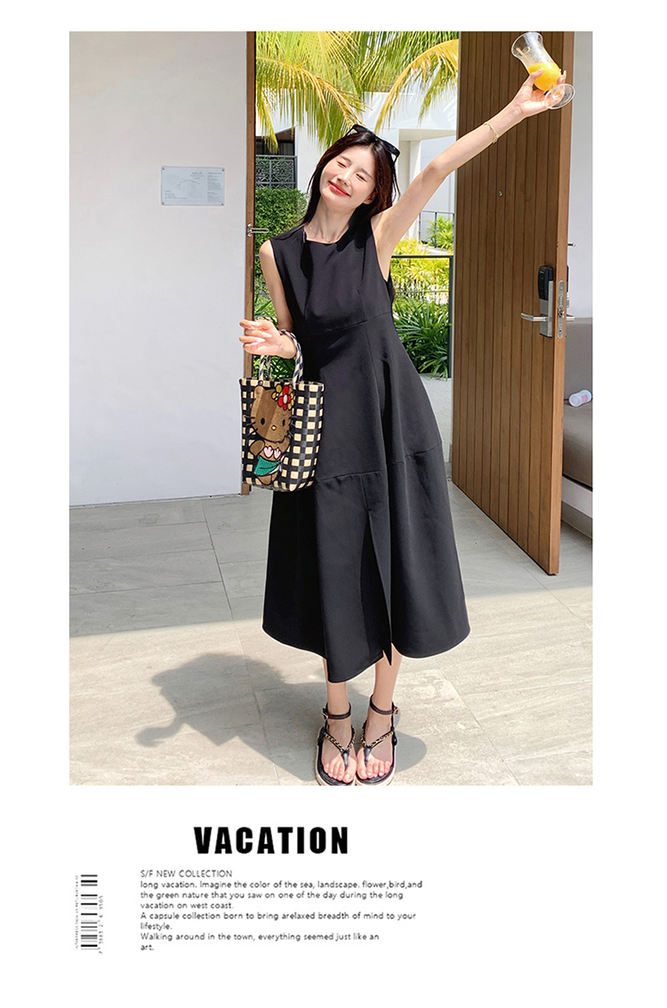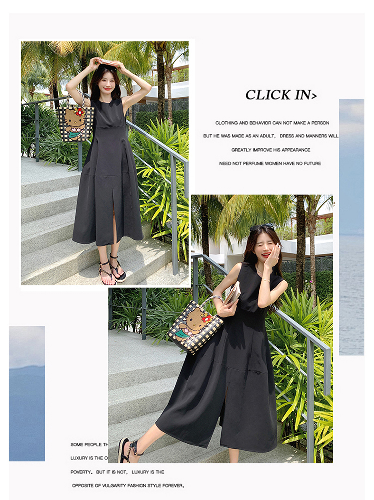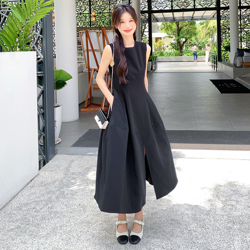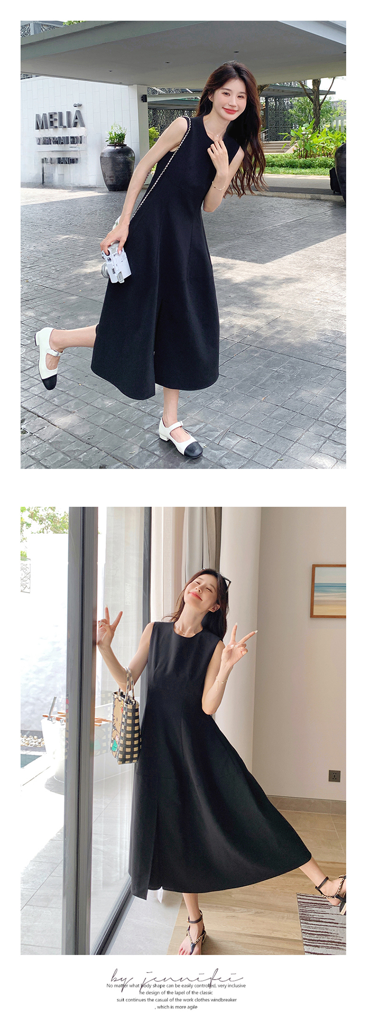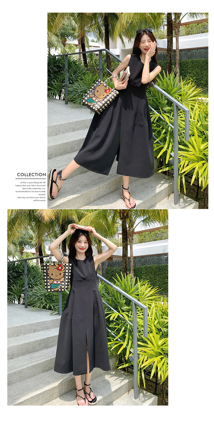 獨家訂製│韓系氣質感收腰開叉裙擺連衣裙(05H6252)