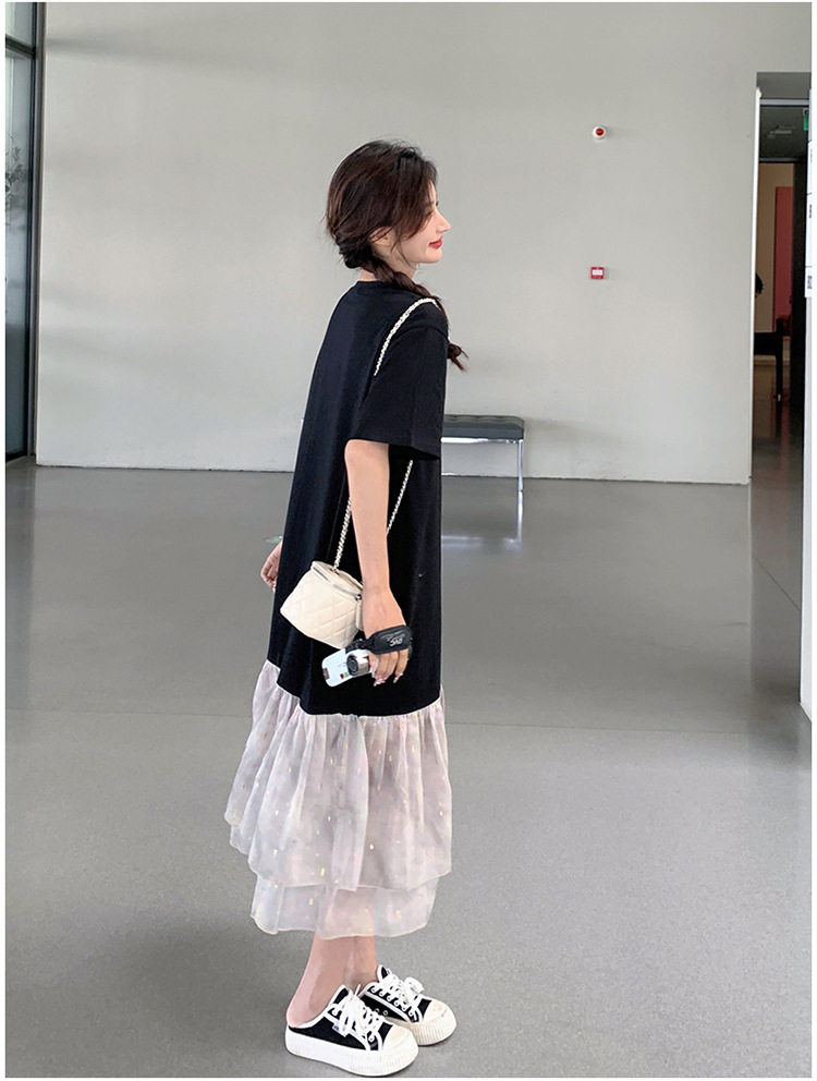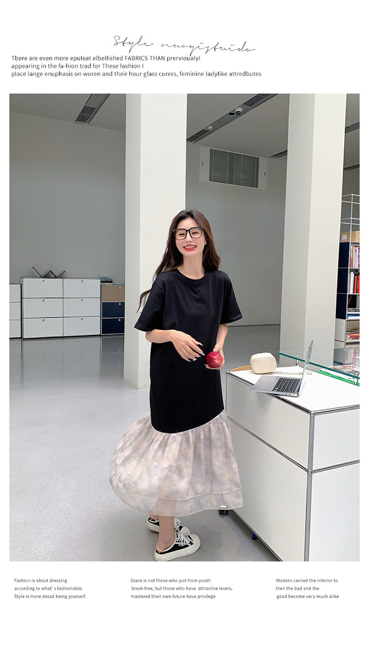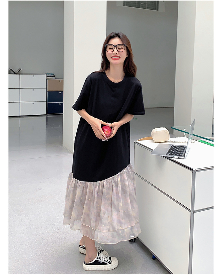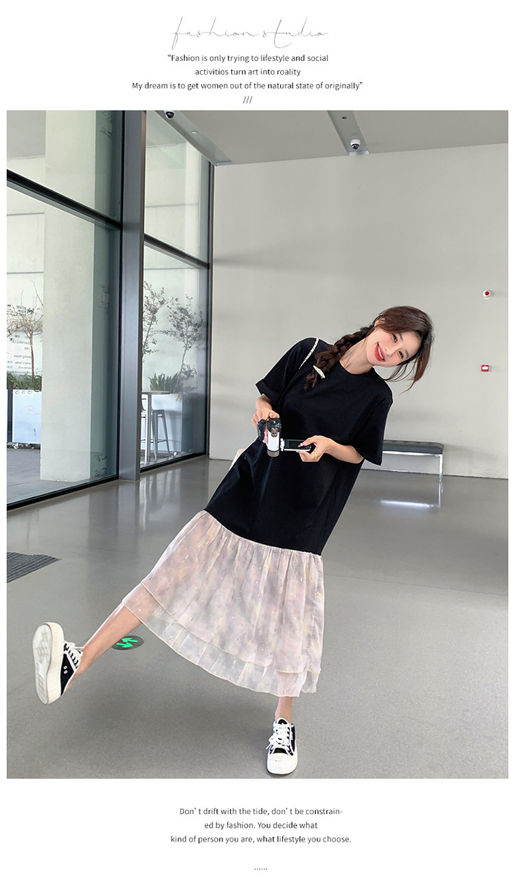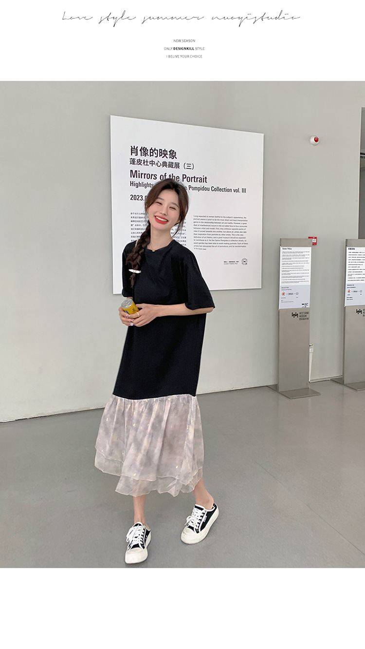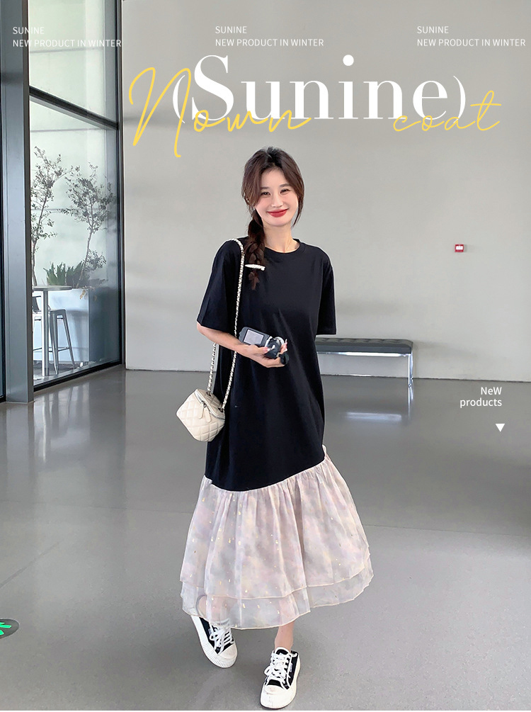 獨家訂製│韓系氣質感雙層網紗裙襬拼接連衣裙(05H6319)