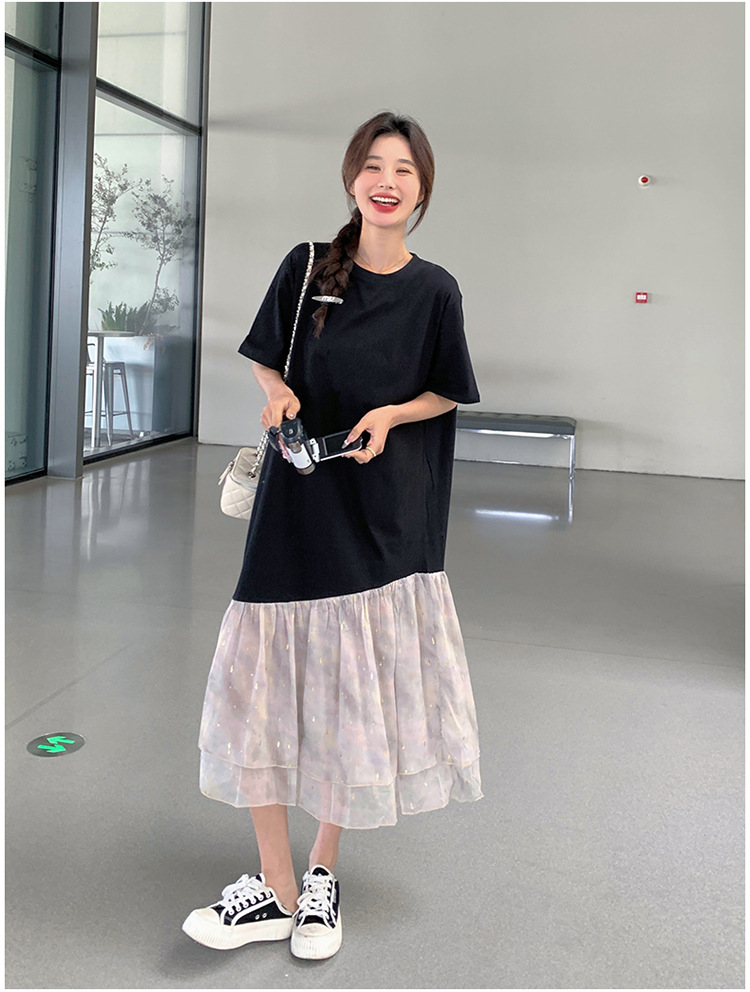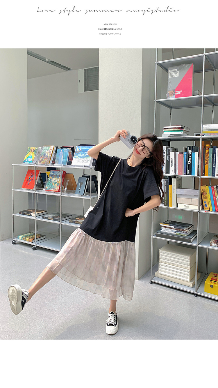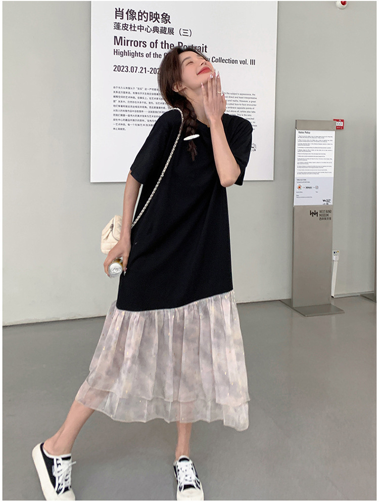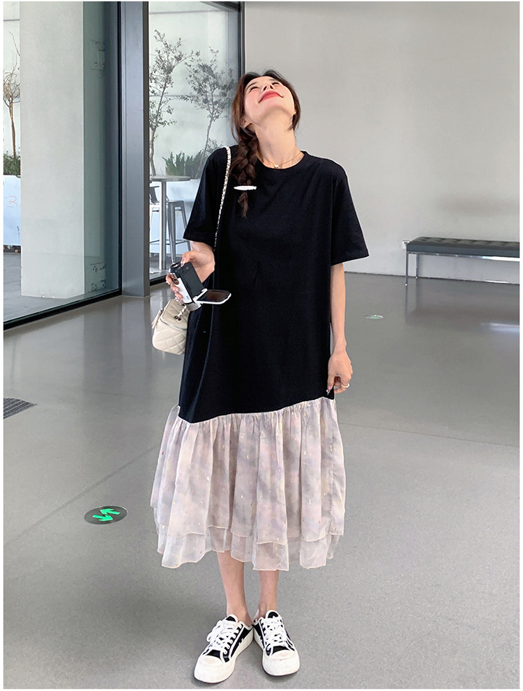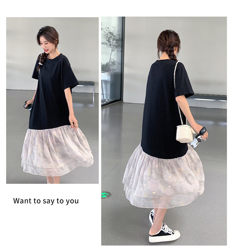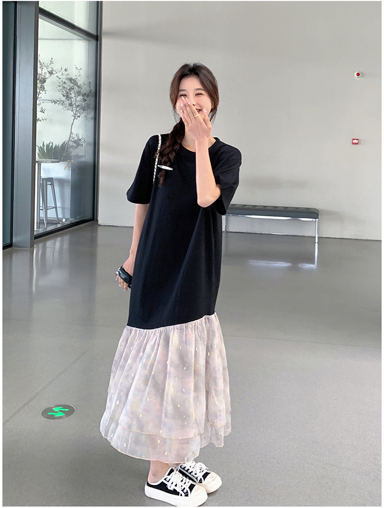 獨家訂製│韓系氣質感雙層網紗裙襬拼接連衣裙(05H6319)