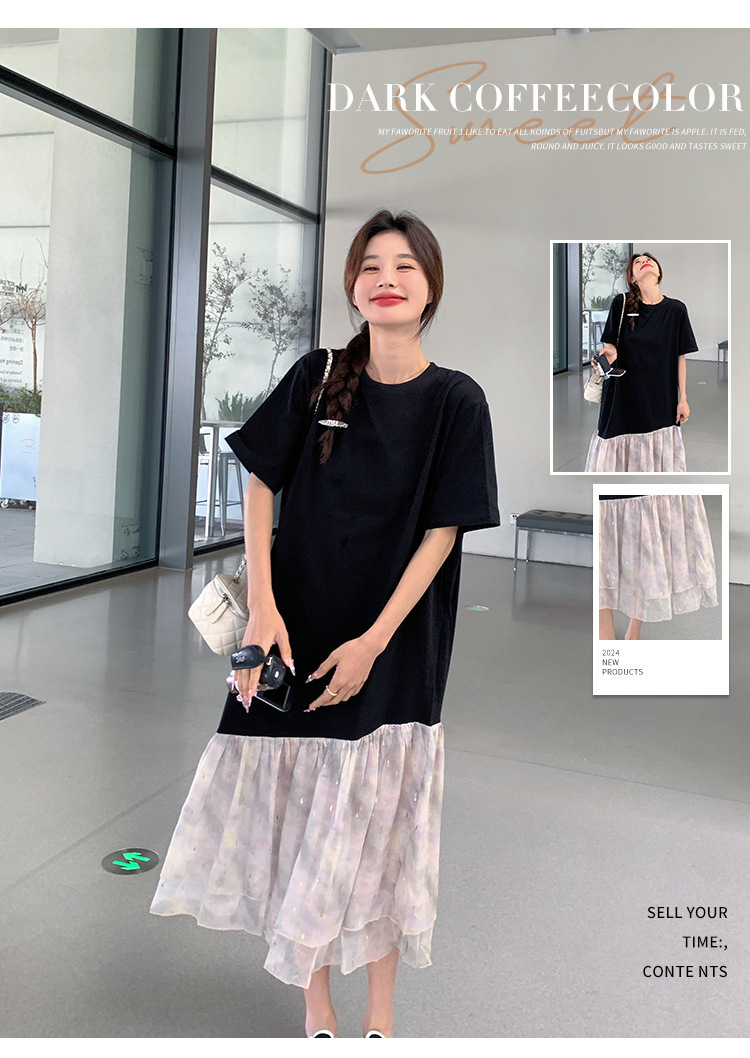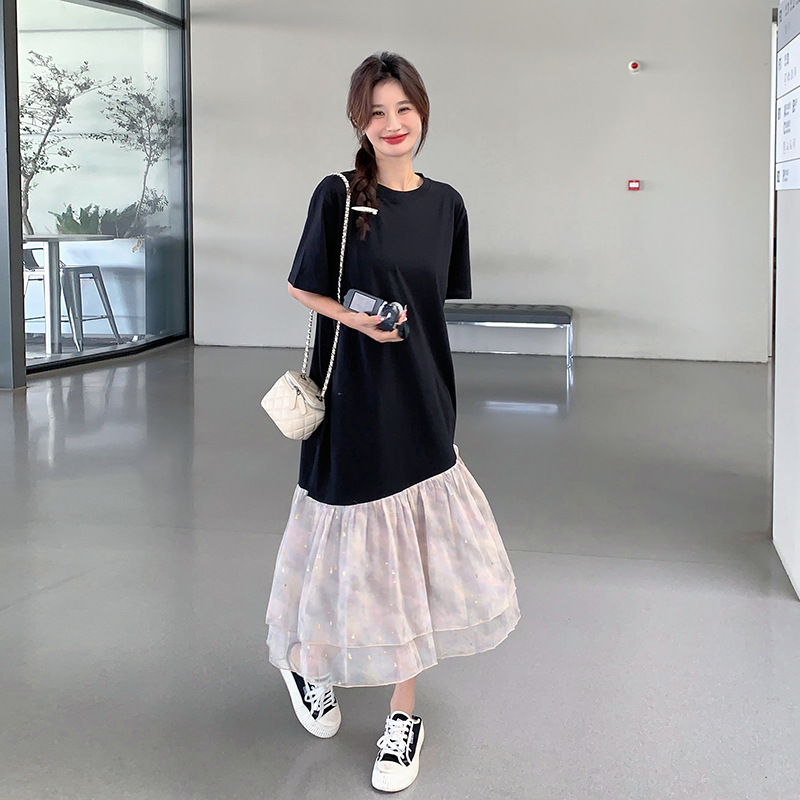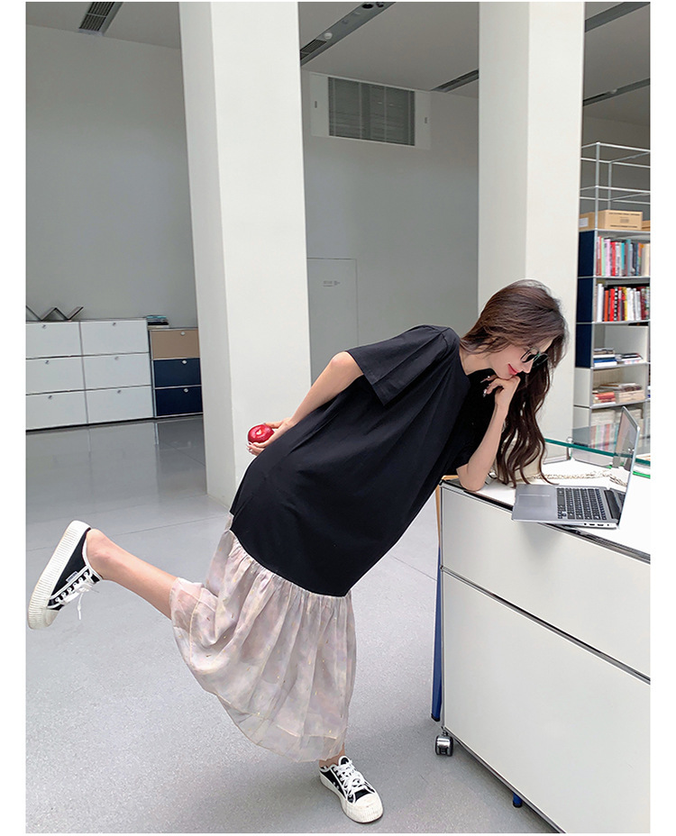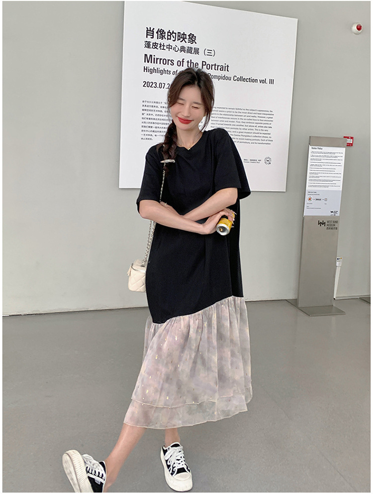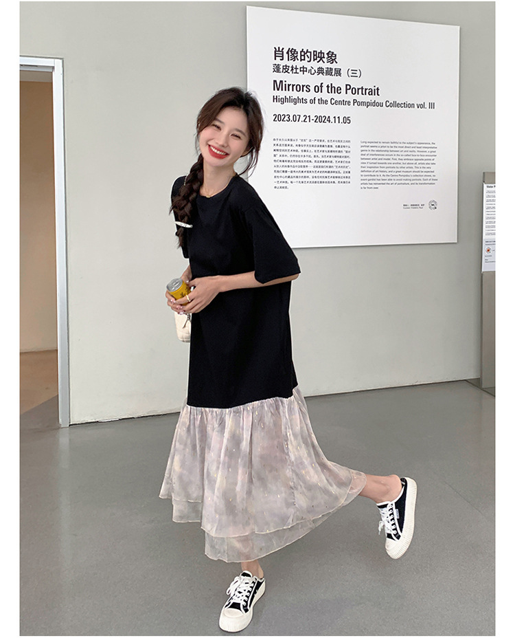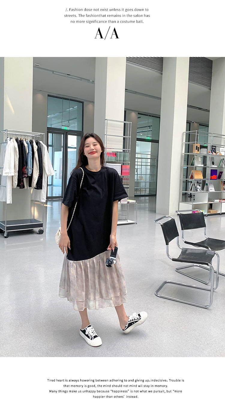 獨家訂製│韓系氣質感雙層網紗裙襬拼接連衣裙(05H6319)