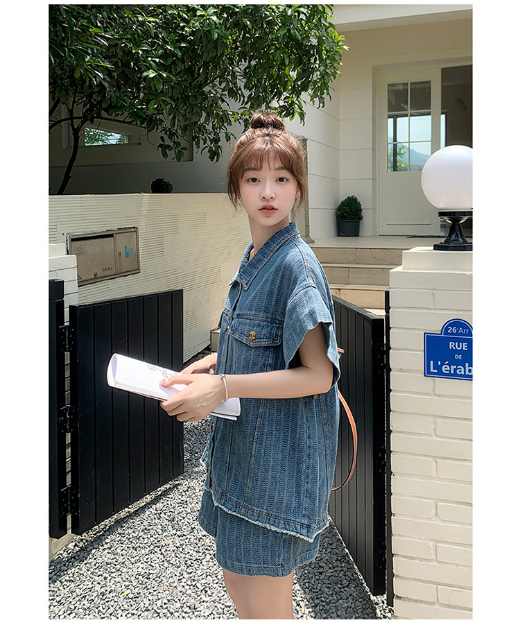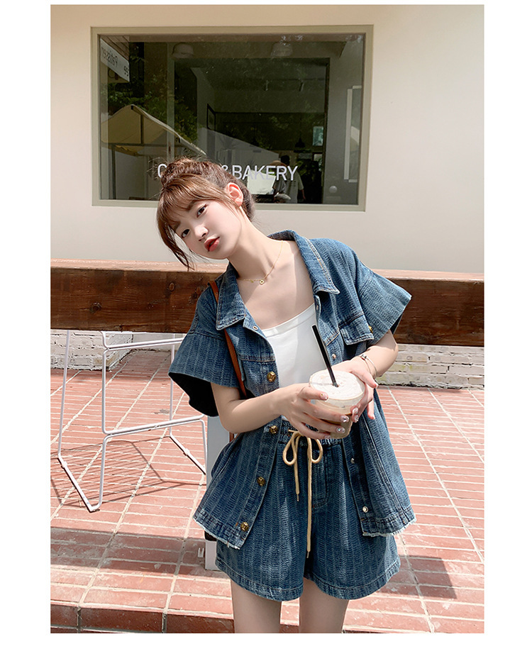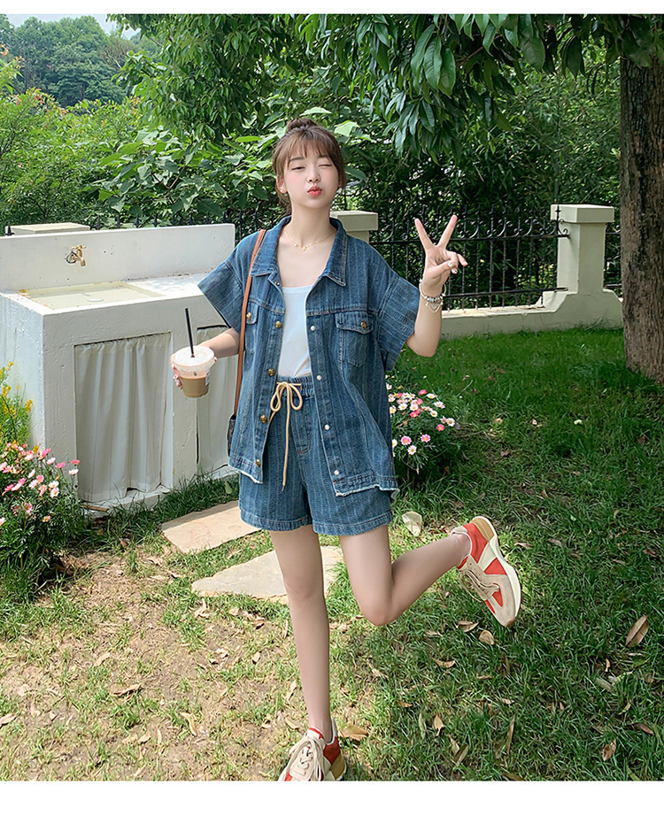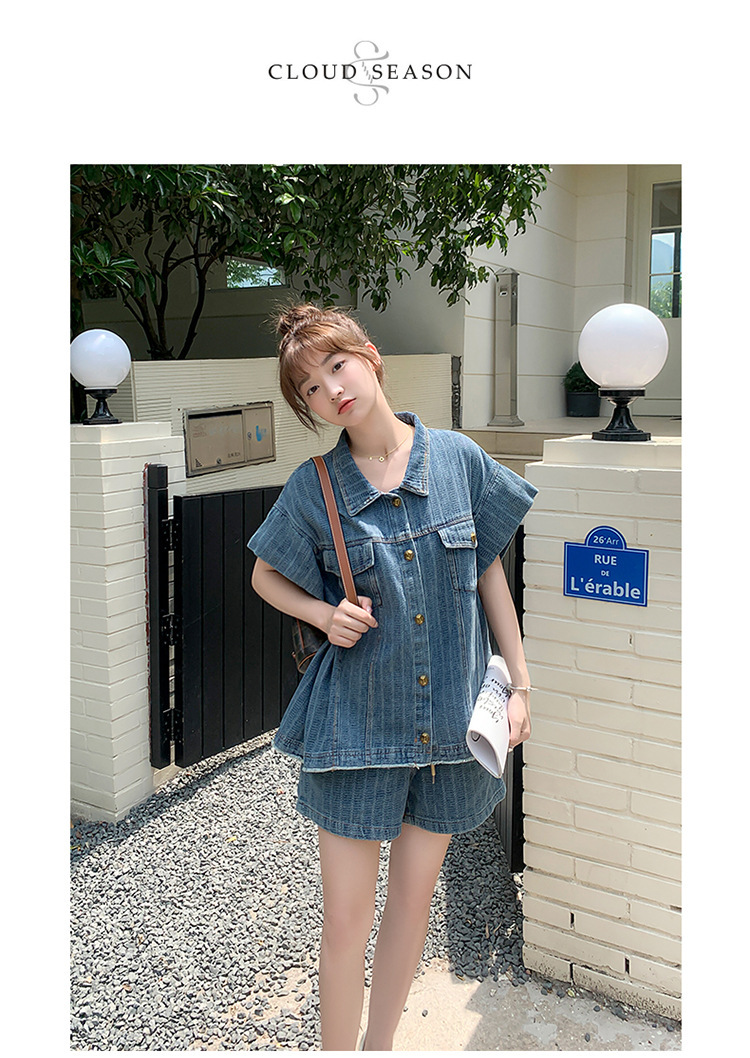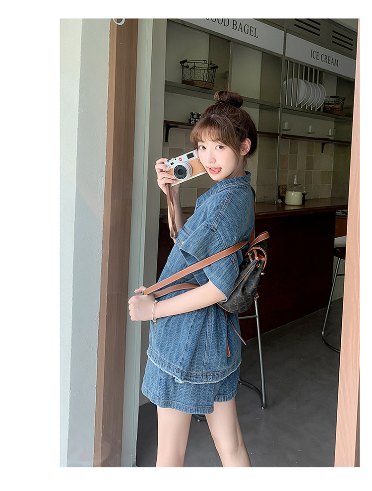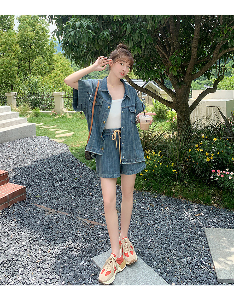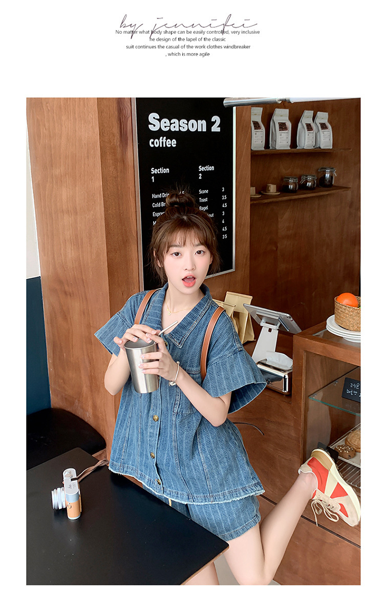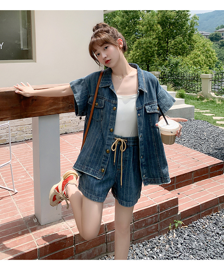 獨家訂製│韓系復古仿舊牛仔襯衫+短褲兩件式套裝組(05H6329)