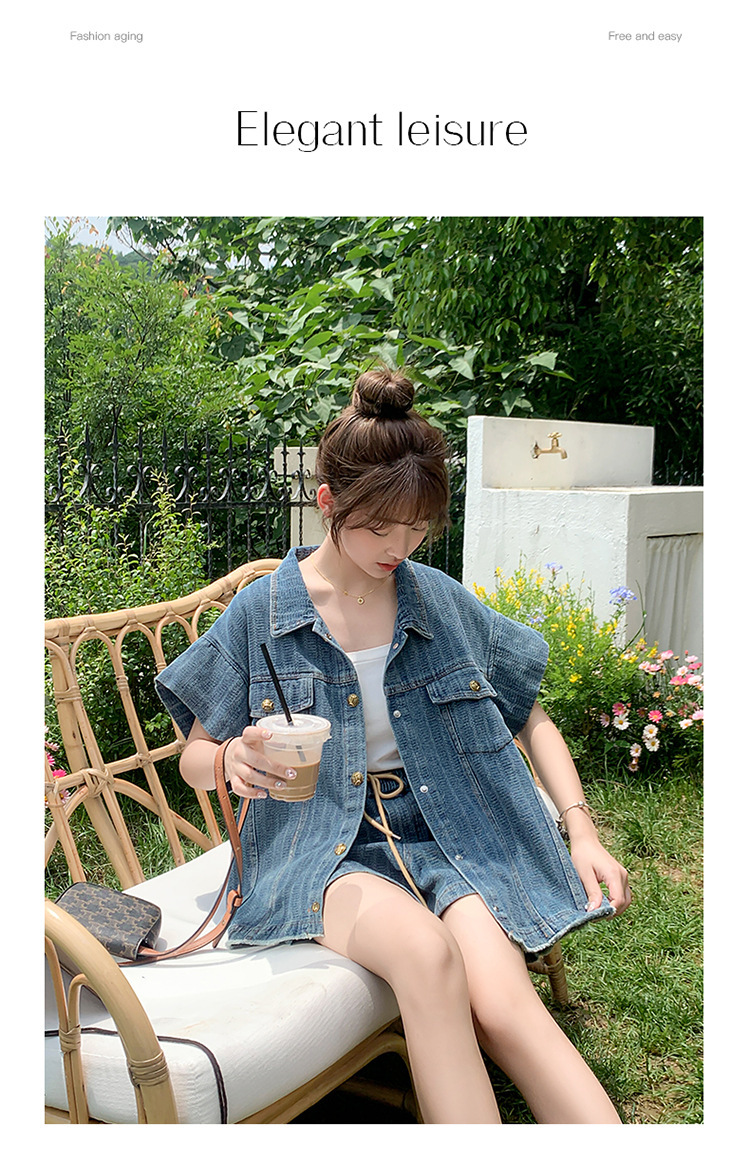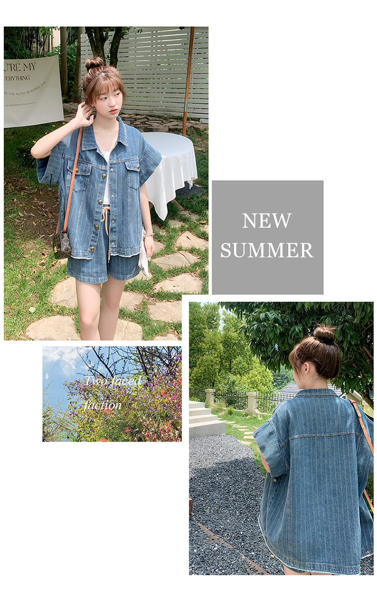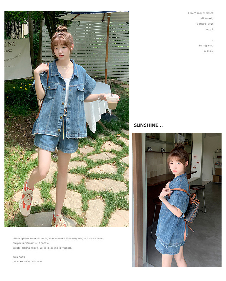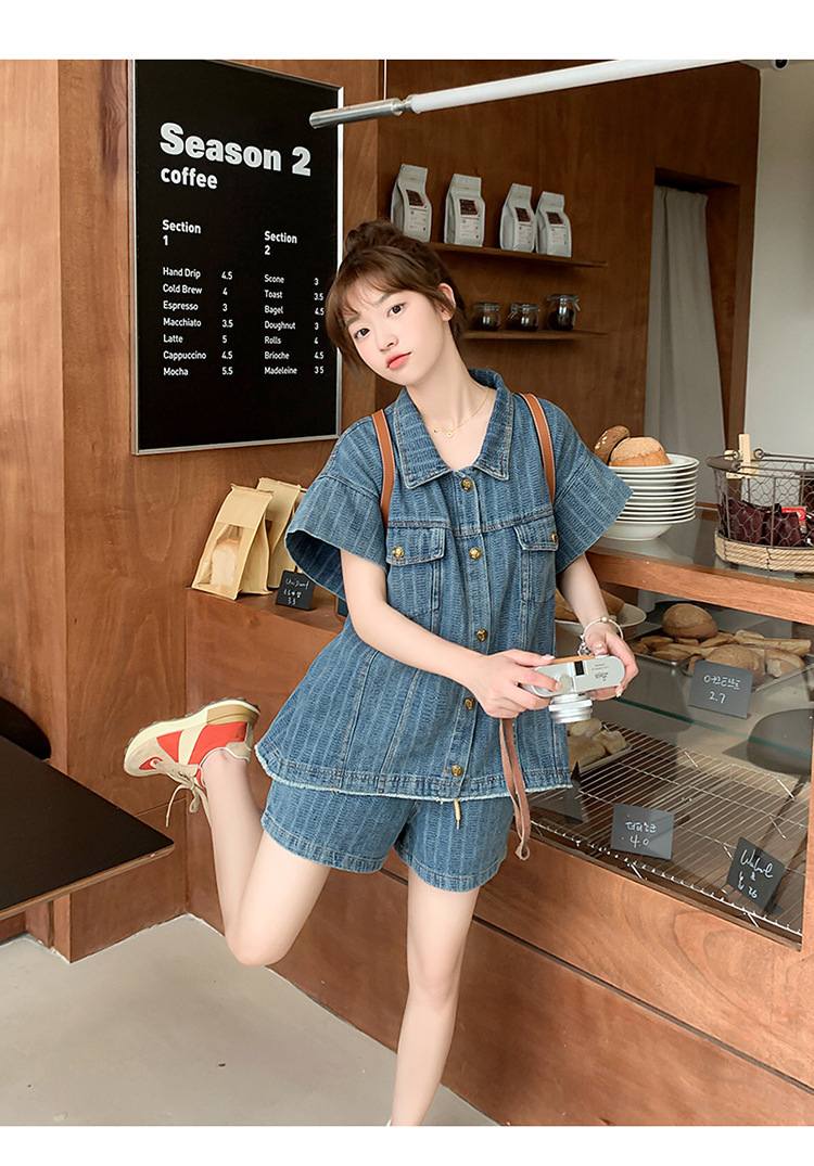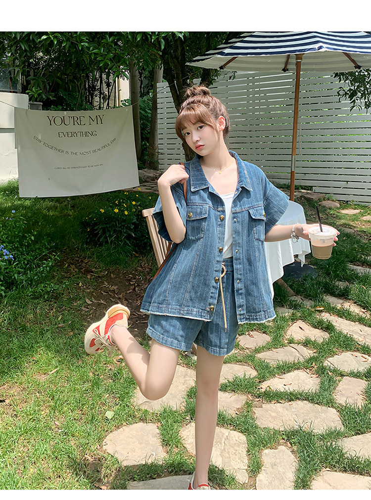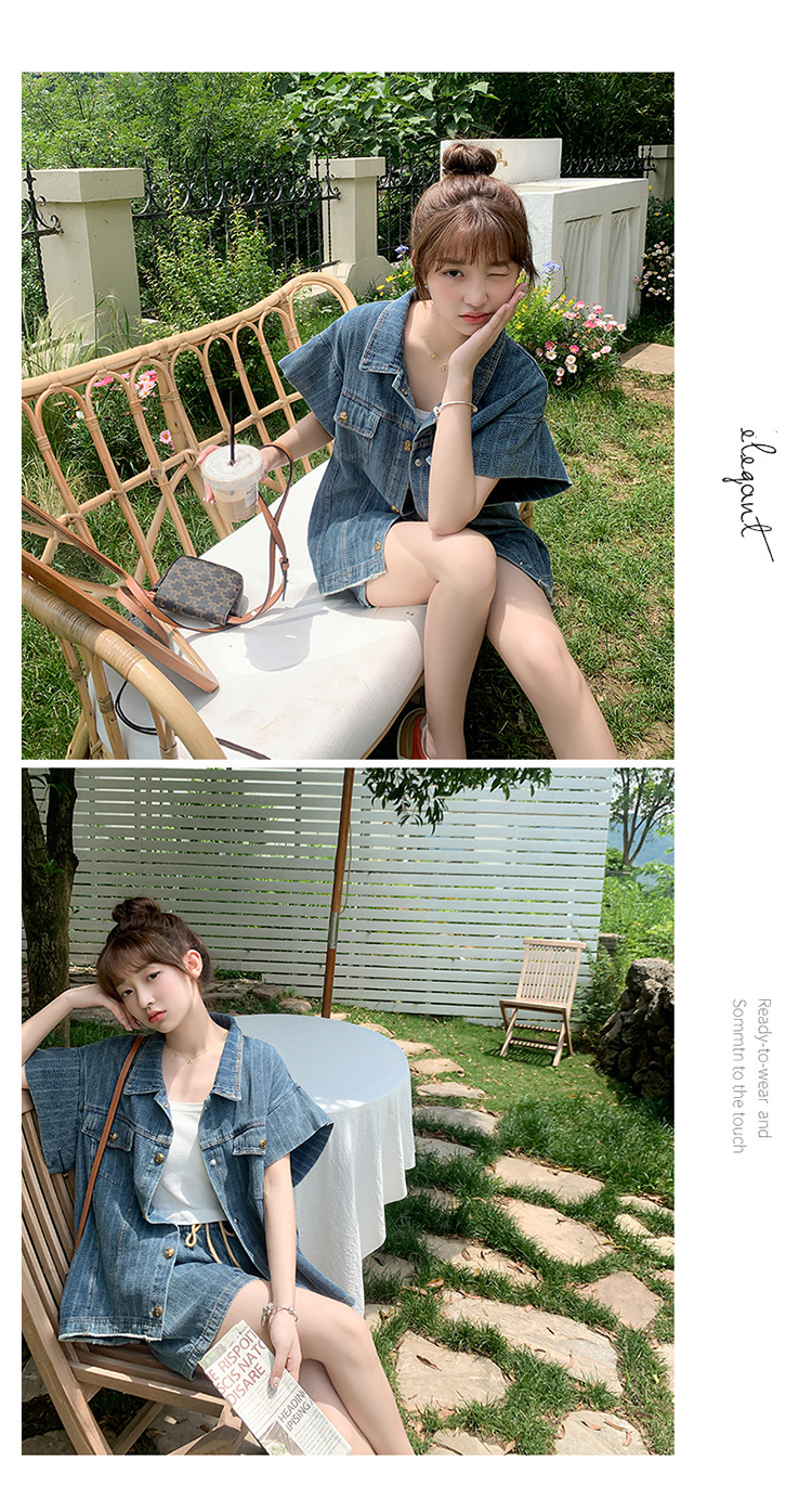 獨家訂製│韓系復古仿舊牛仔襯衫+短褲兩件式套裝組(05H6329)