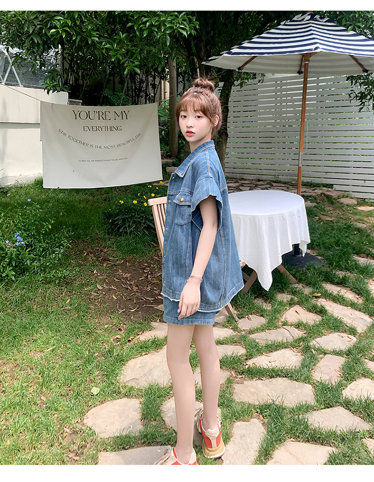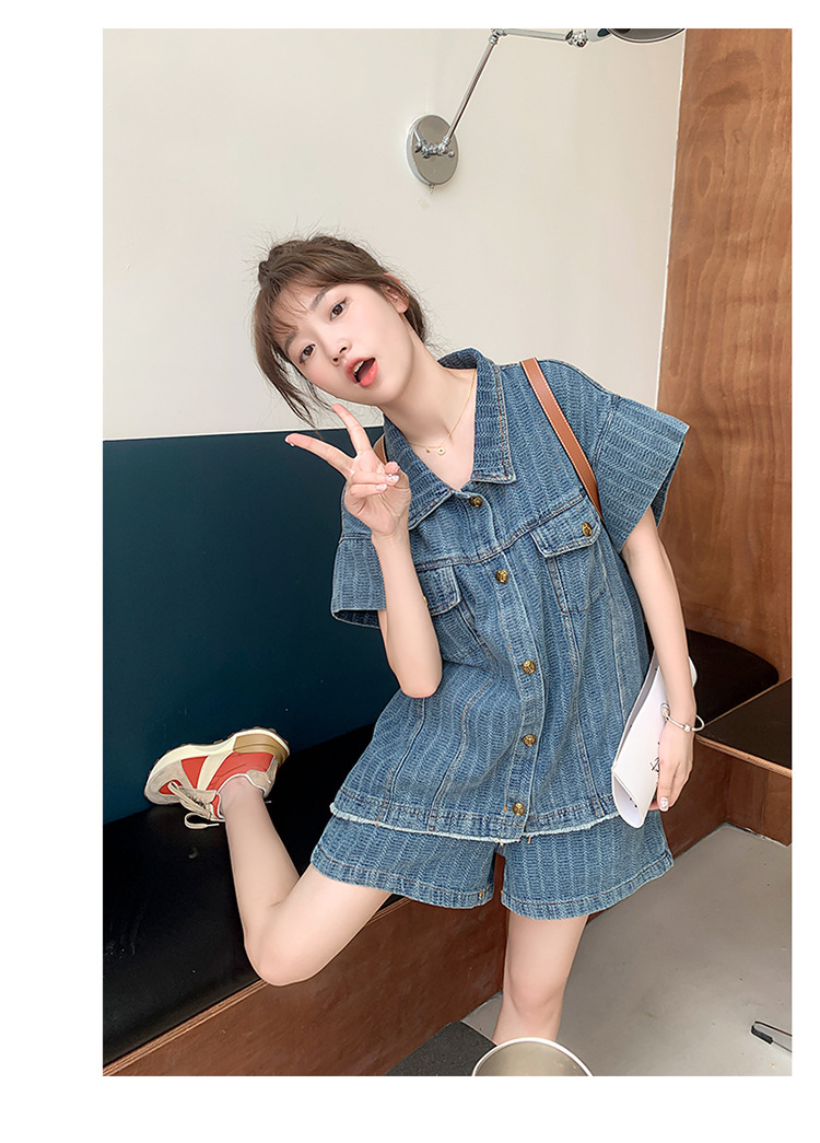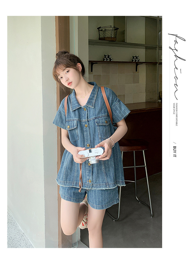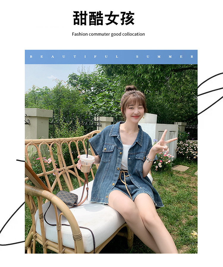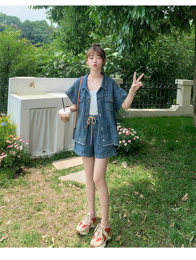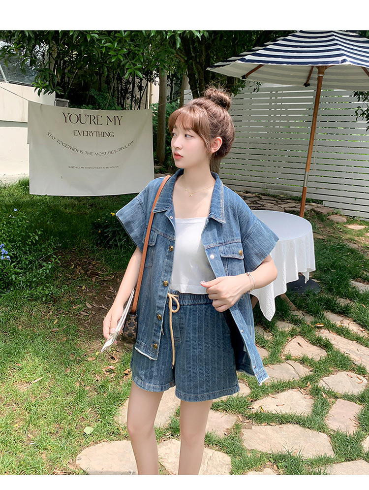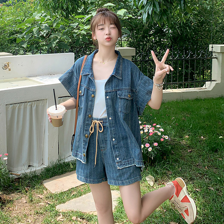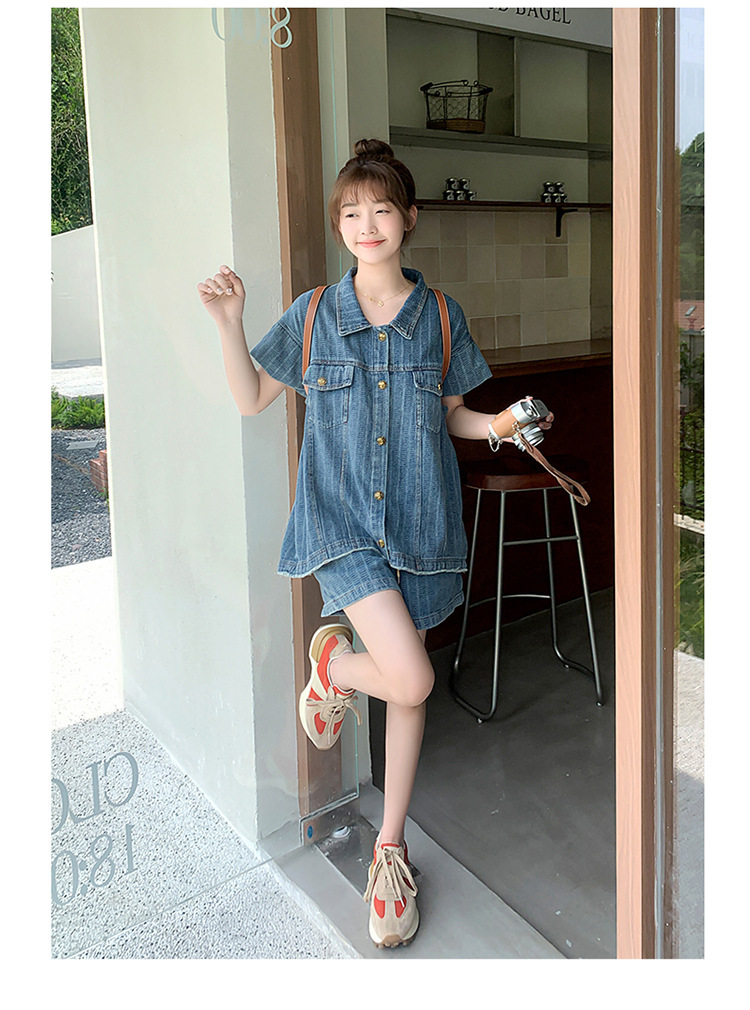 獨家訂製│韓系復古仿舊牛仔襯衫+短褲兩件式套裝組(05H6329)