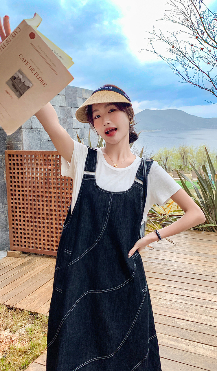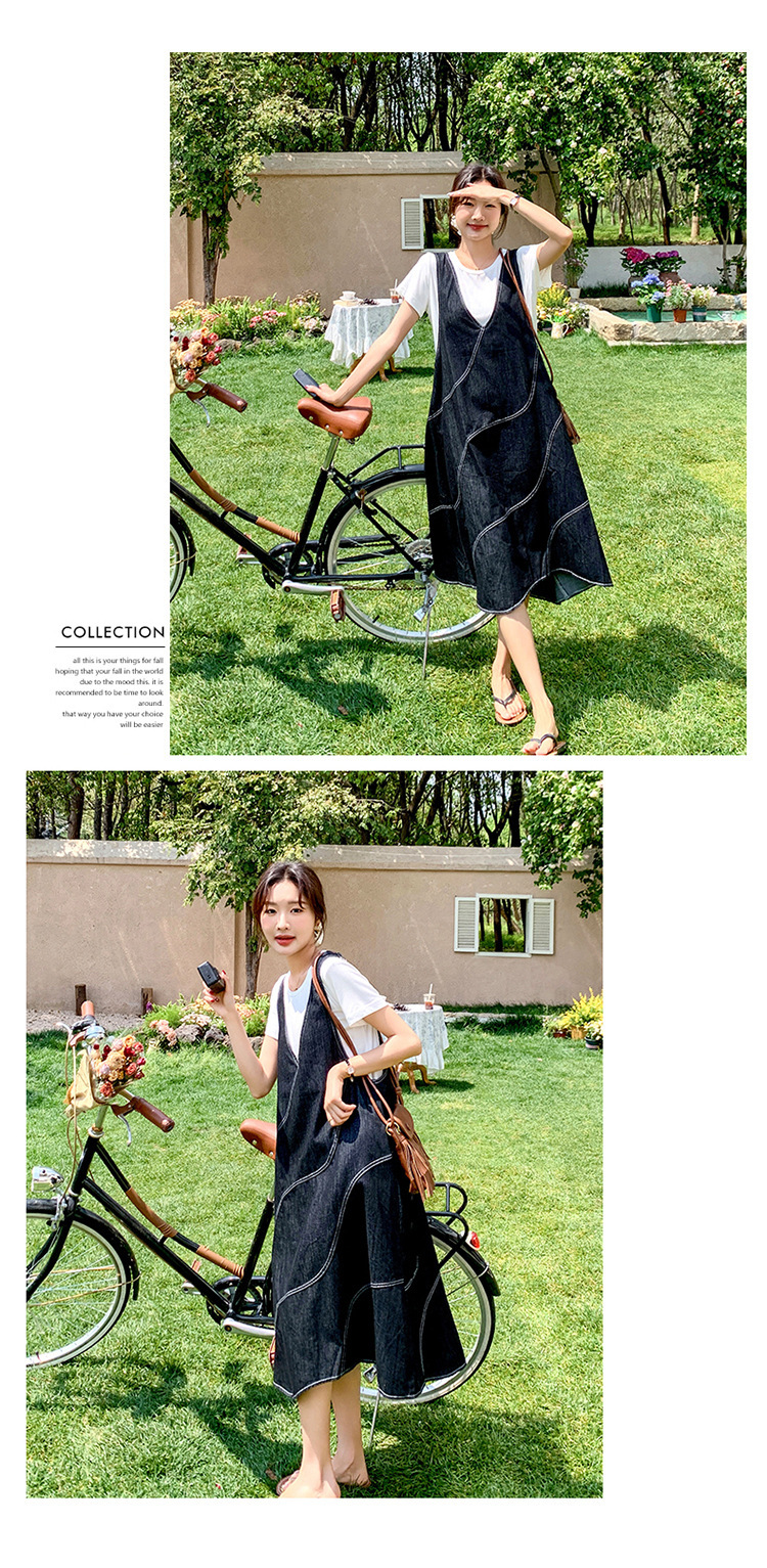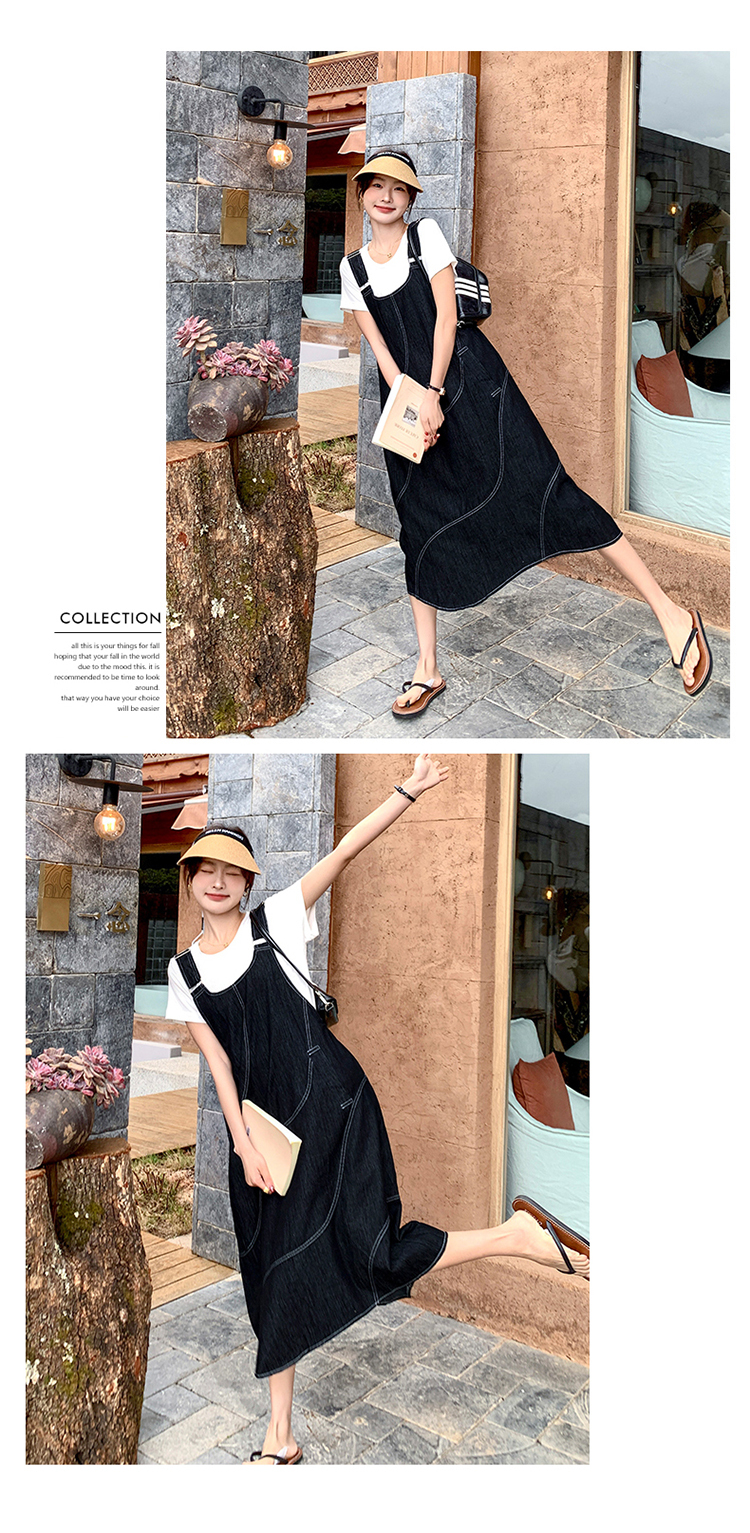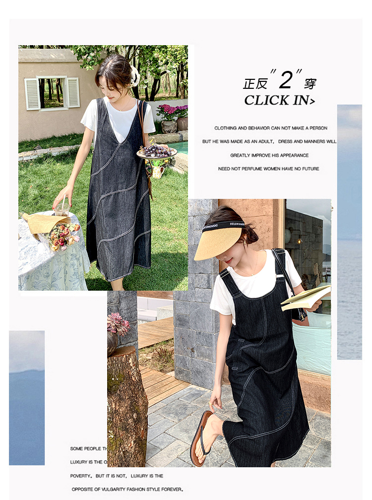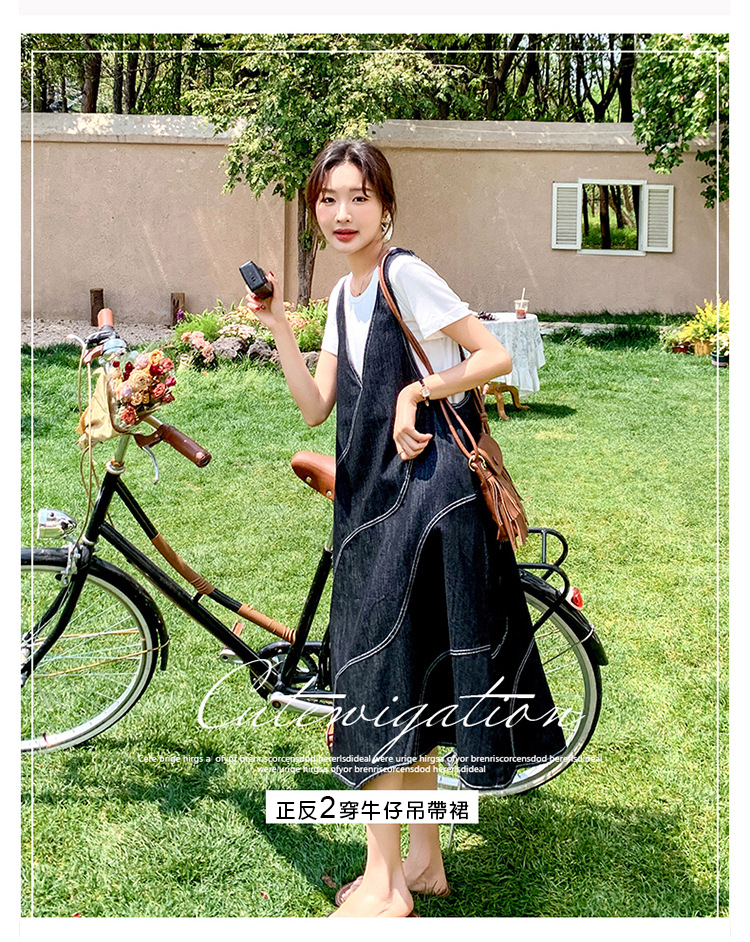 獨家訂製│韓系「正反2穿」吊帶裙+T恤兩件式套裝組(05H6338)