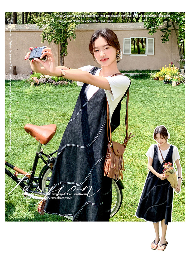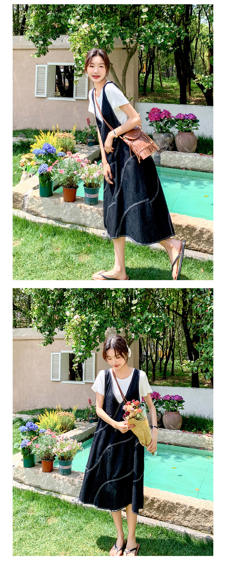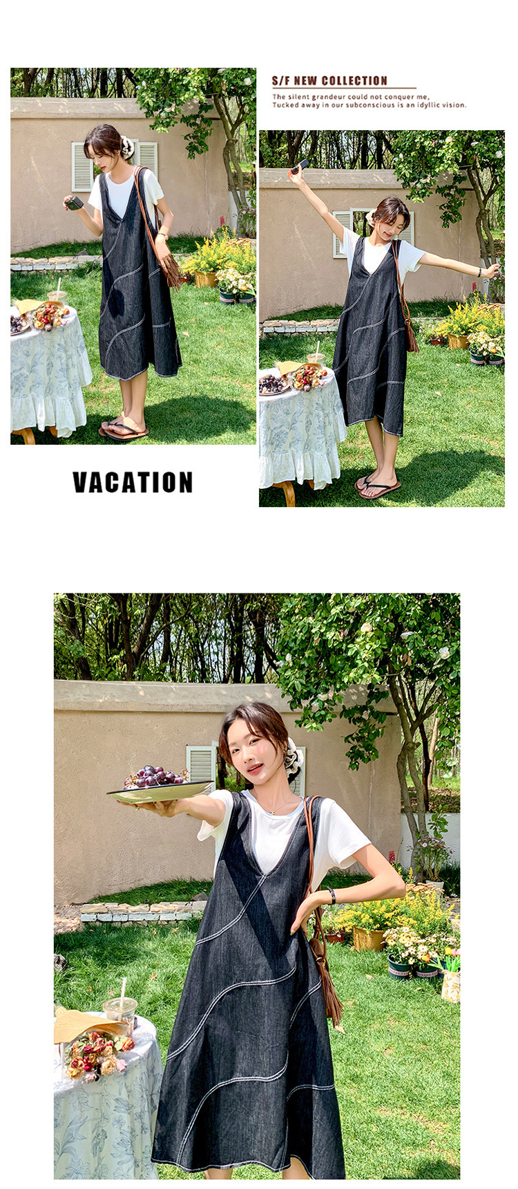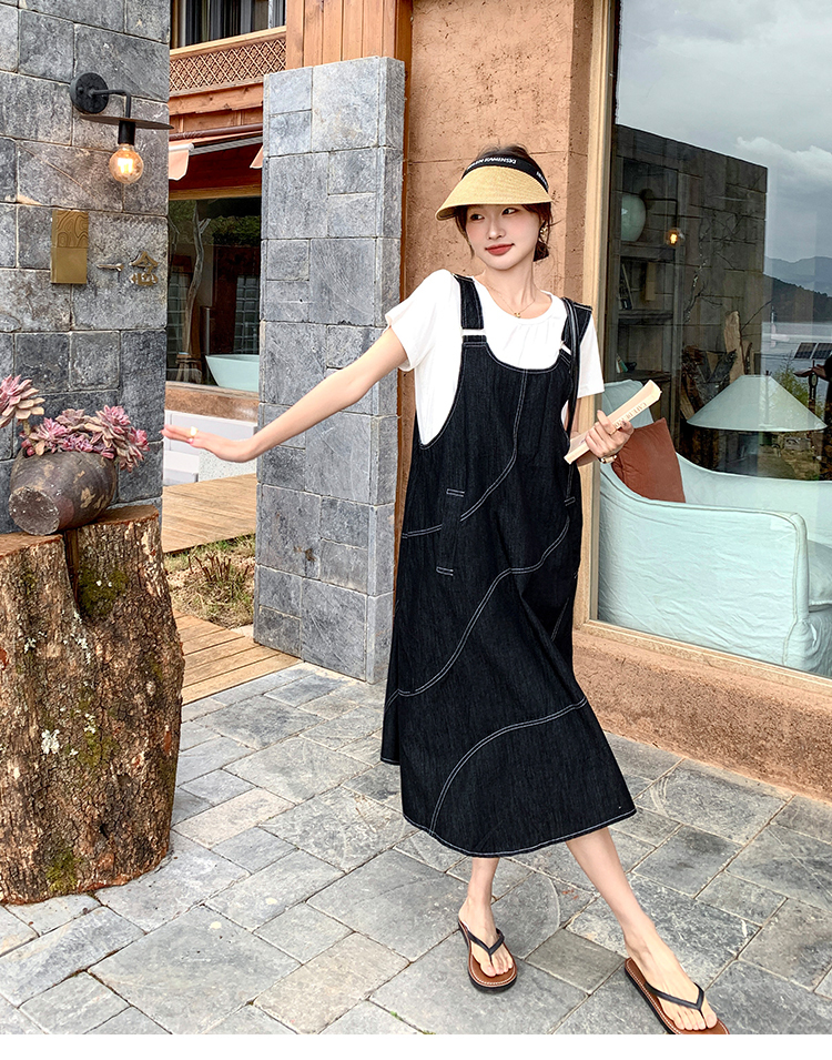 獨家訂製│韓系「正反2穿」吊帶裙+T恤兩件式套裝組(05H6338)