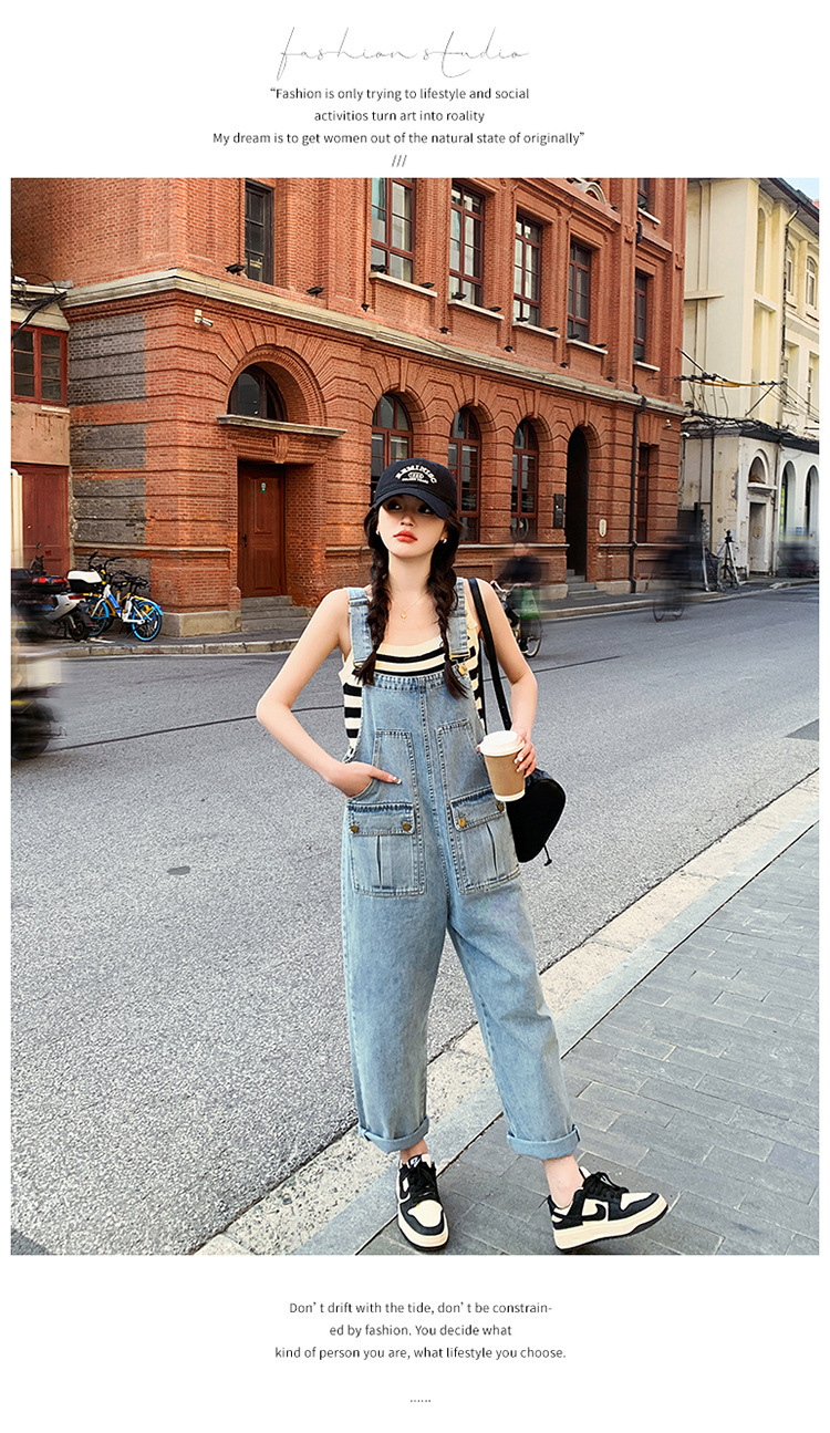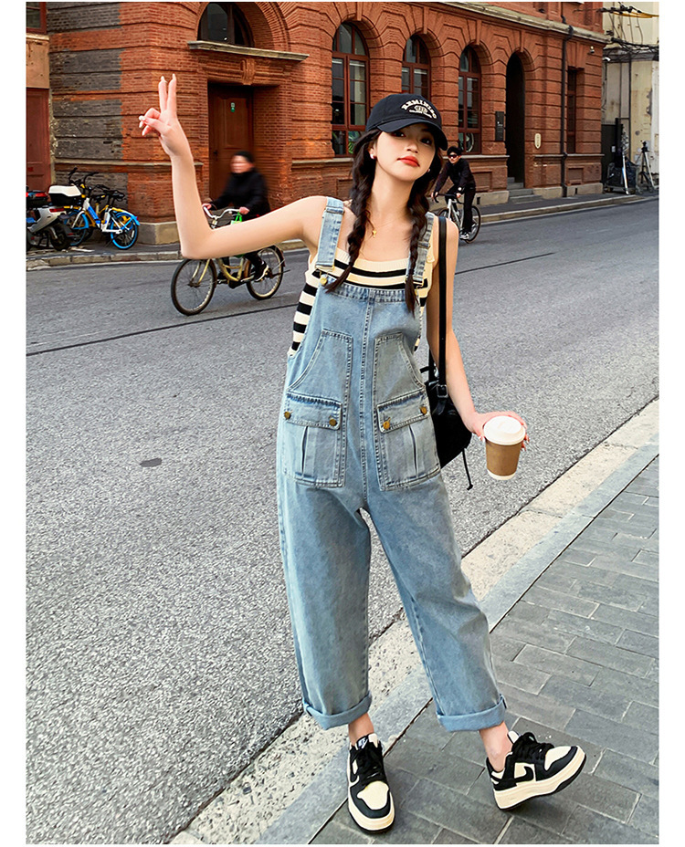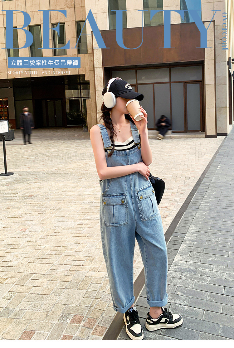 獨家訂製│韓系甜酷風立體大口袋造型吊帶褲(05H6349)