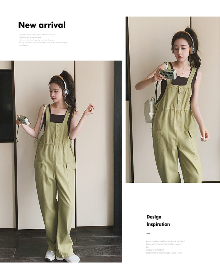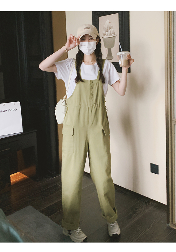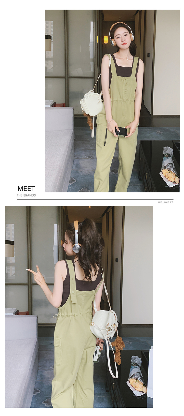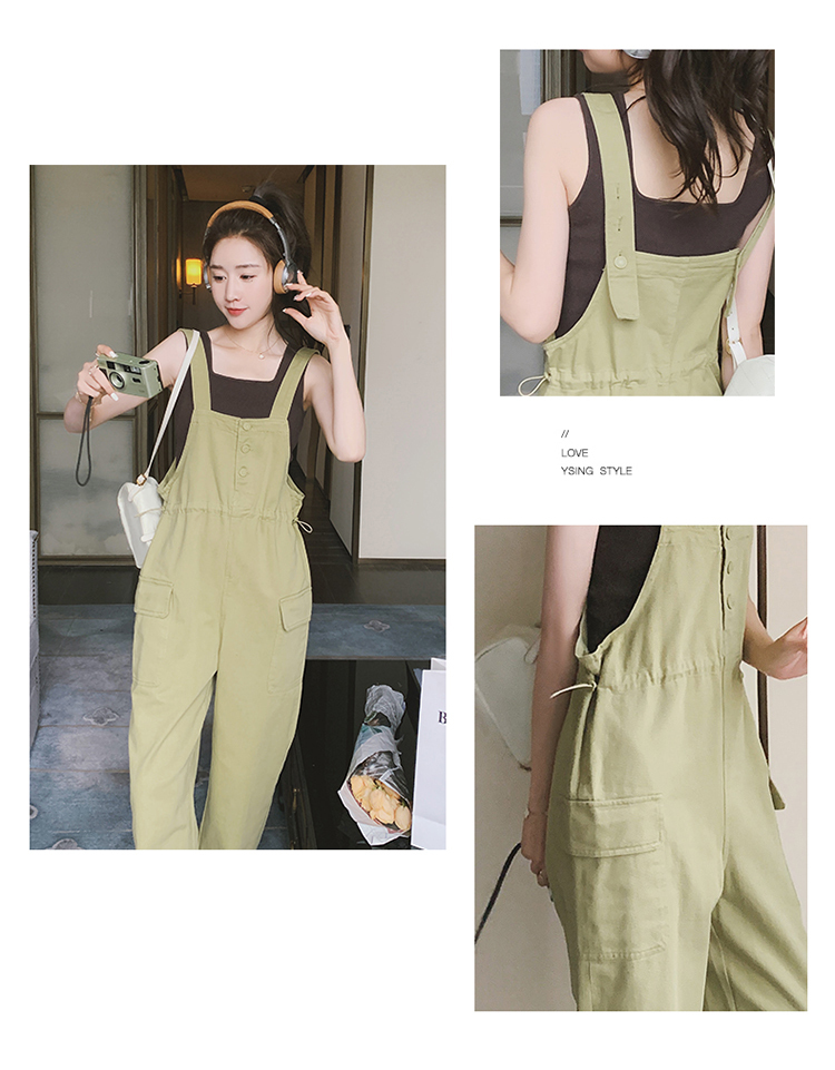 獨家訂製│韓系減齡感抽繩收腰工裝吊帶褲(05H6354)
