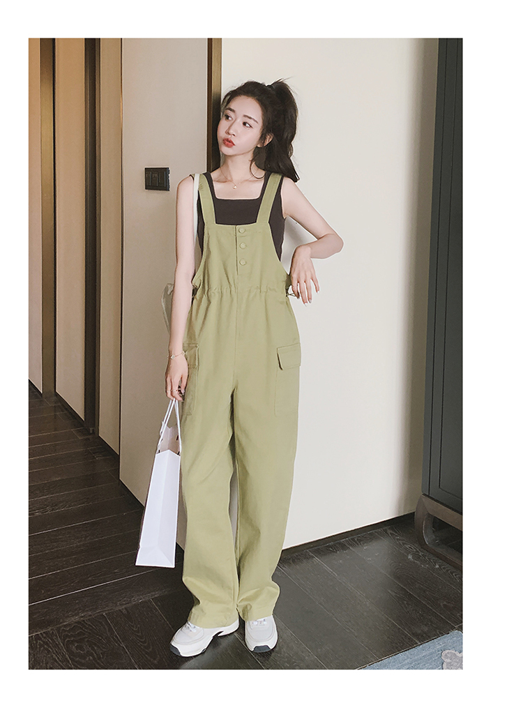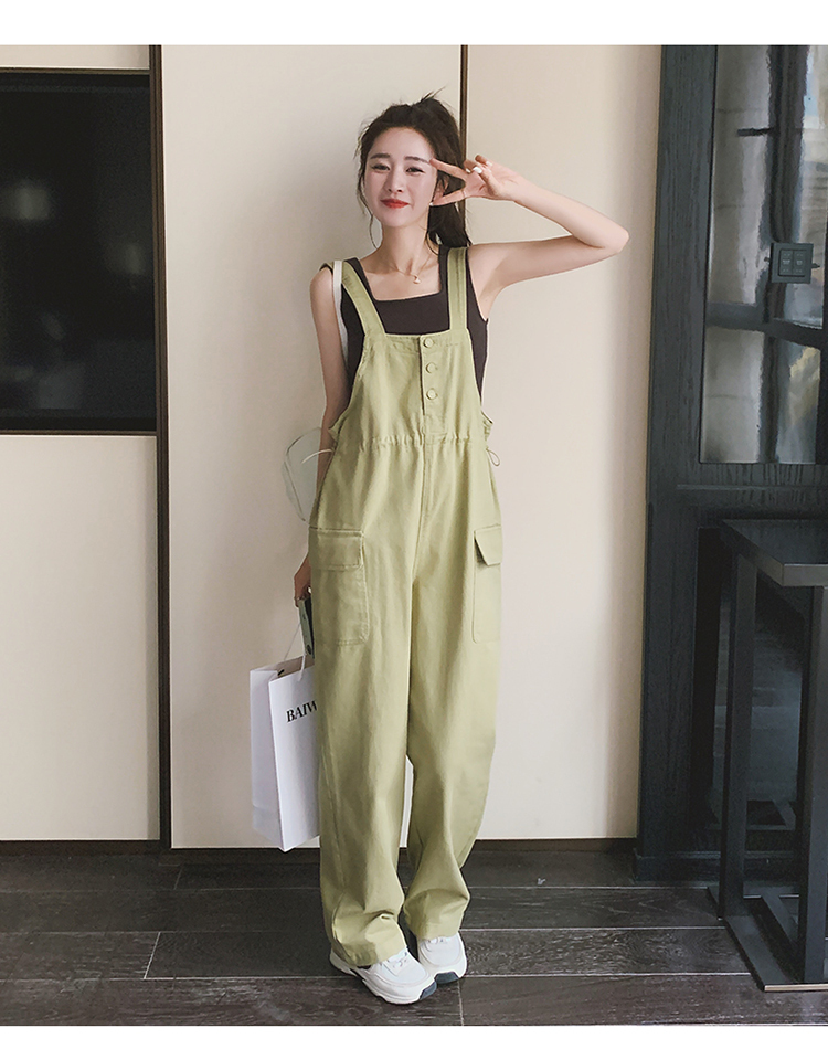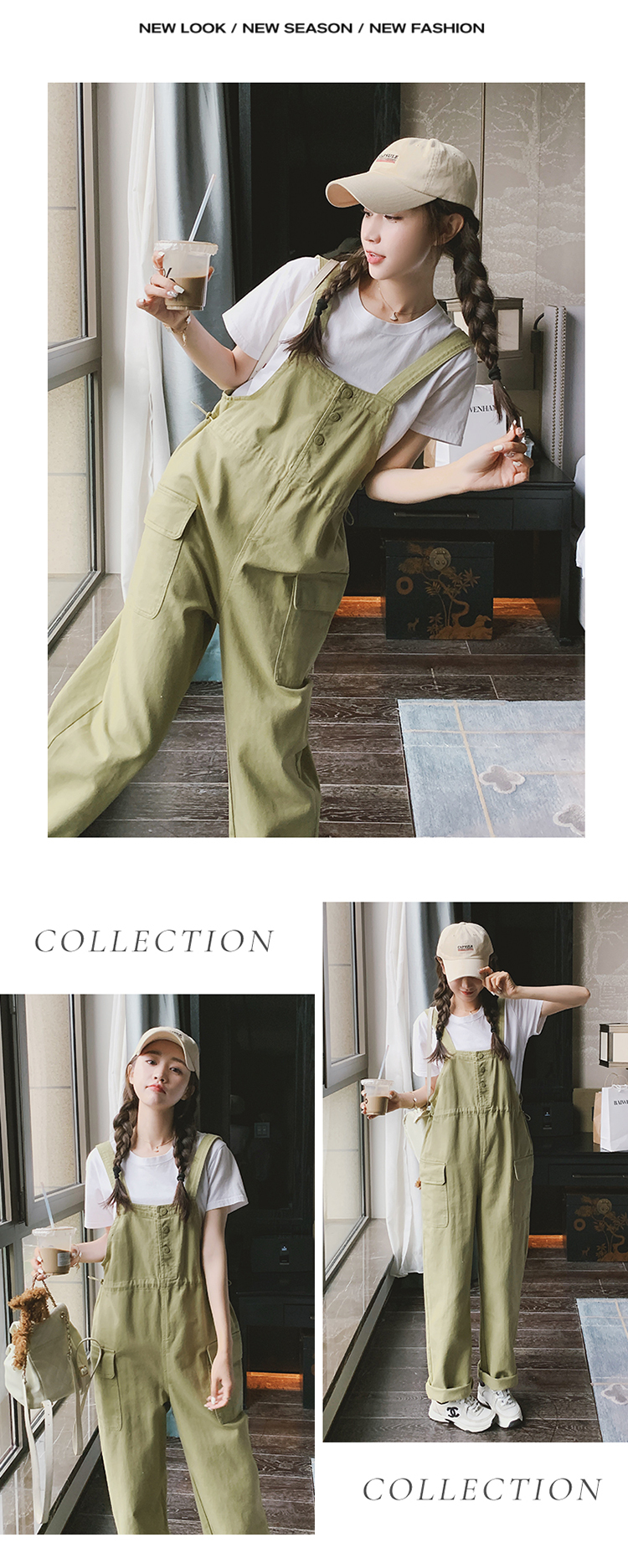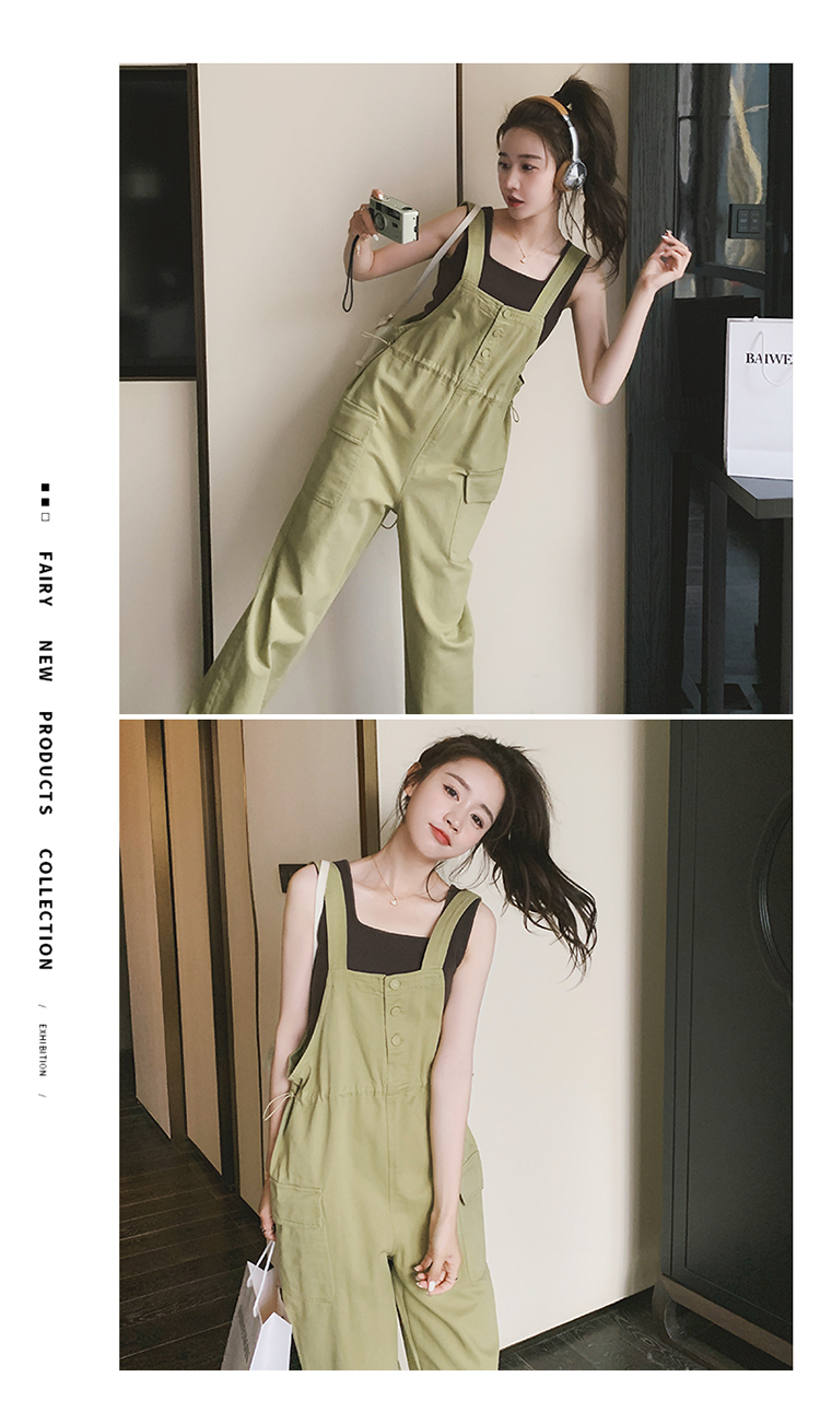 獨家訂製│韓系減齡感抽繩收腰工裝吊帶褲(05H6354)