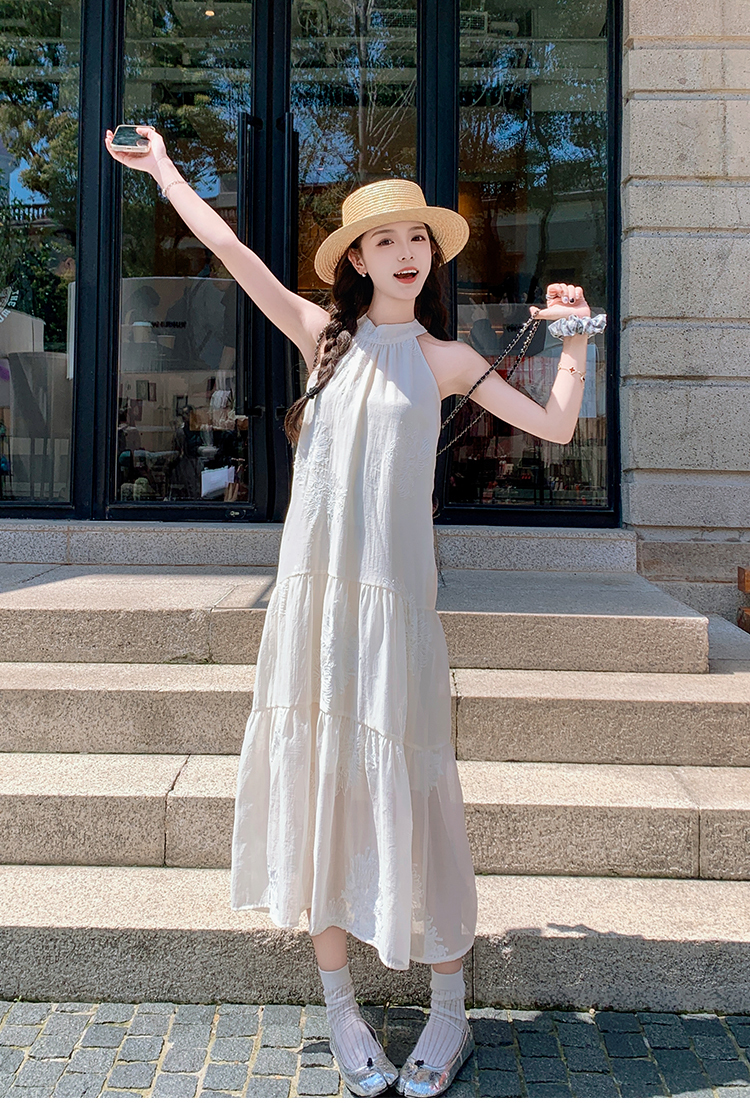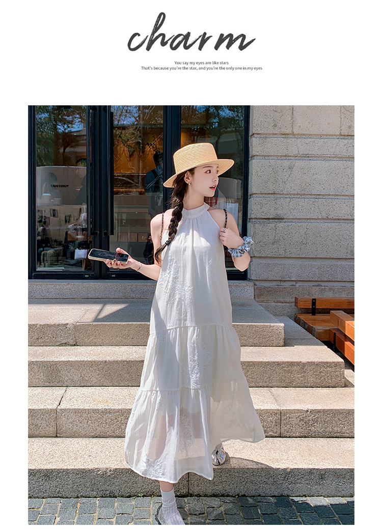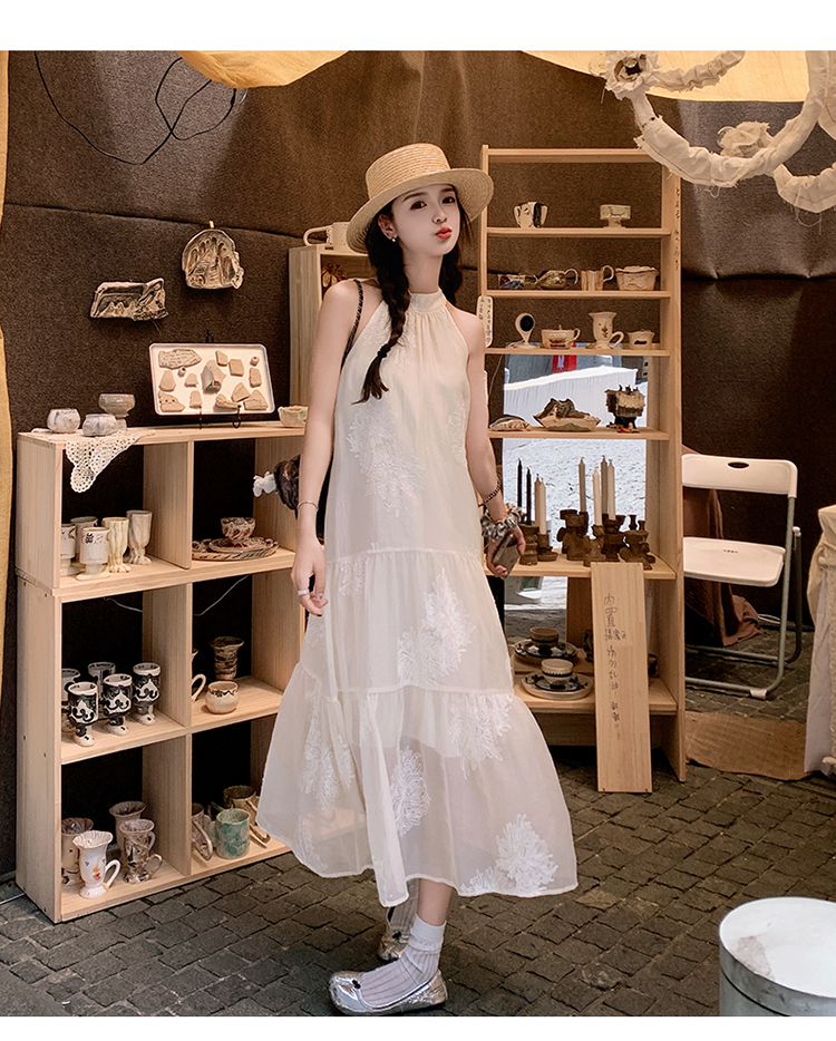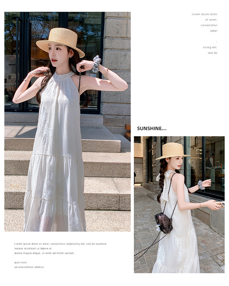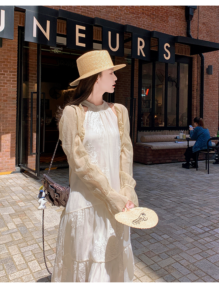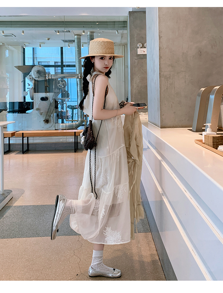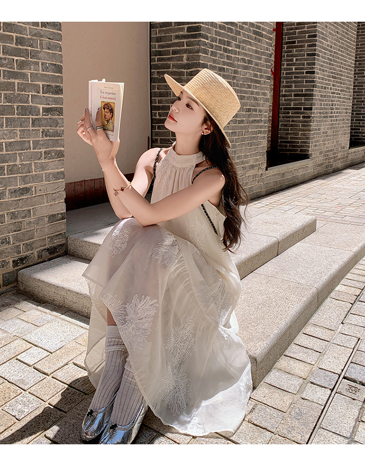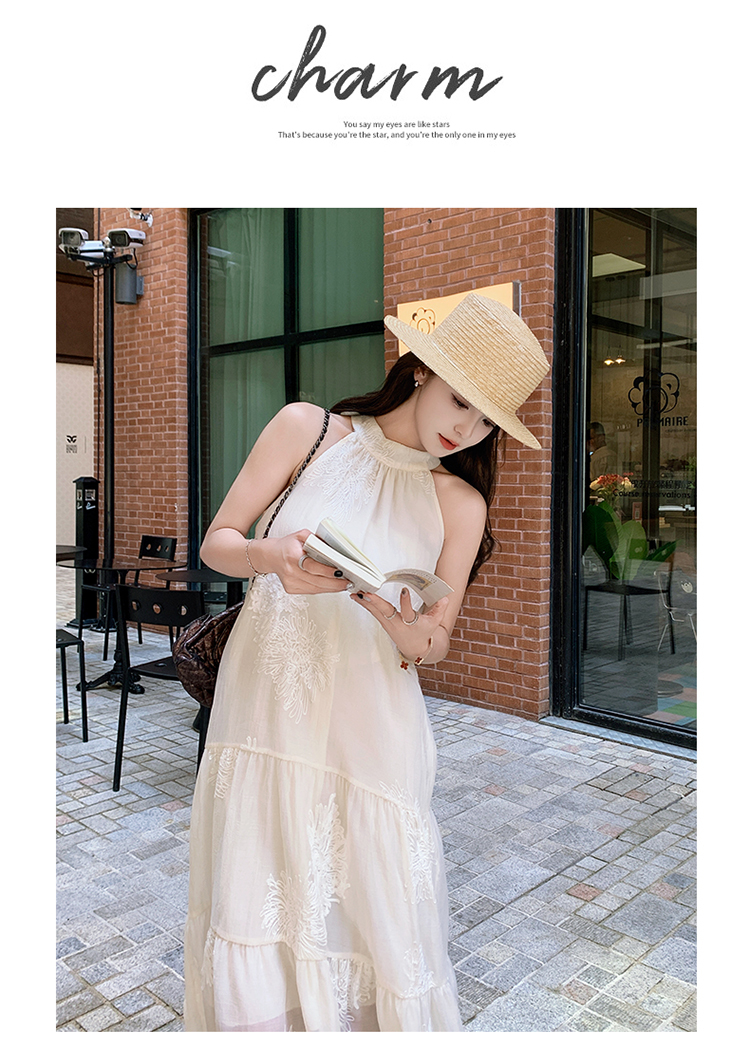獨家訂製│韓系氣質感重工刺繡綁帶連衣裙(05H6363)