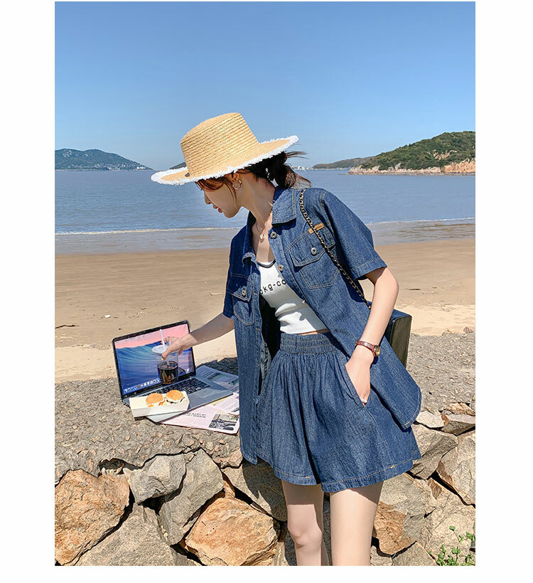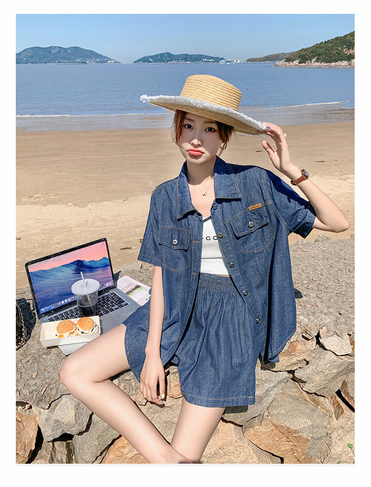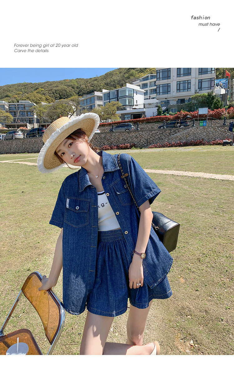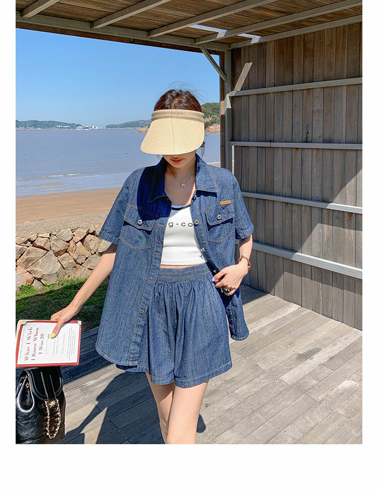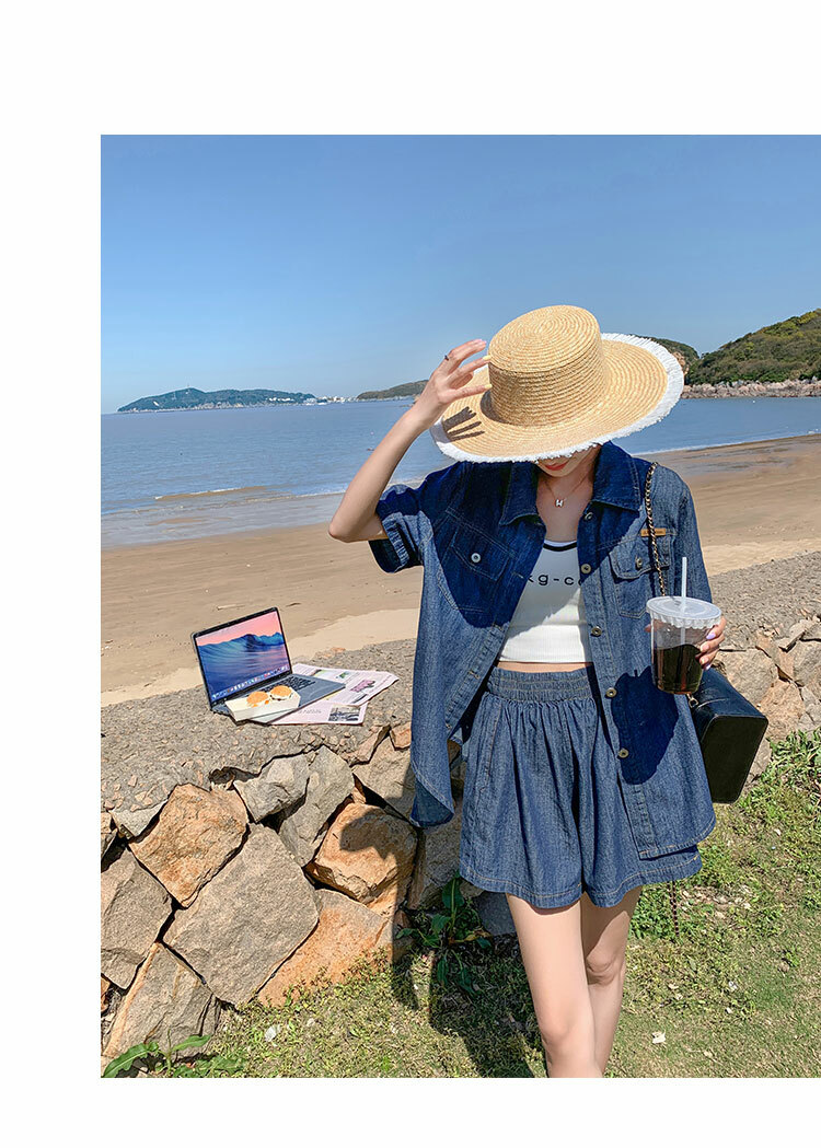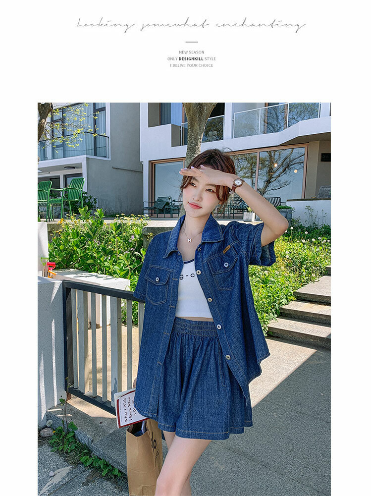 獨家訂製│韓系復古仿舊牛仔襯衫+闊腿褲兩件式套裝組(05H6366)
