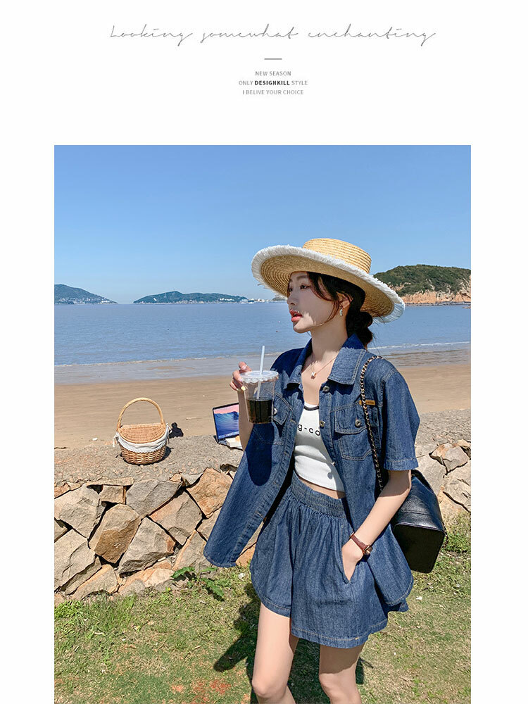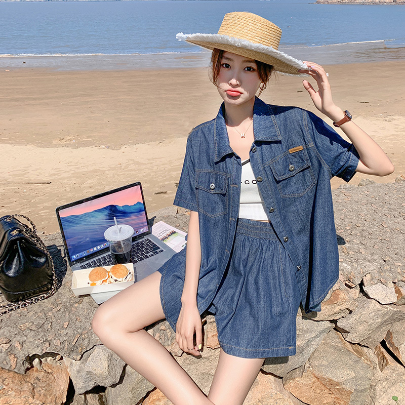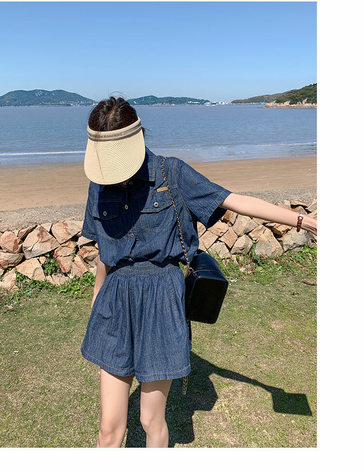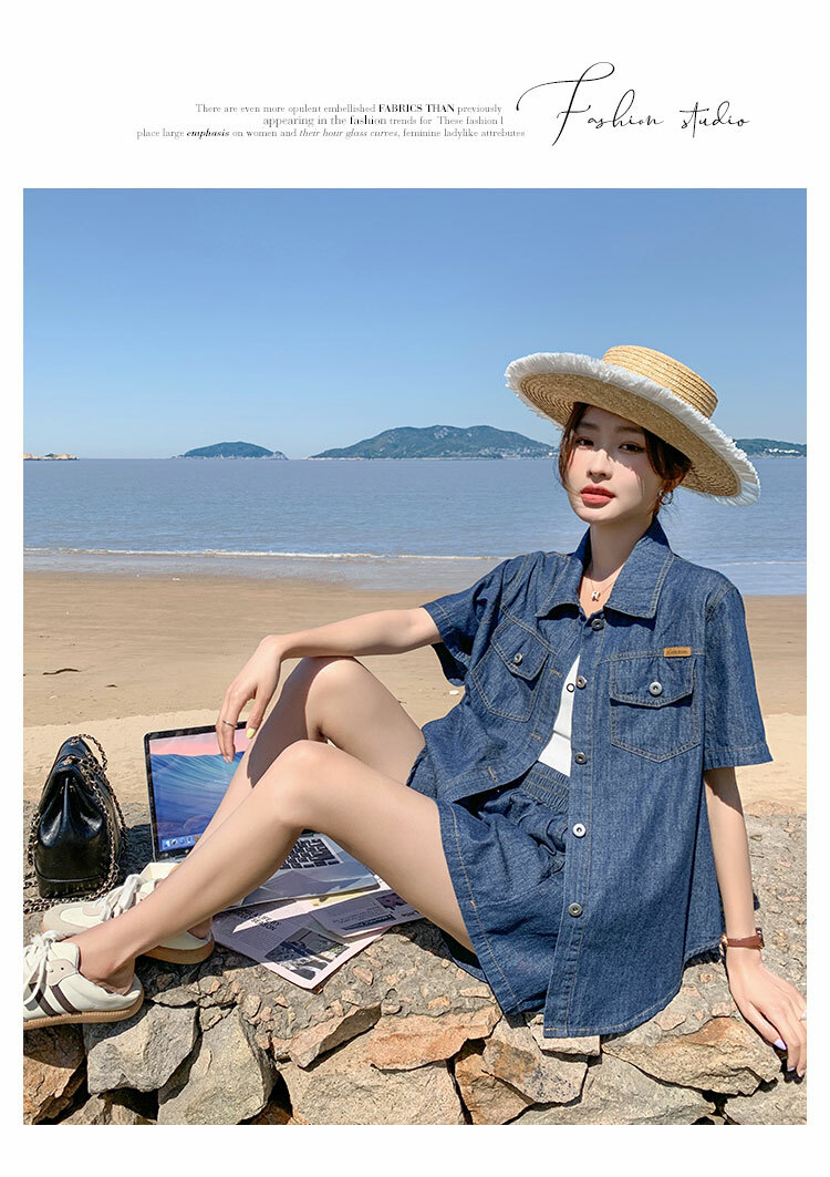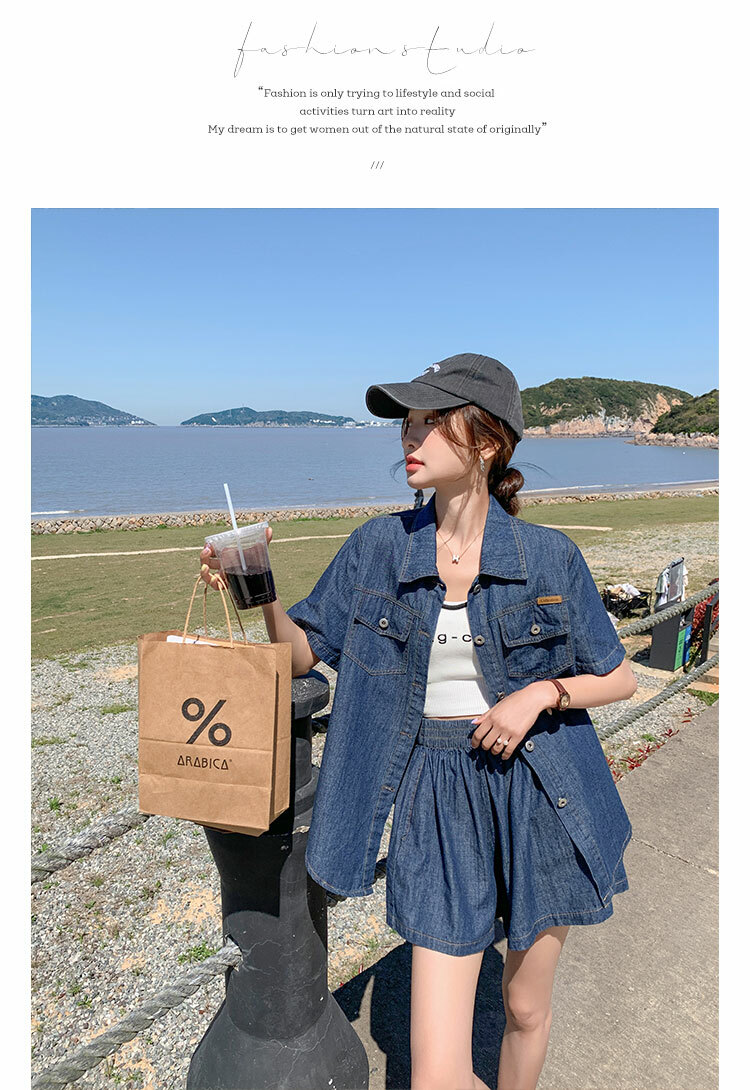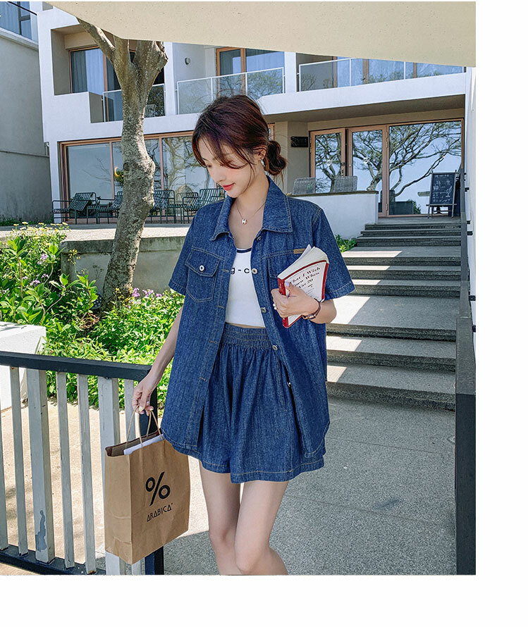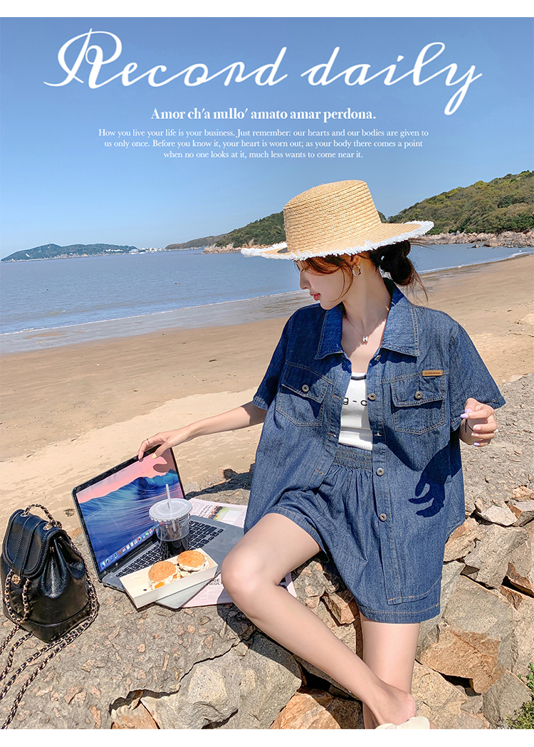 獨家訂製│韓系復古仿舊牛仔襯衫+闊腿褲兩件式套裝組(05H6366)