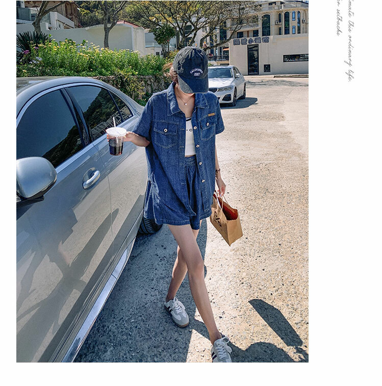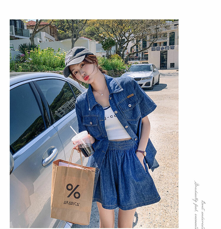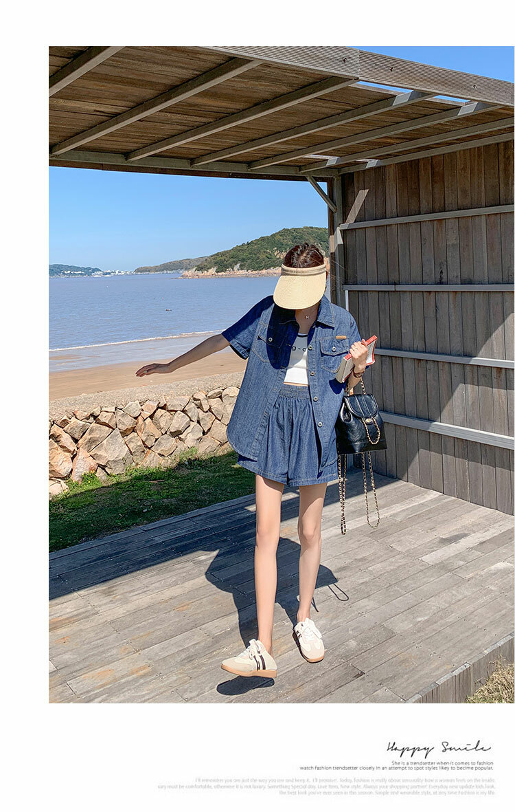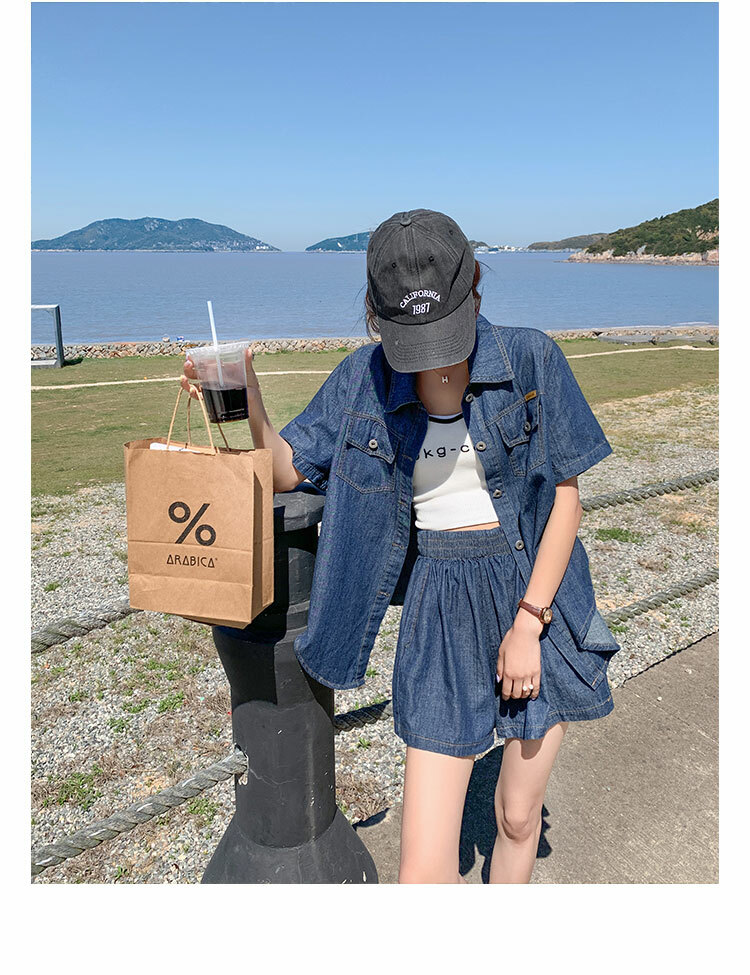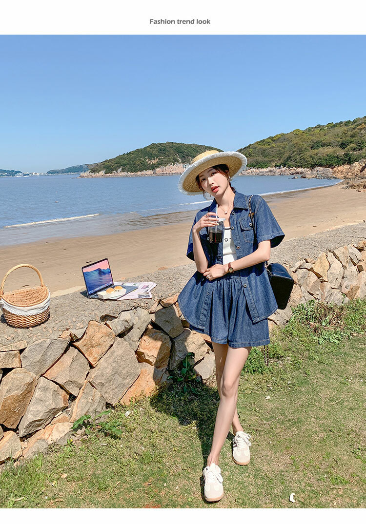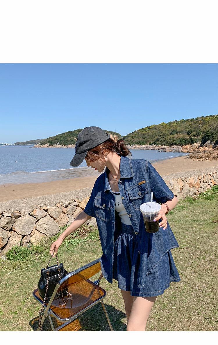 獨家訂製│韓系復古仿舊牛仔襯衫+闊腿褲兩件式套裝組(05H6366)