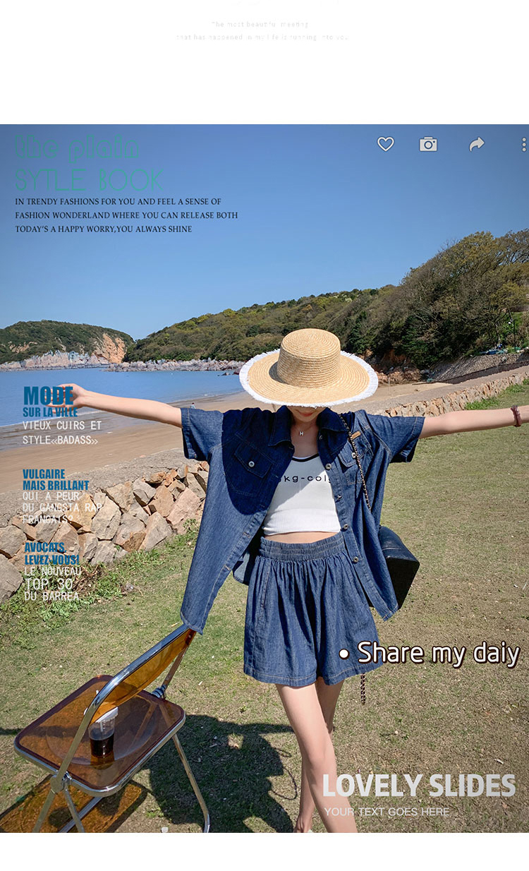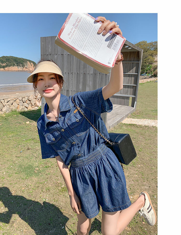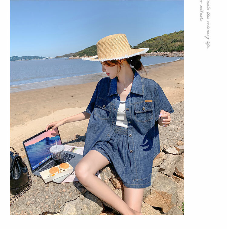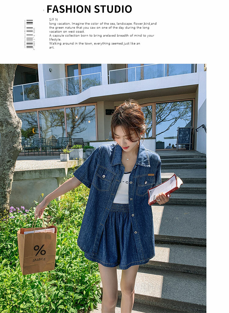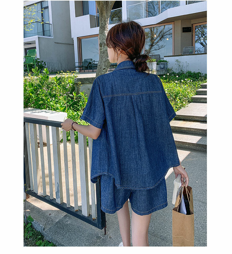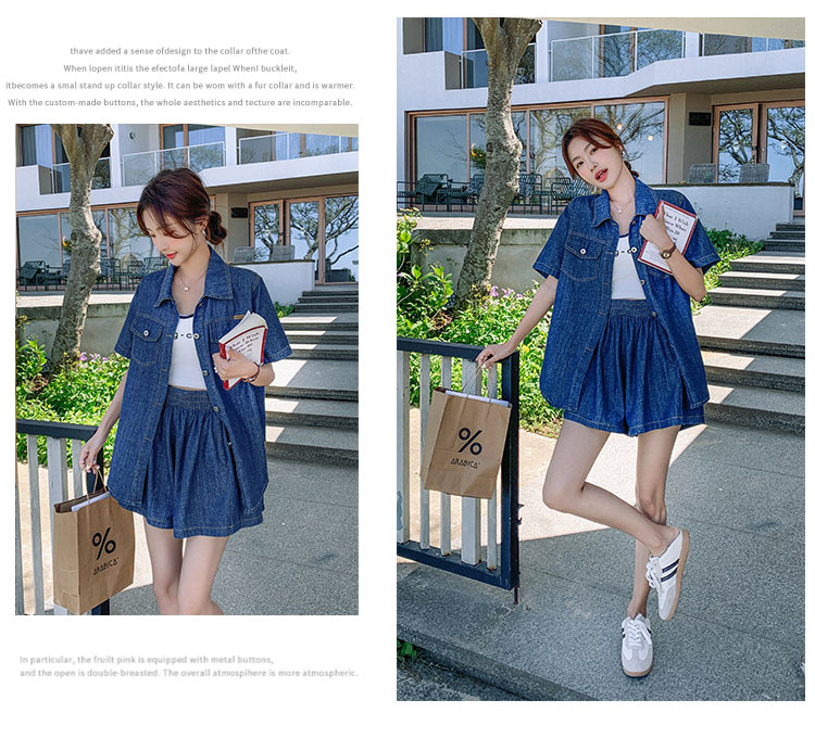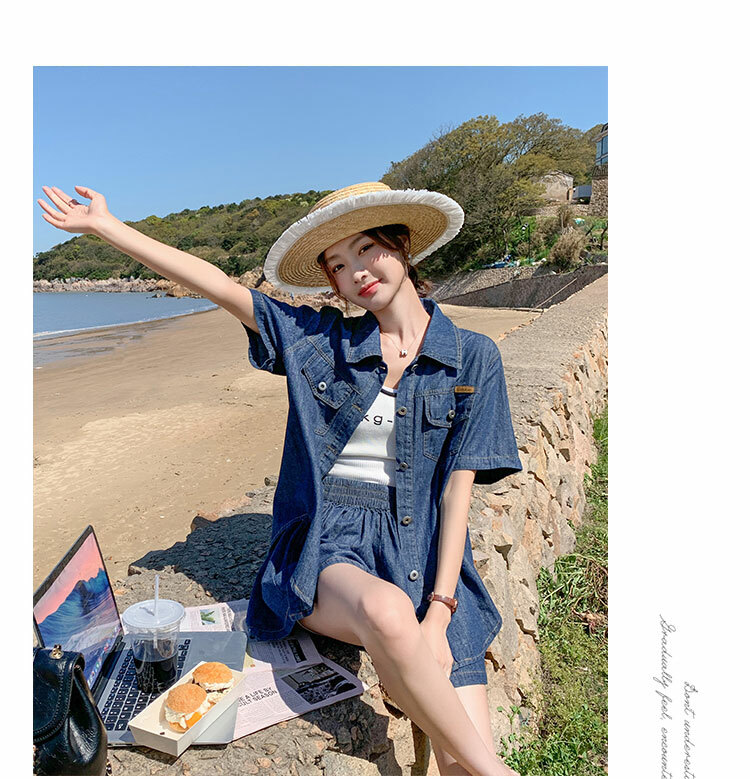 獨家訂製│韓系復古仿舊牛仔襯衫+闊腿褲兩件式套裝組(05H6366)