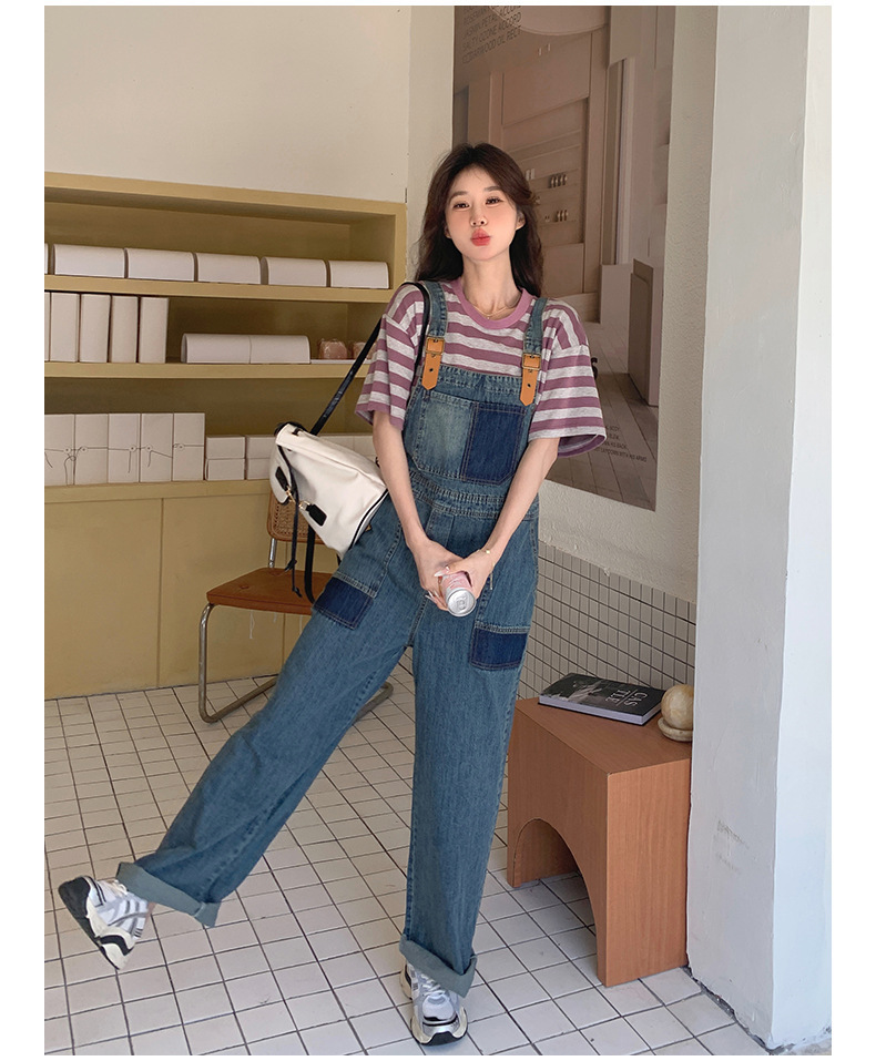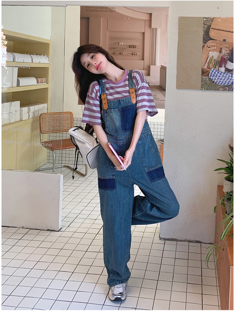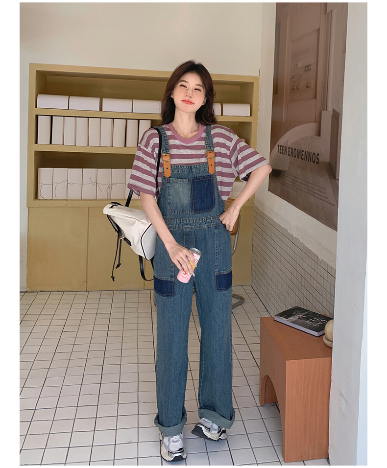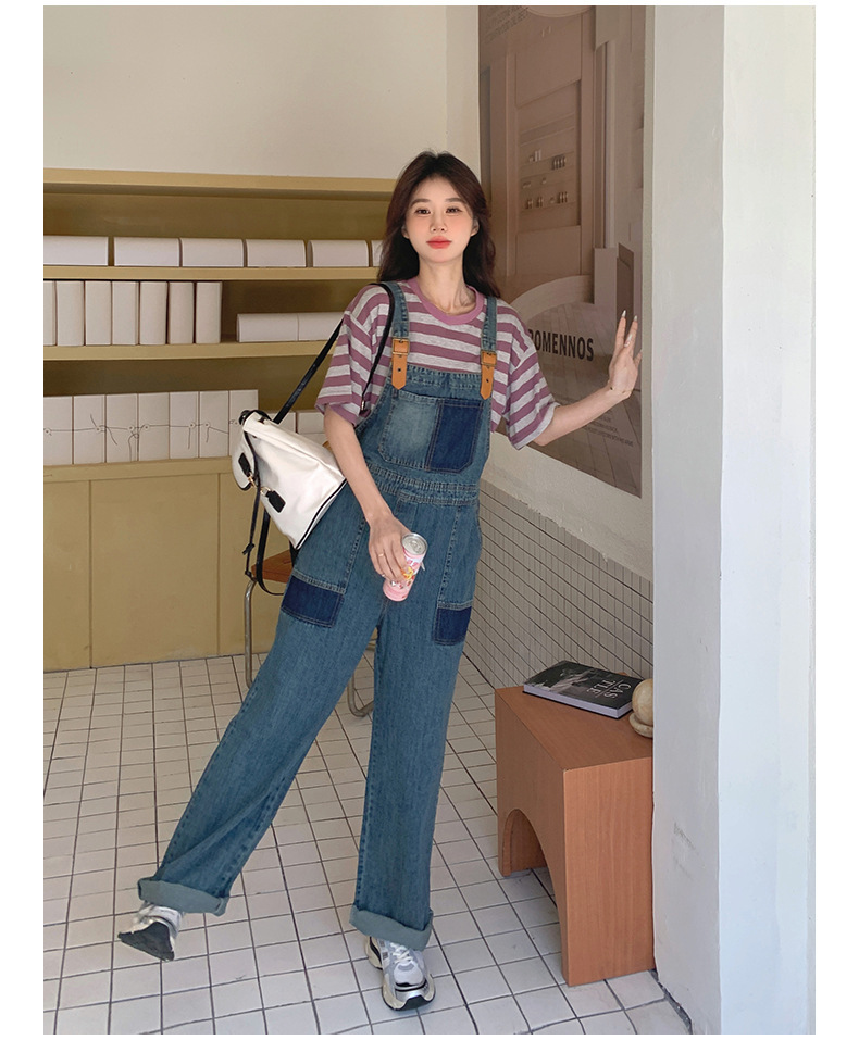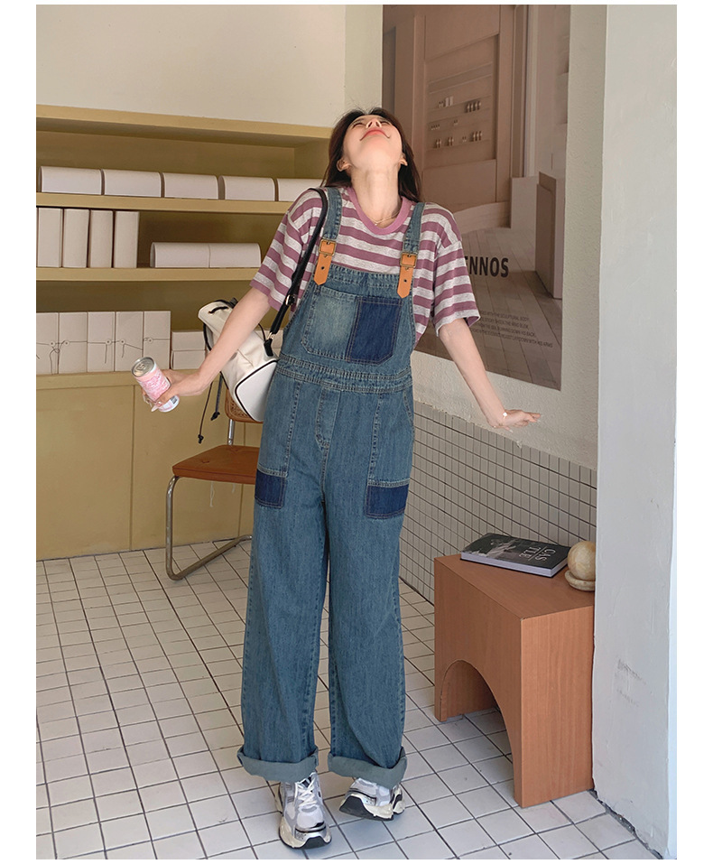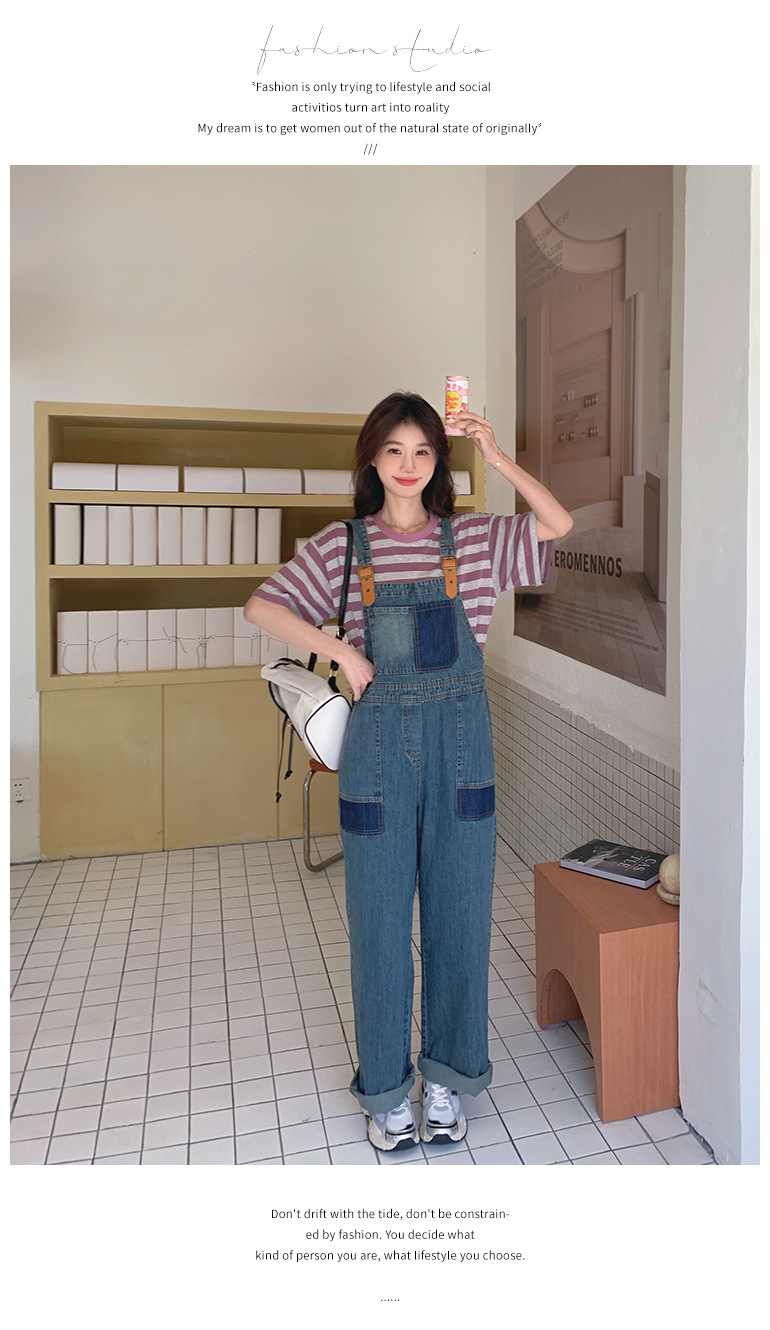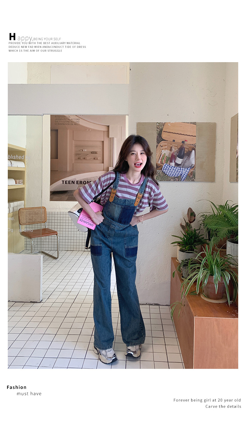 獨家訂製│韓系甜酷風復古撞色吊帶褲(05H6385)