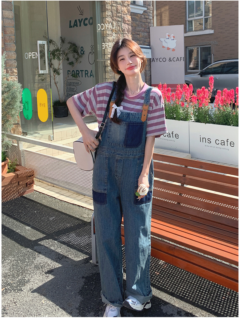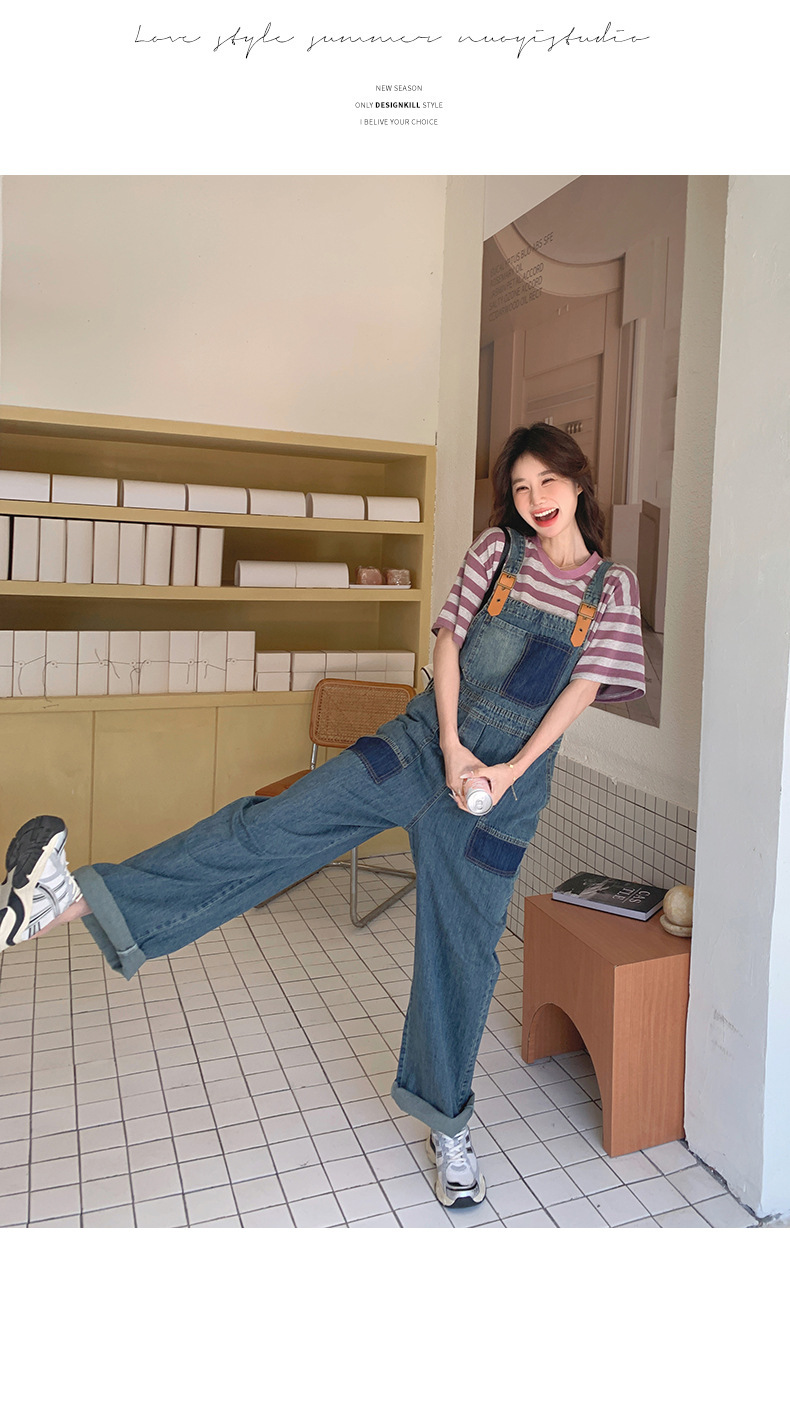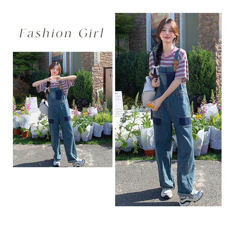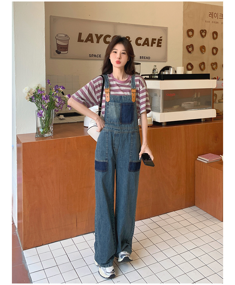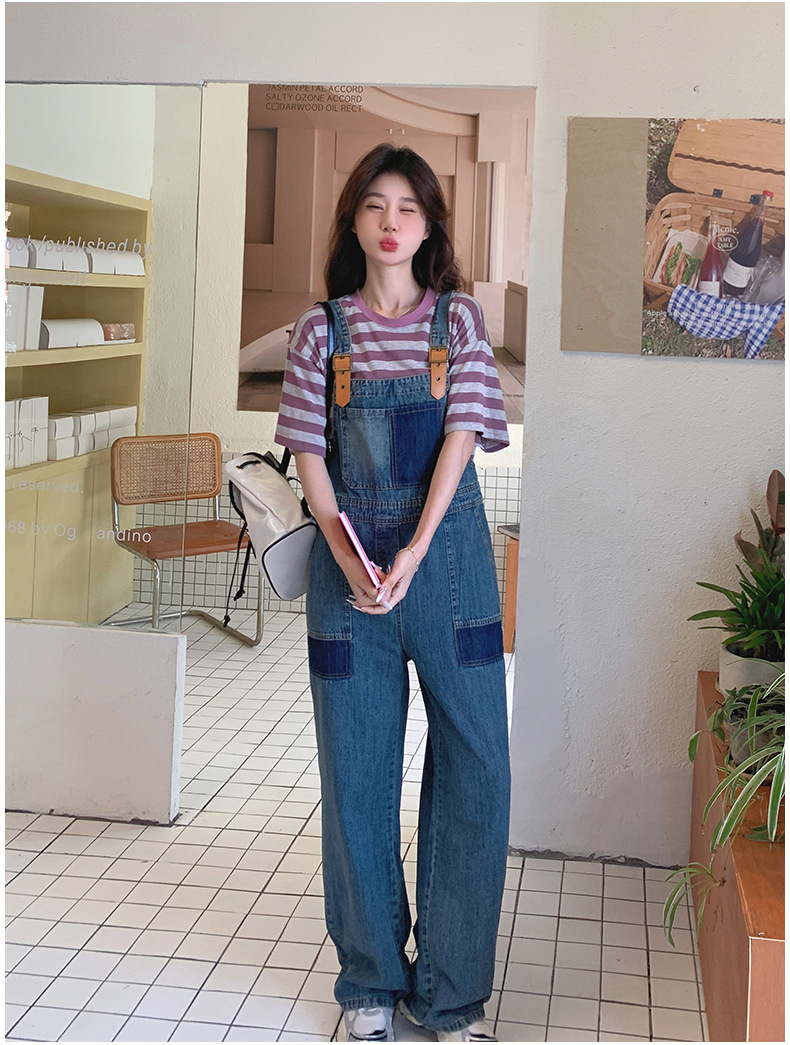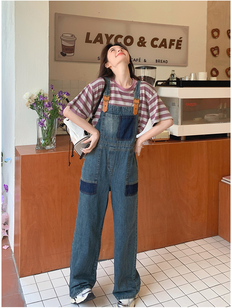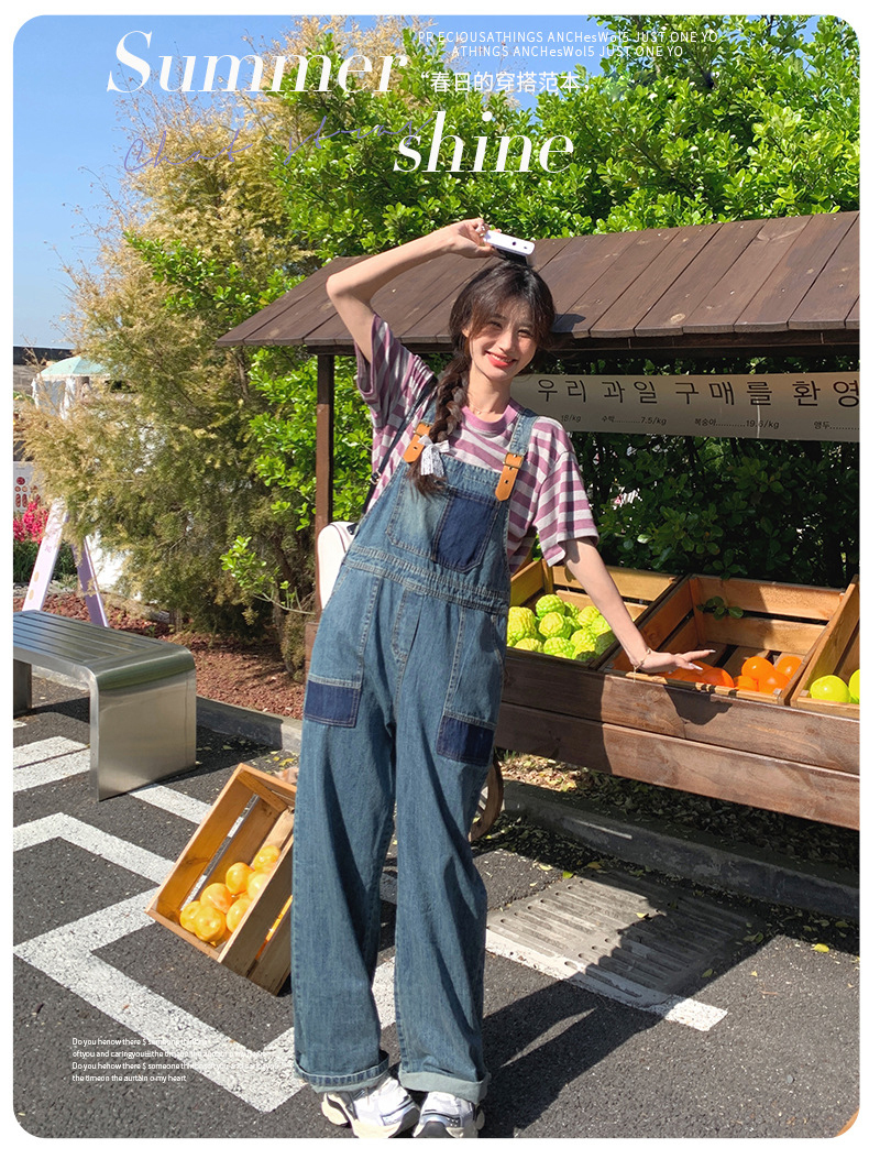 獨家訂製│韓系甜酷風復古撞色吊帶褲(05H6385)