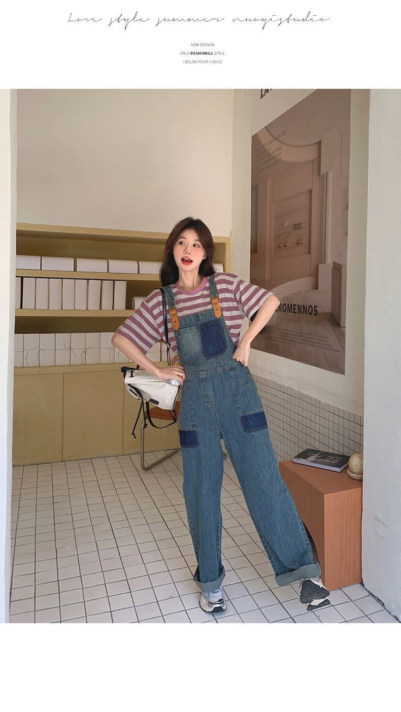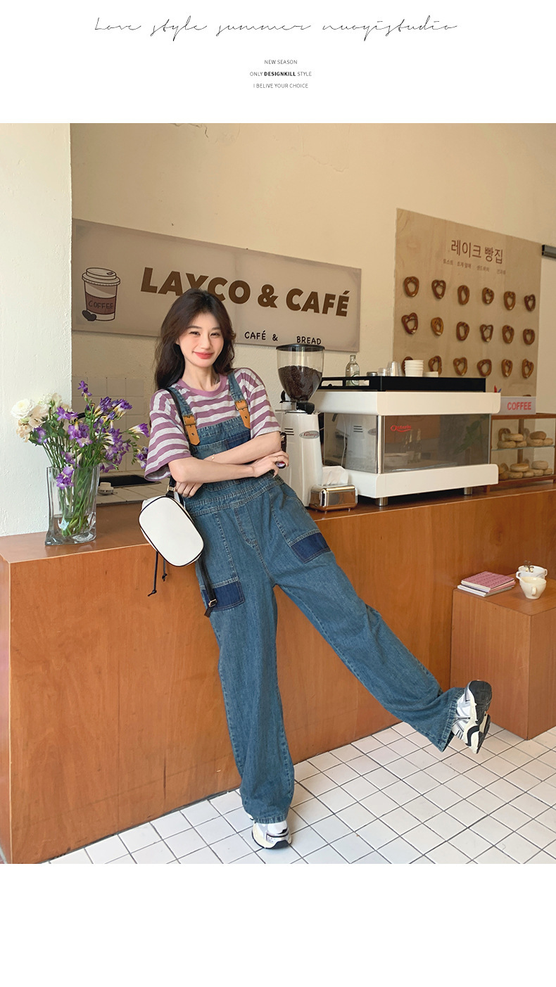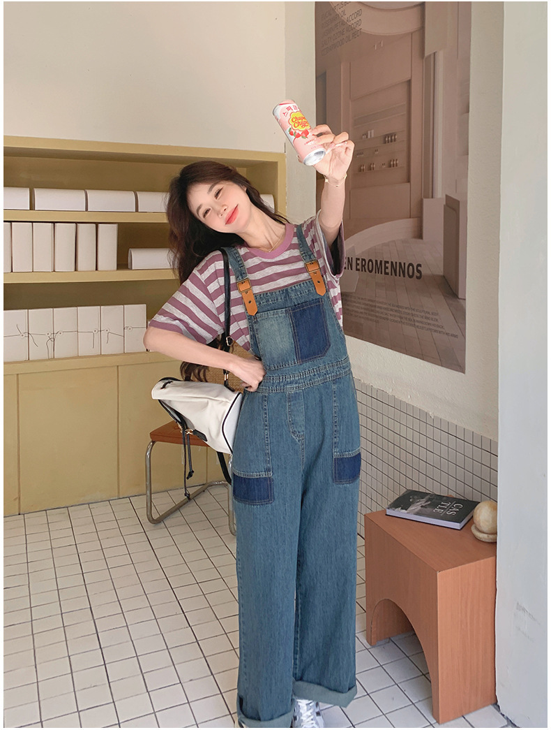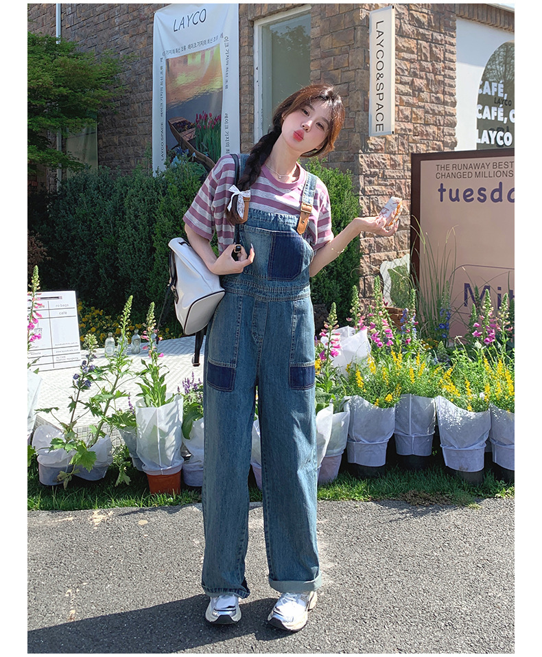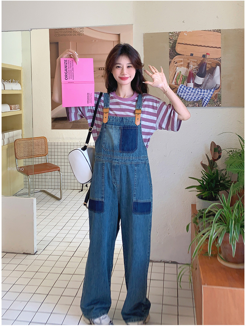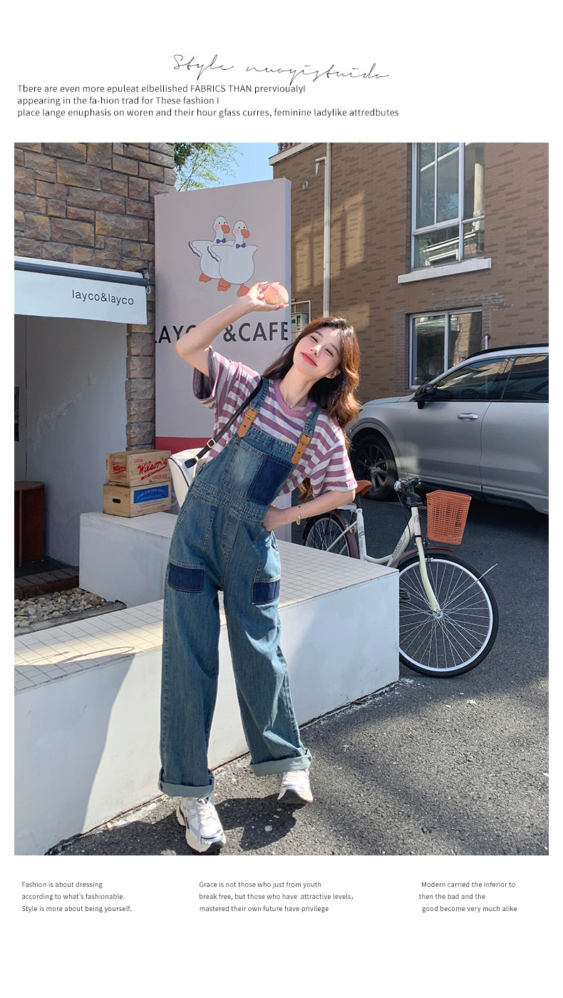 獨家訂製│韓系甜酷風復古撞色吊帶褲(05H6385)