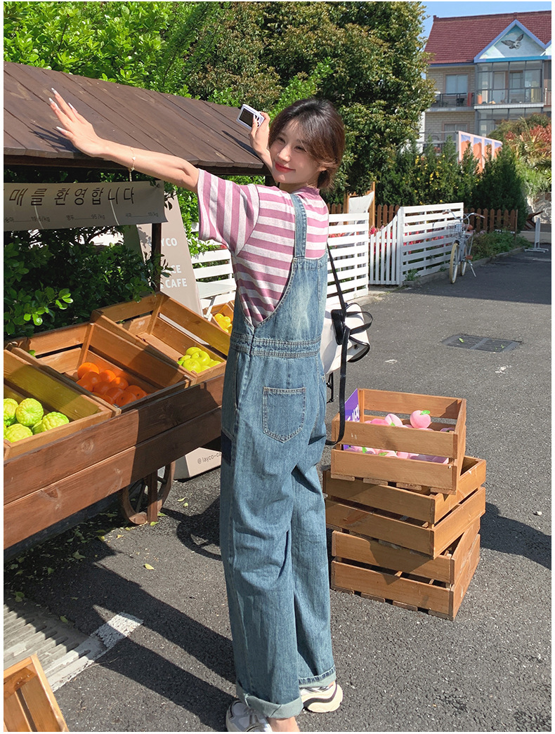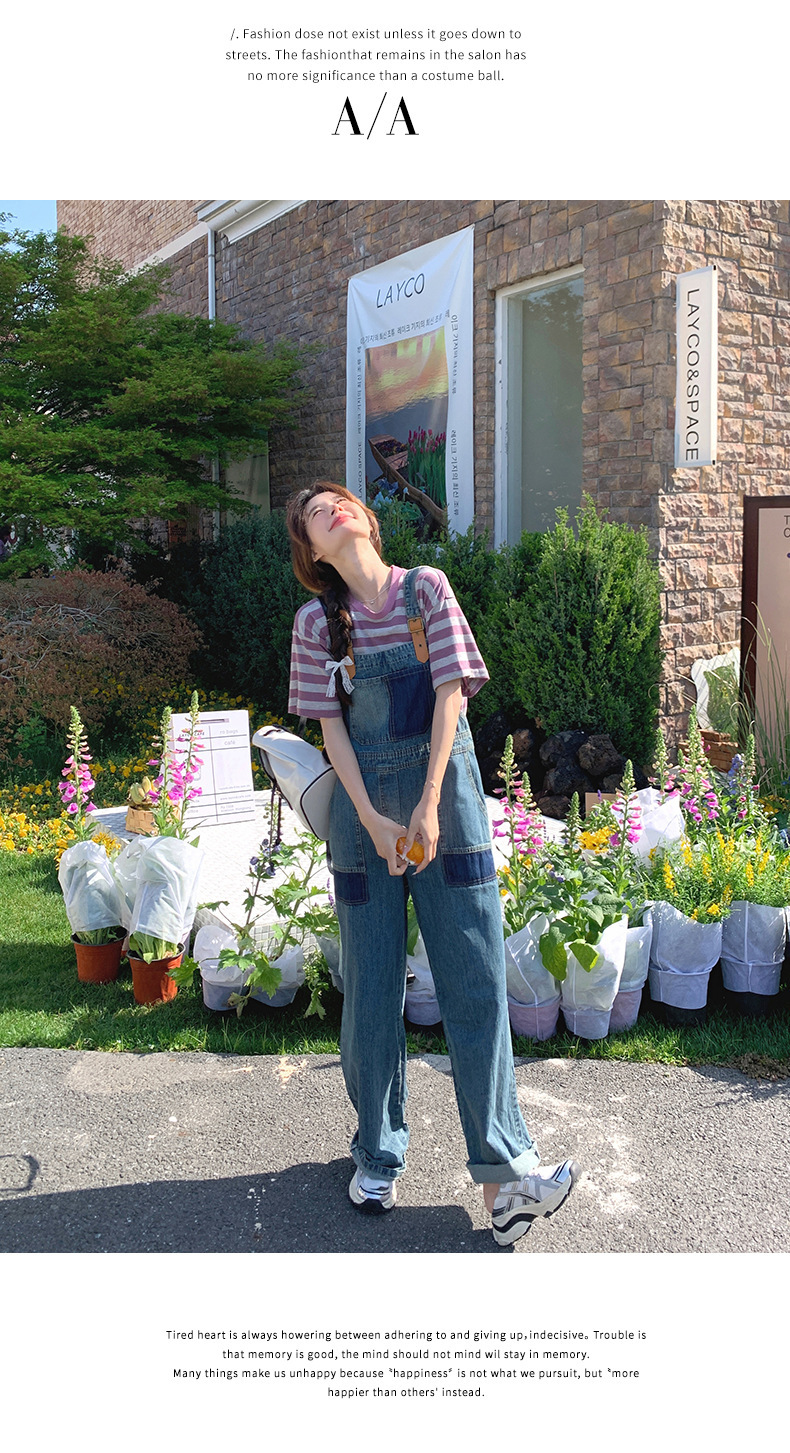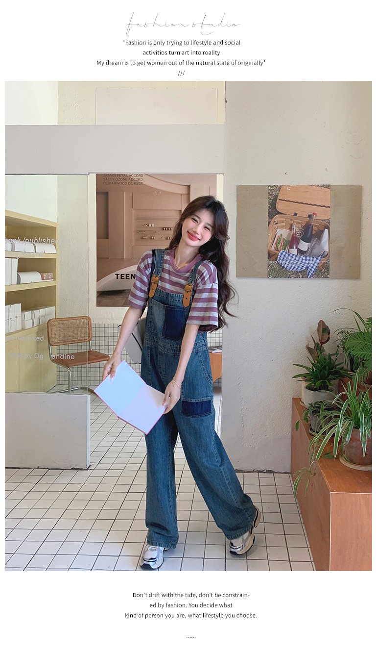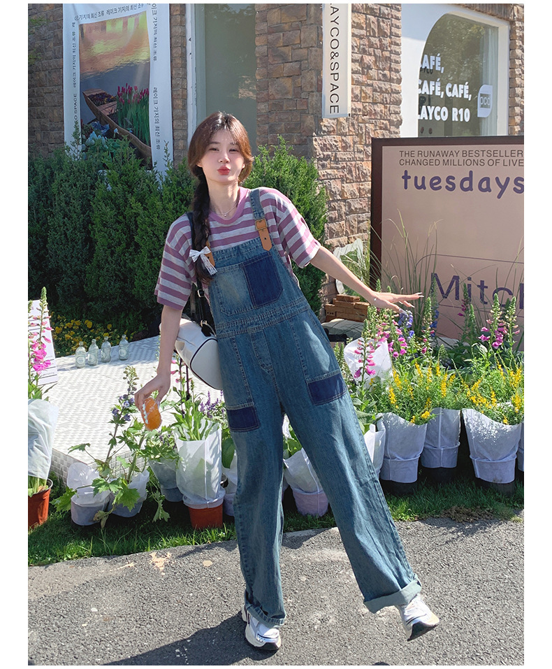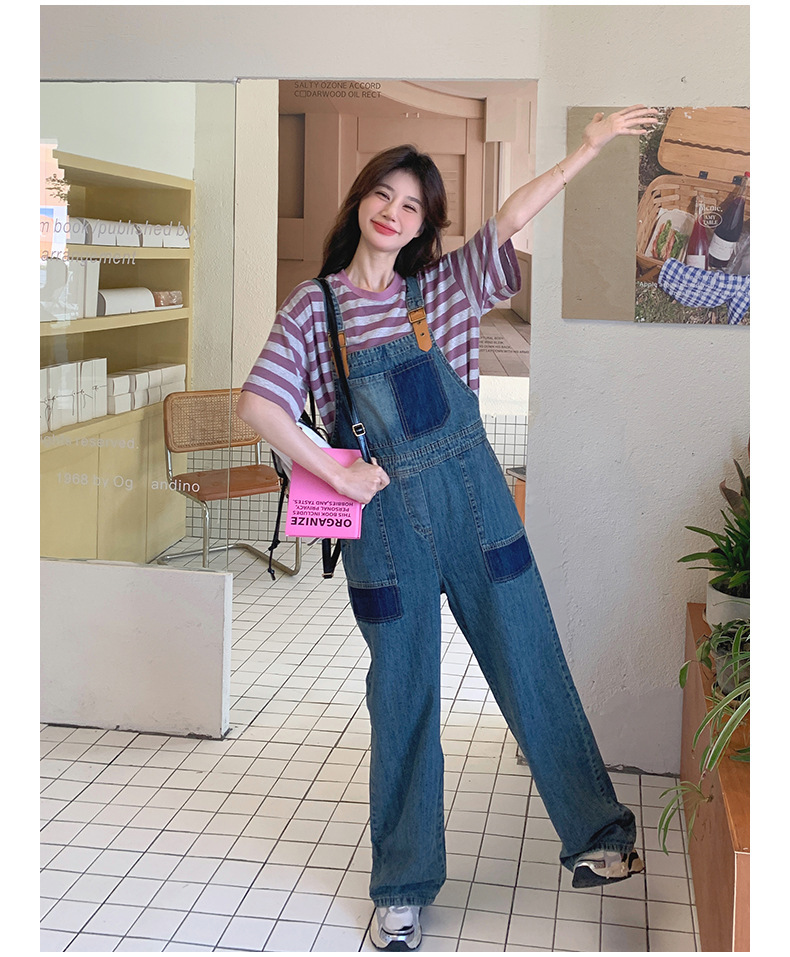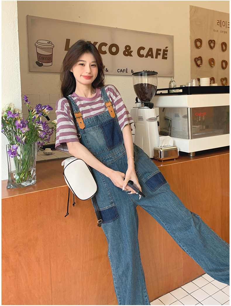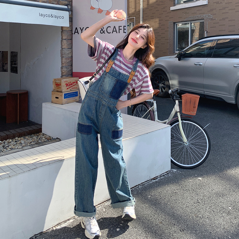 獨家訂製│韓系甜酷風復古撞色吊帶褲(05H6385)