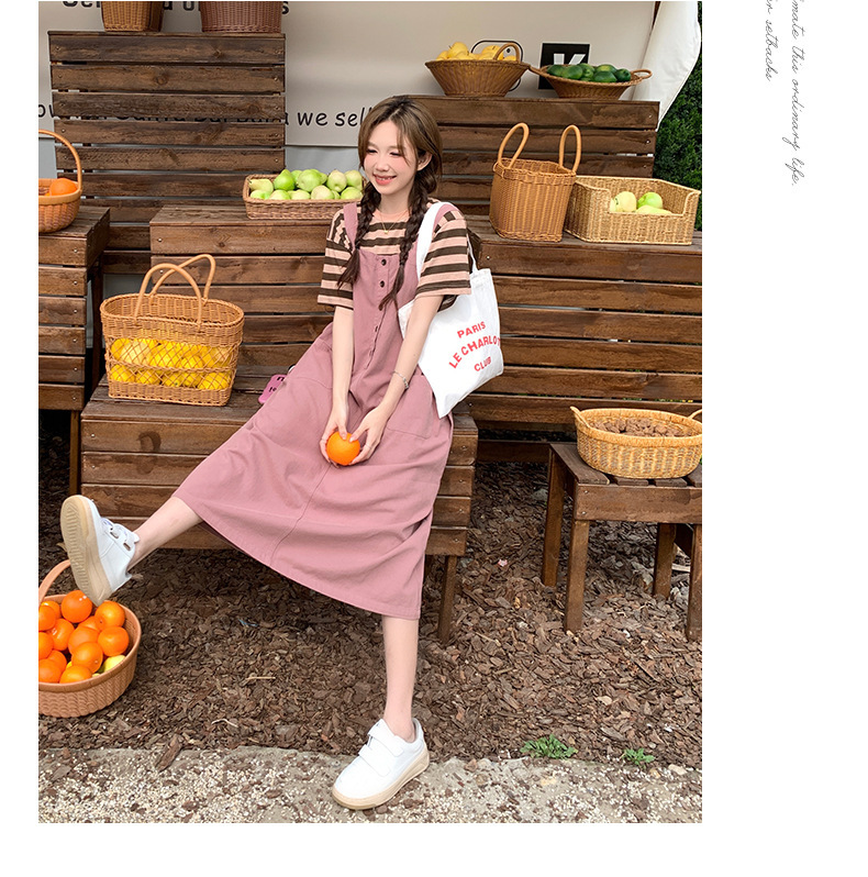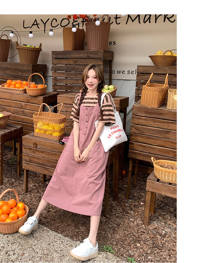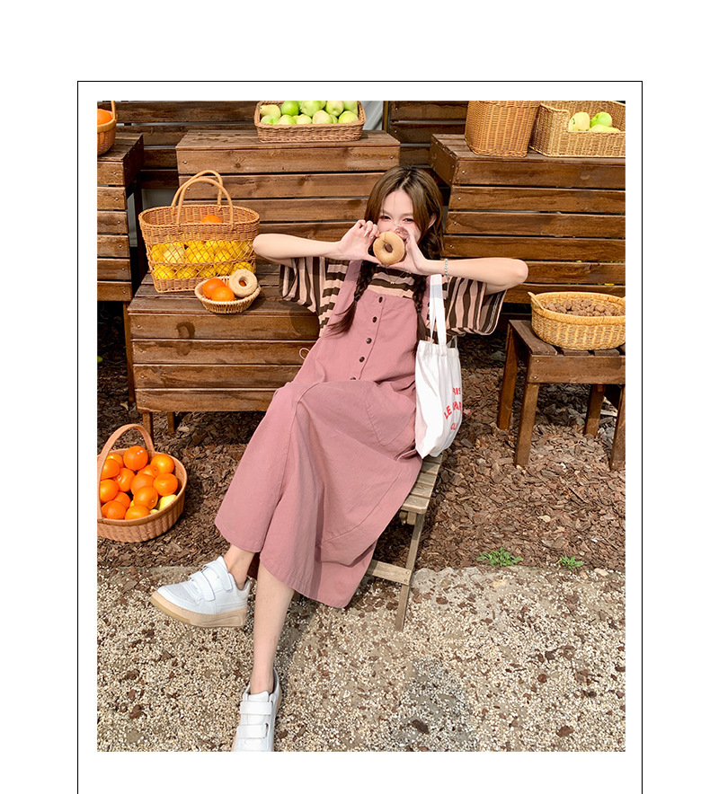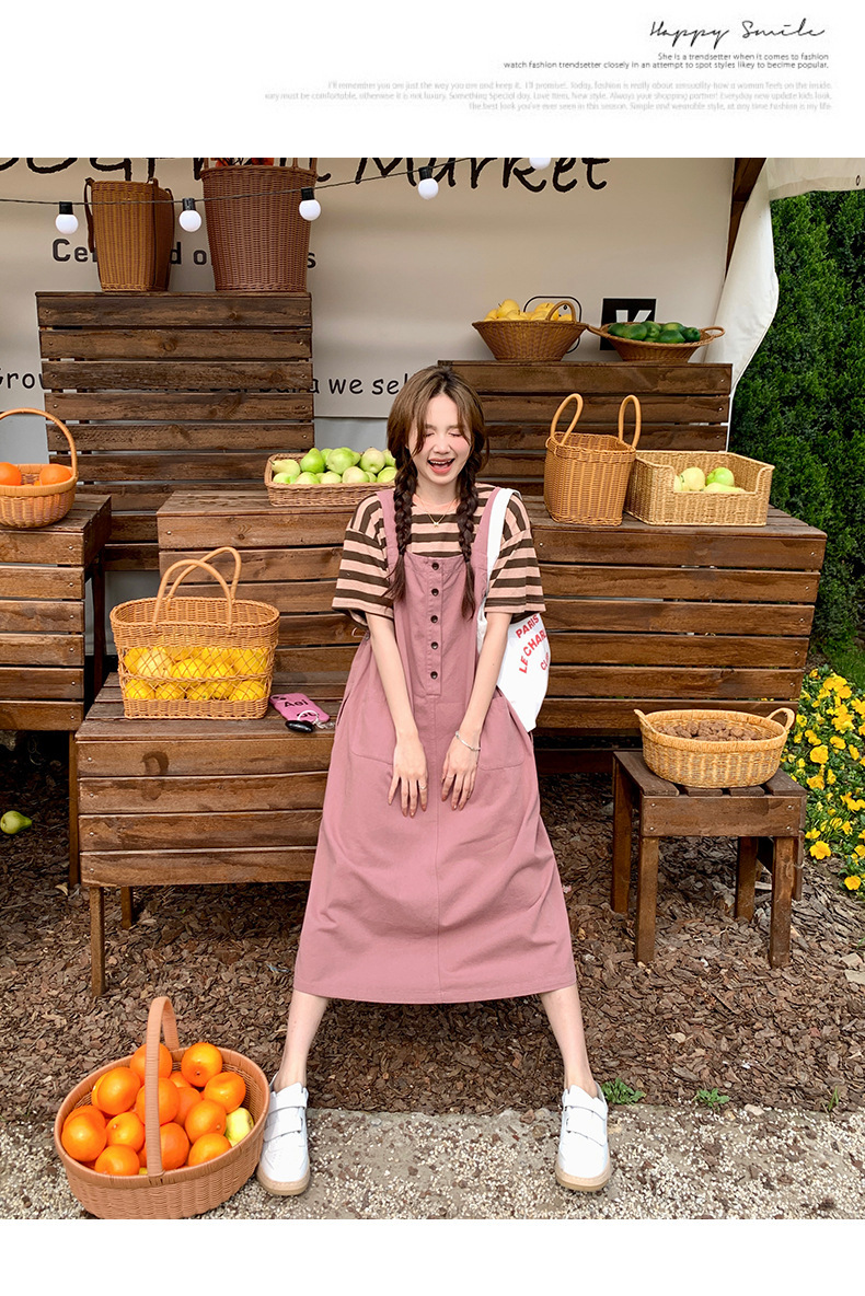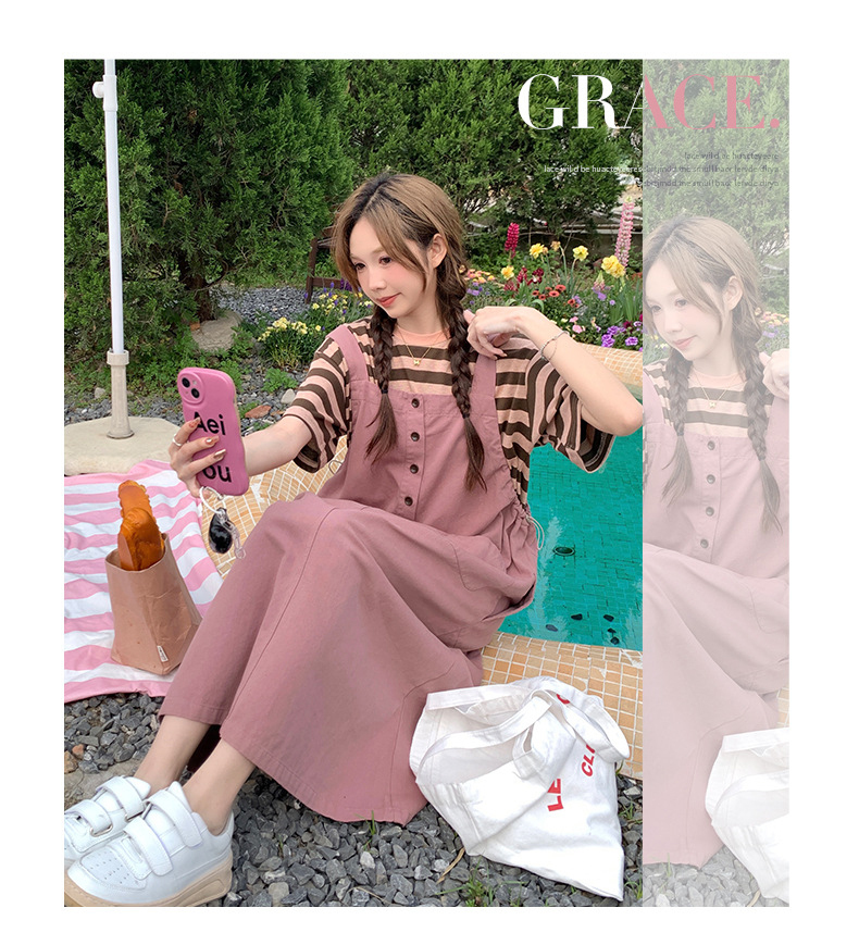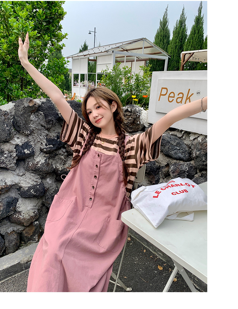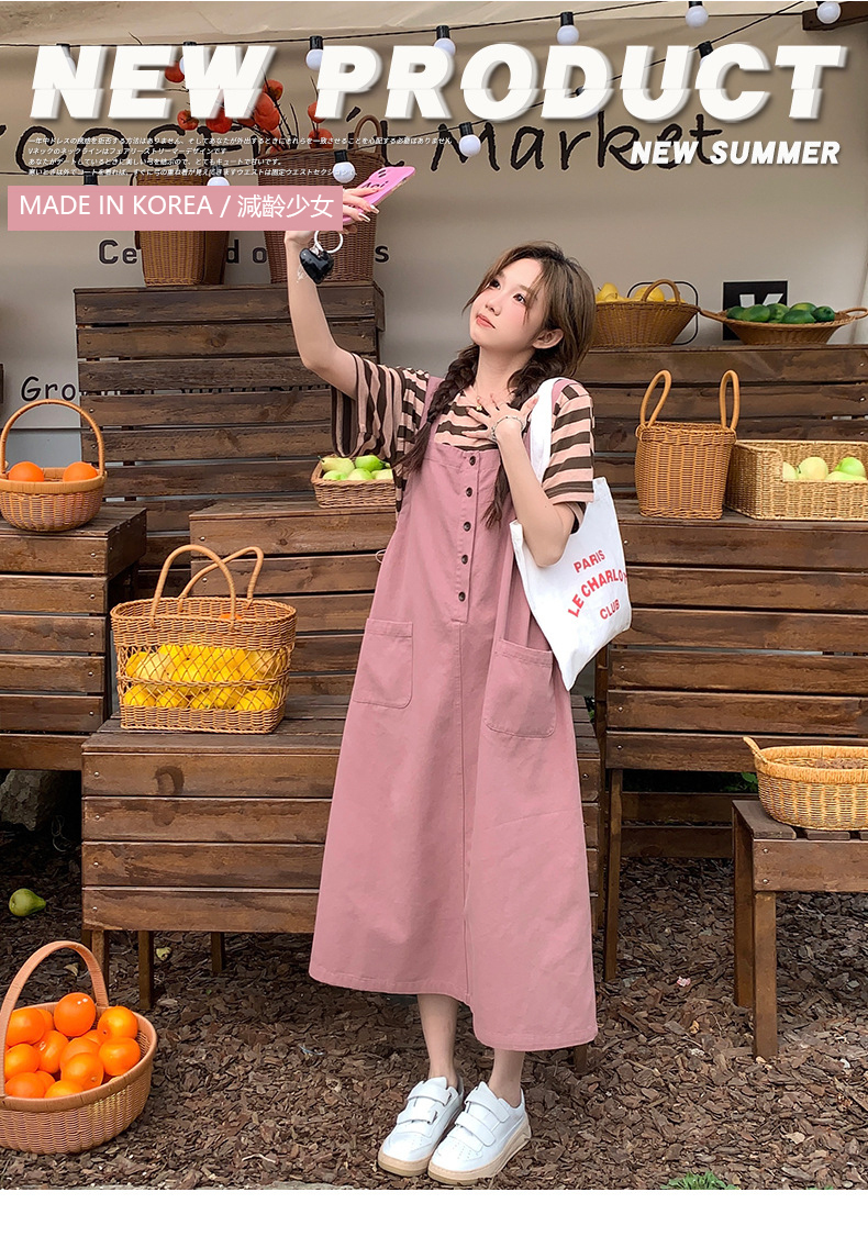 獨家訂製│韓系甜美感抽繩收腰單排釦吊帶裙(05H6387)