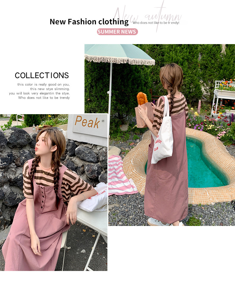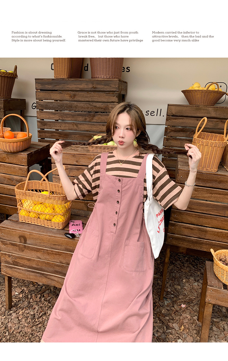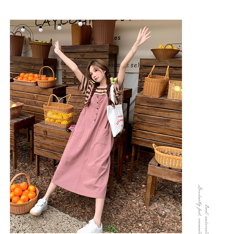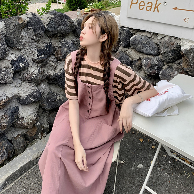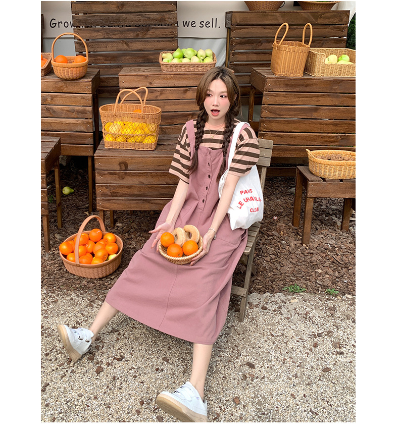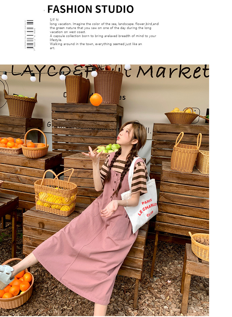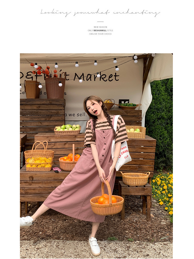 獨家訂製│韓系甜美感抽繩收腰單排釦吊帶裙(05H6387)