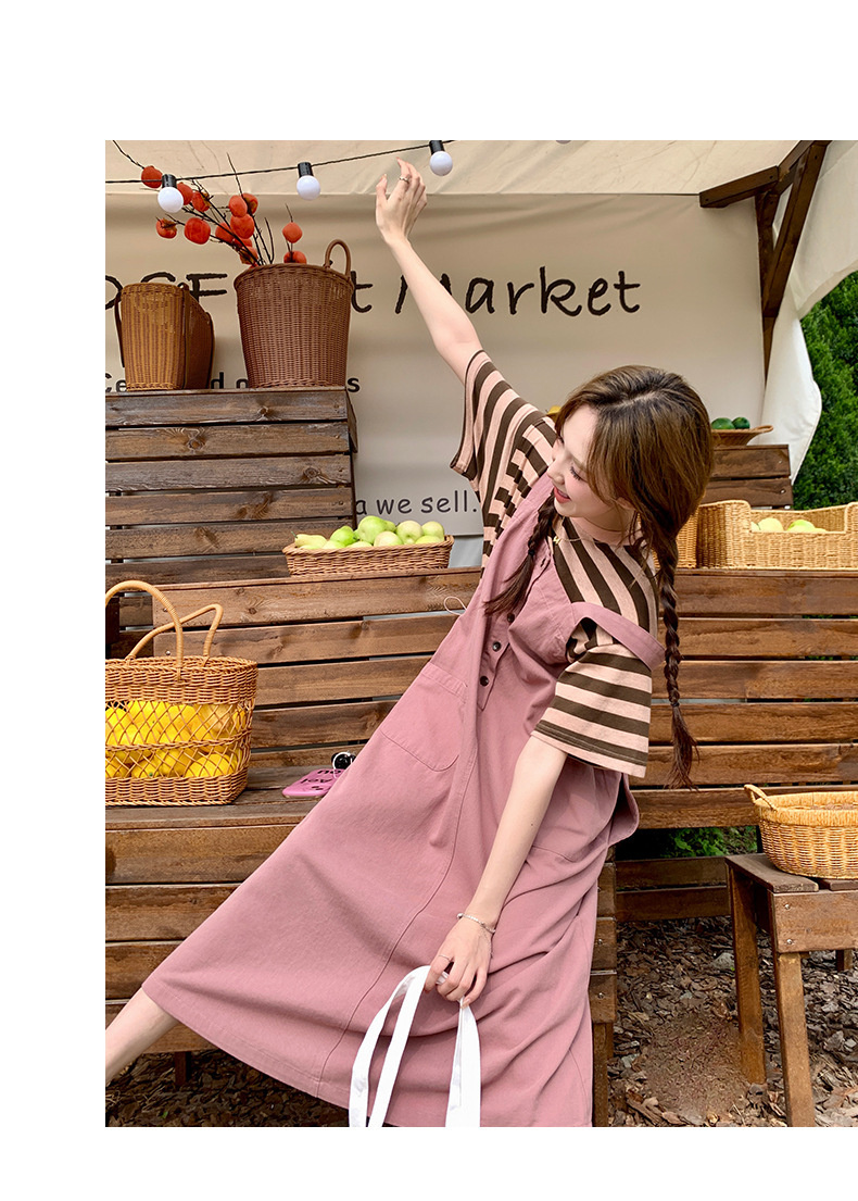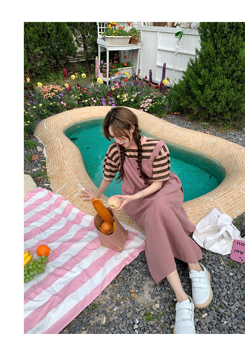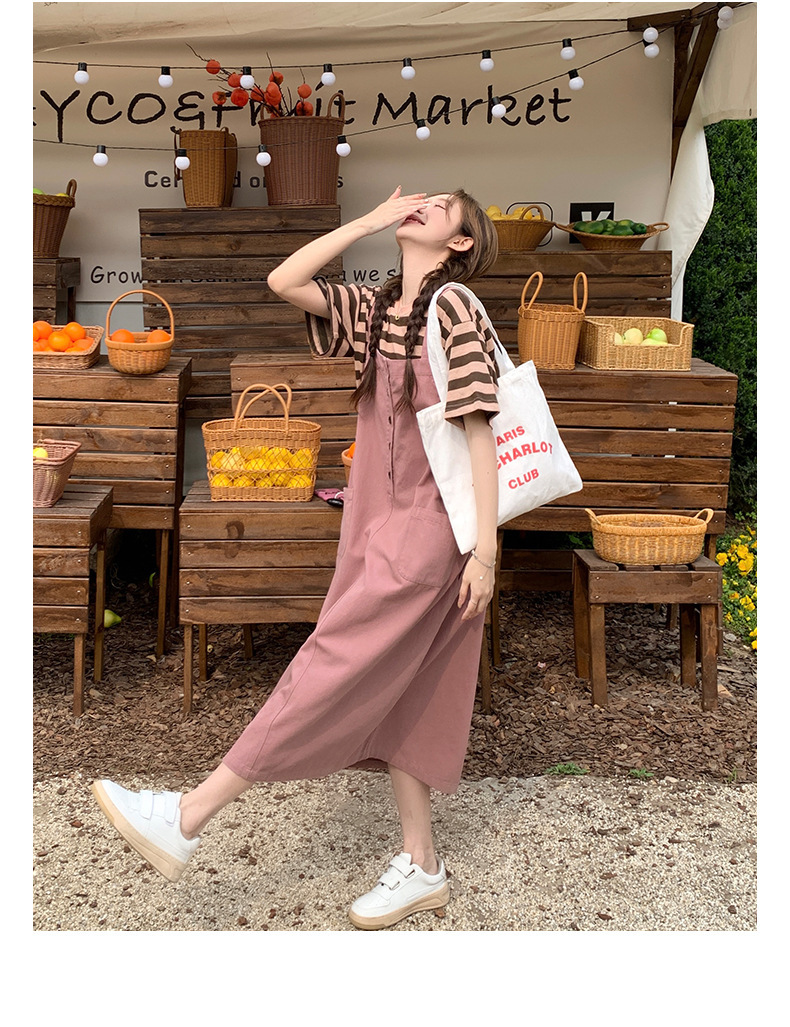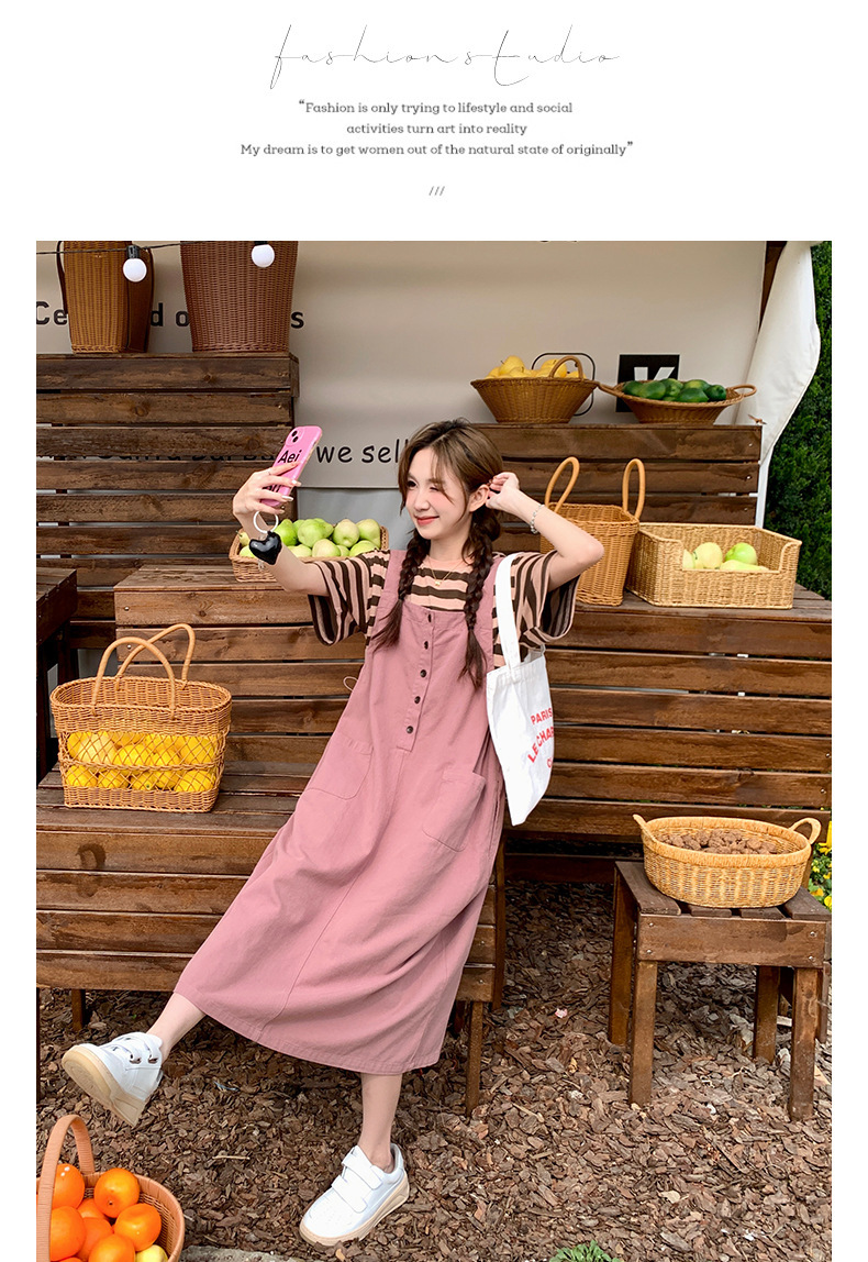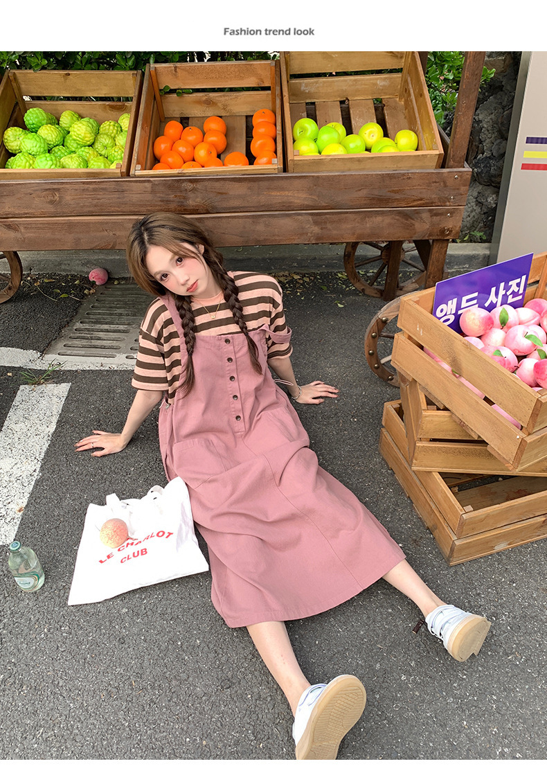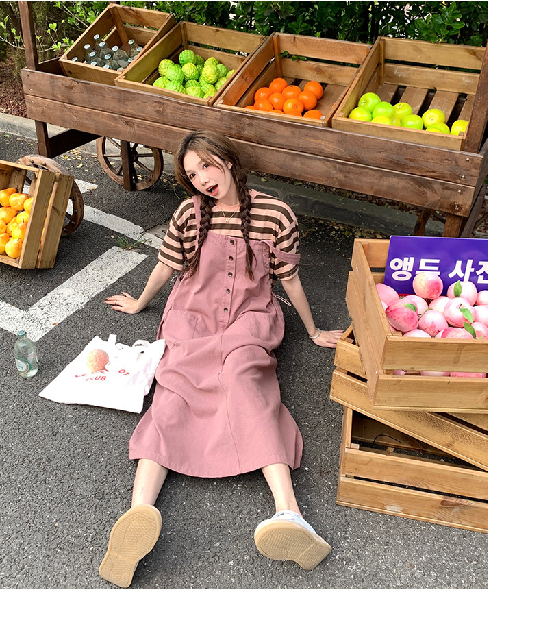 獨家訂製│韓系甜美感抽繩收腰單排釦吊帶裙(05H6387)