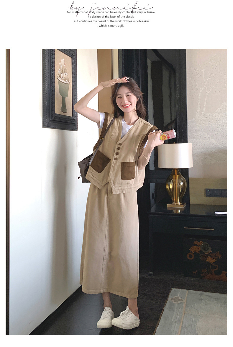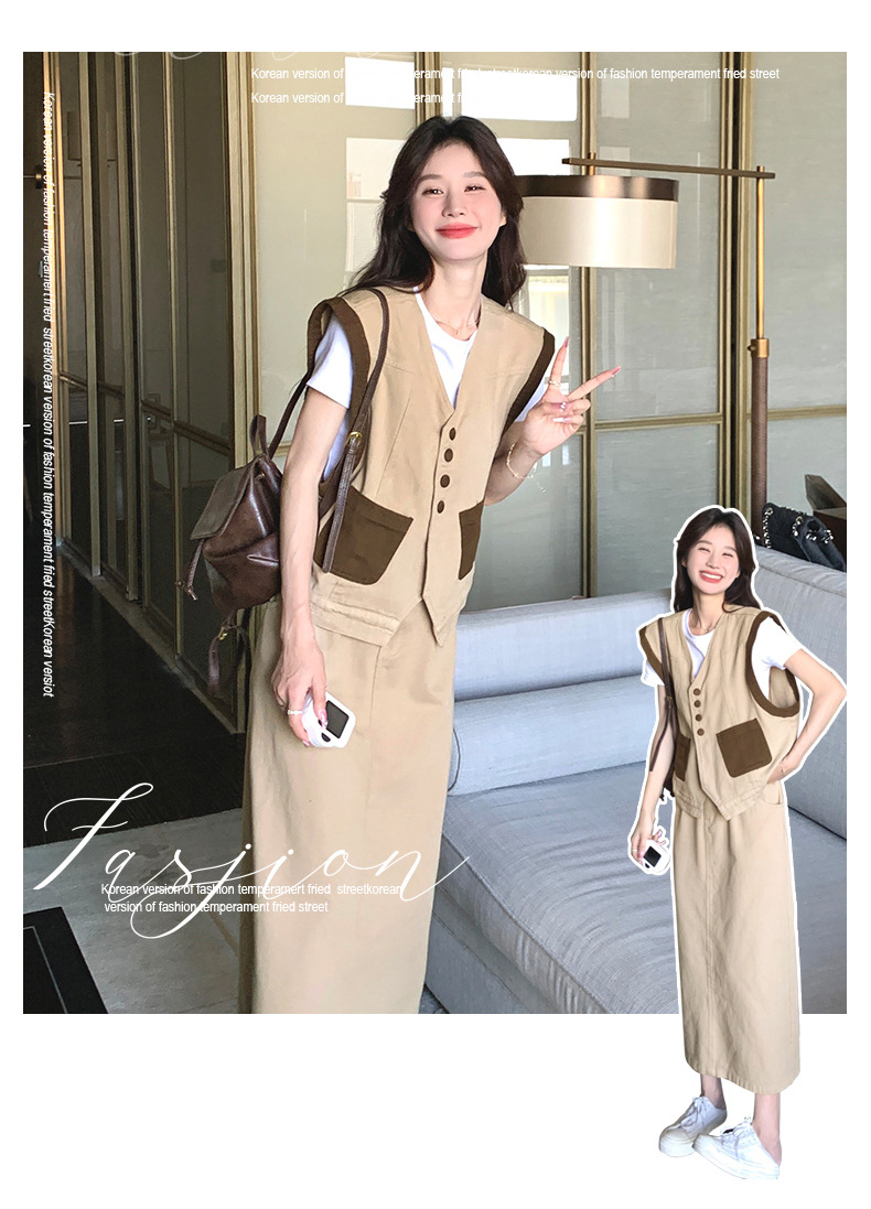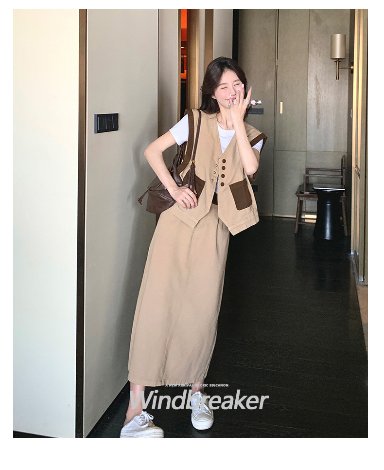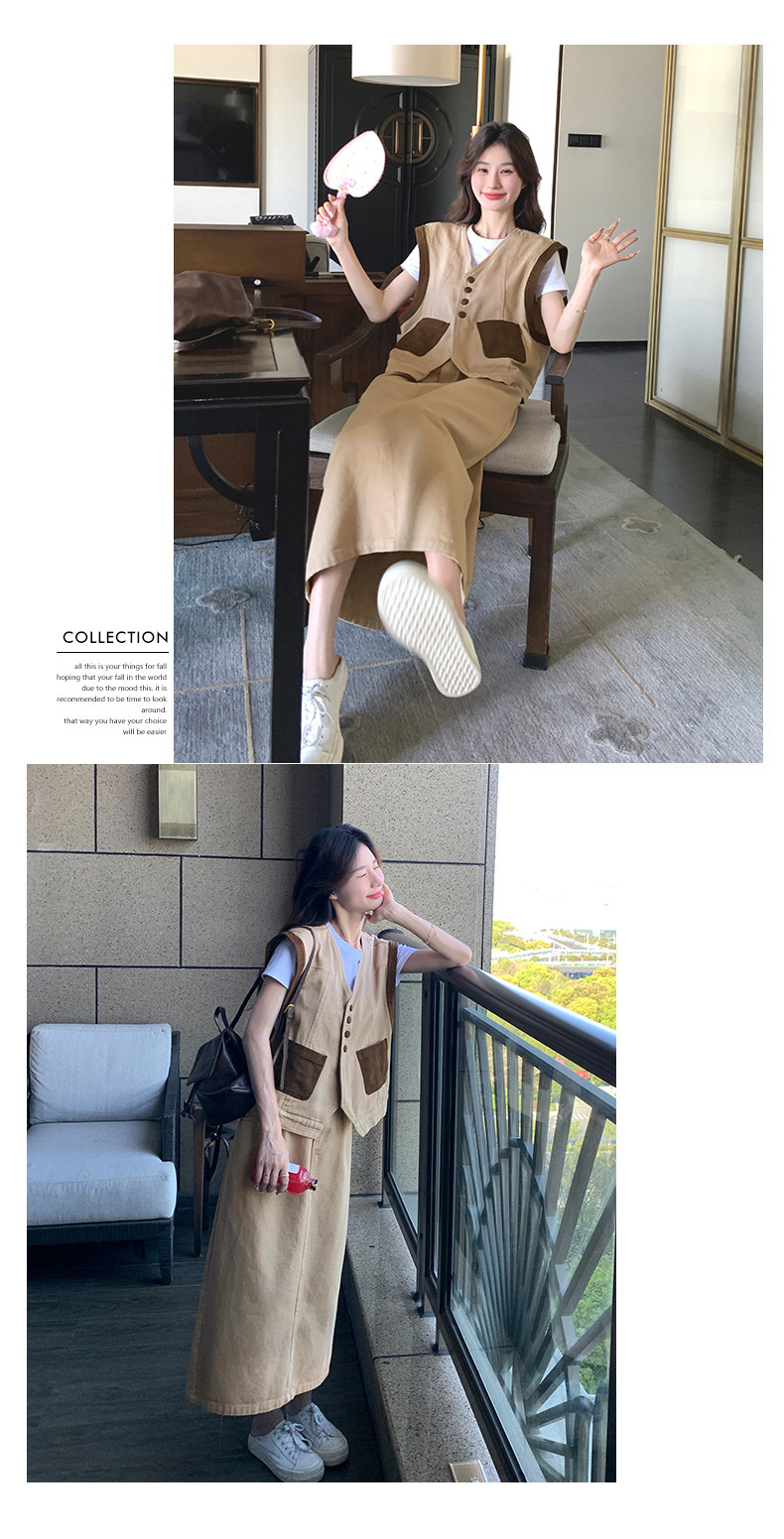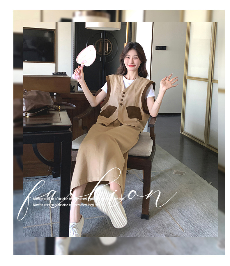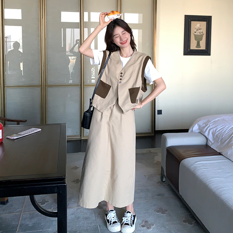 獨家訂製│韓系休閒感撞色背心+A字裙兩件式套裝組(05H6388)