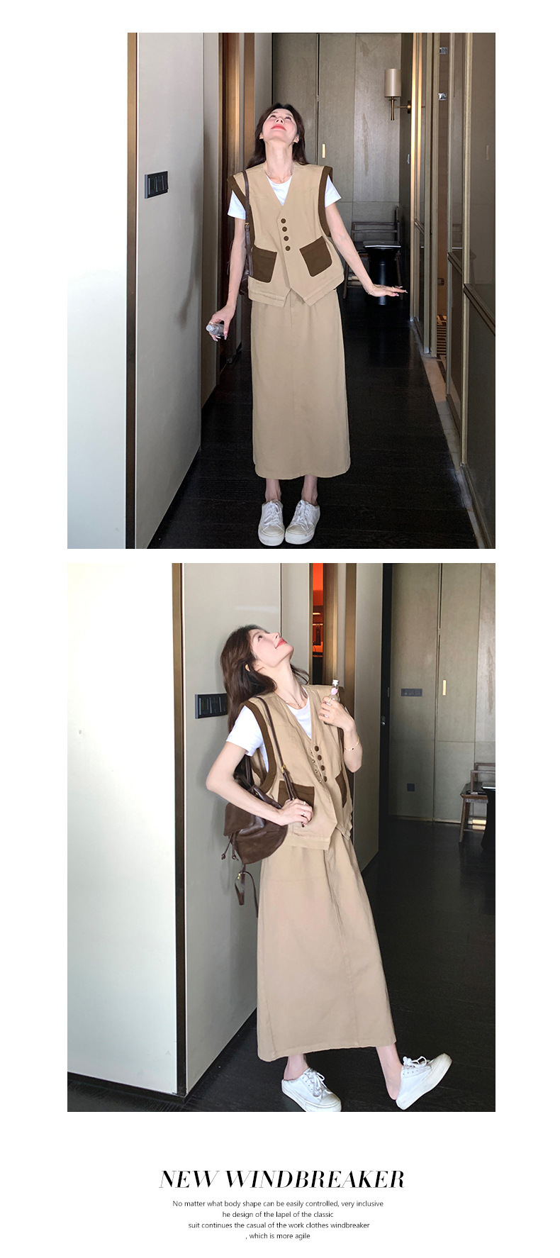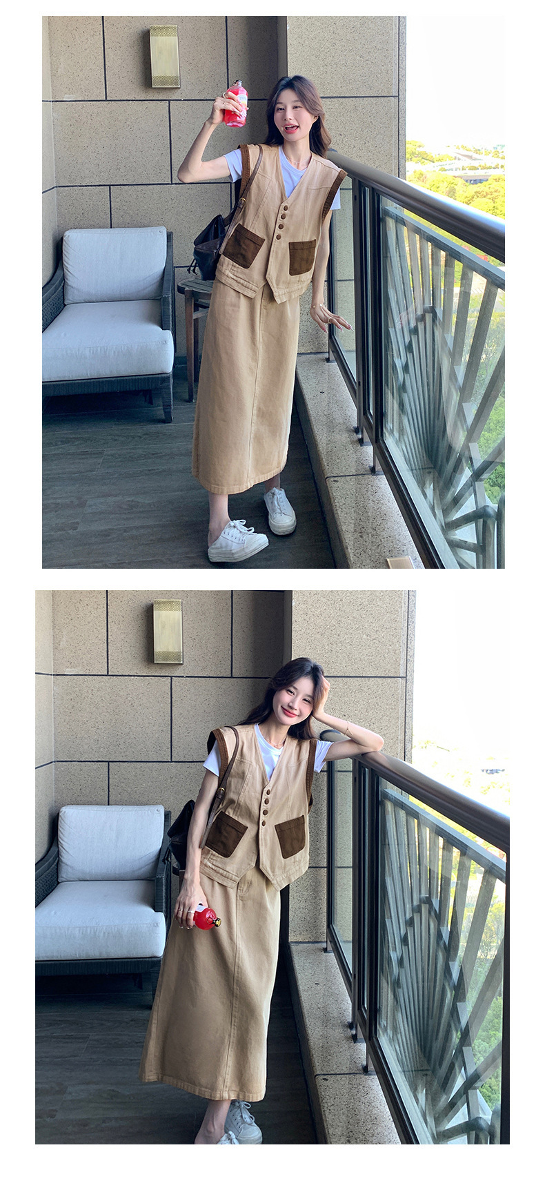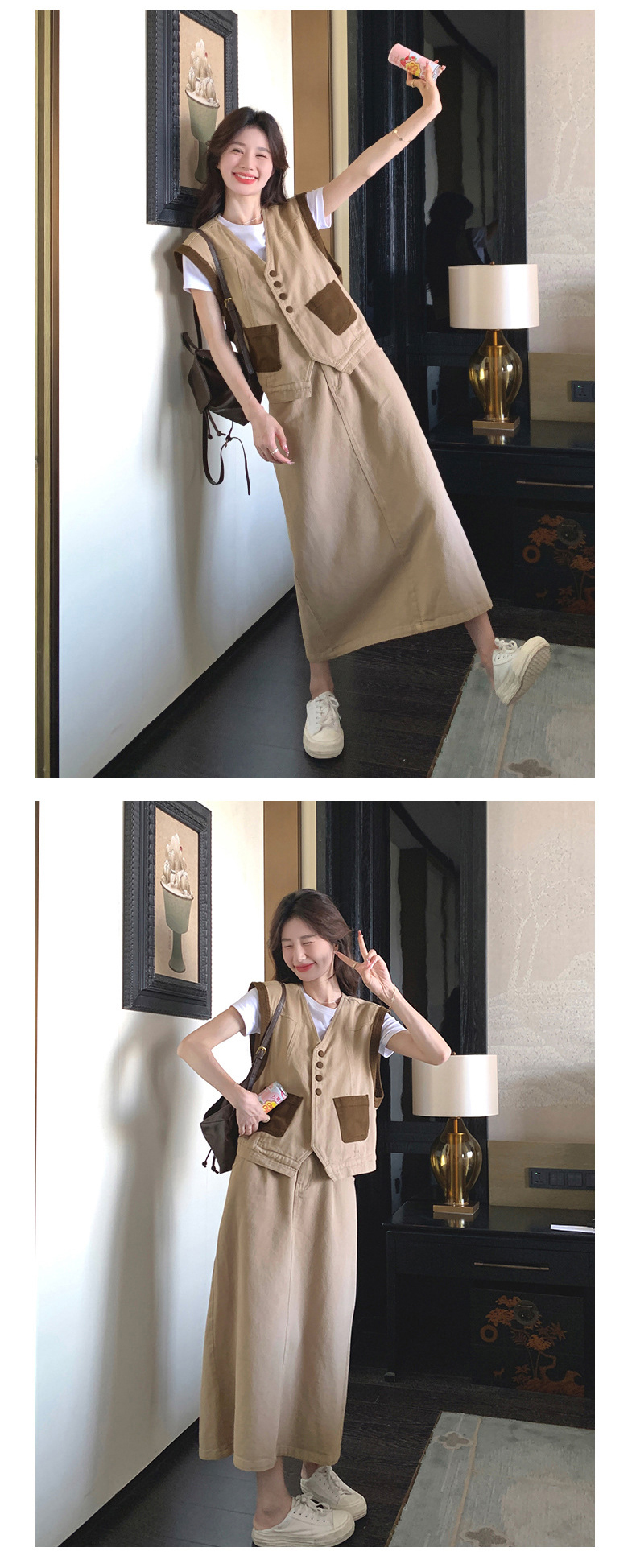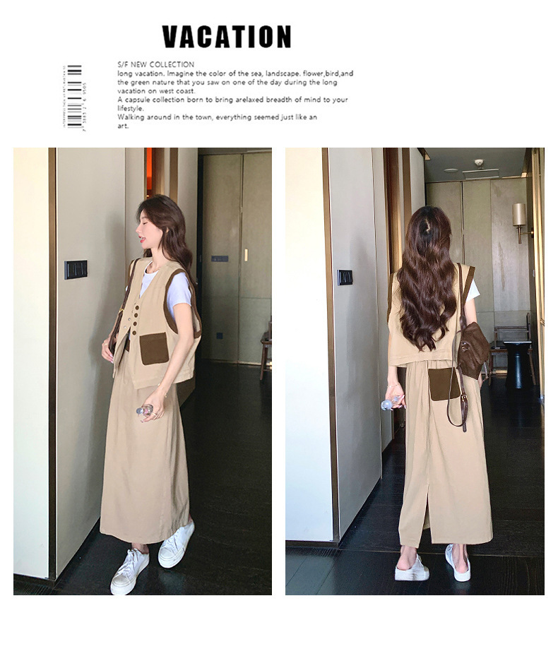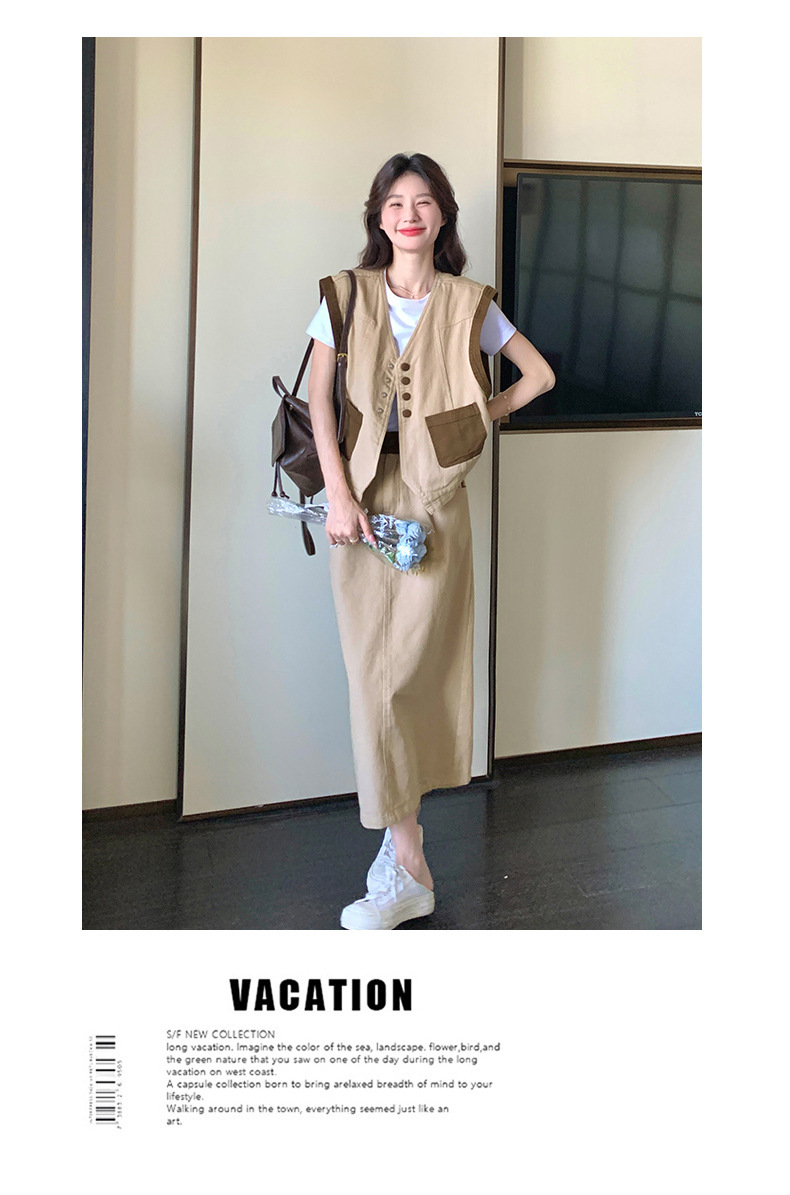 獨家訂製│韓系休閒感撞色背心+A字裙兩件式套裝組(05H6388)