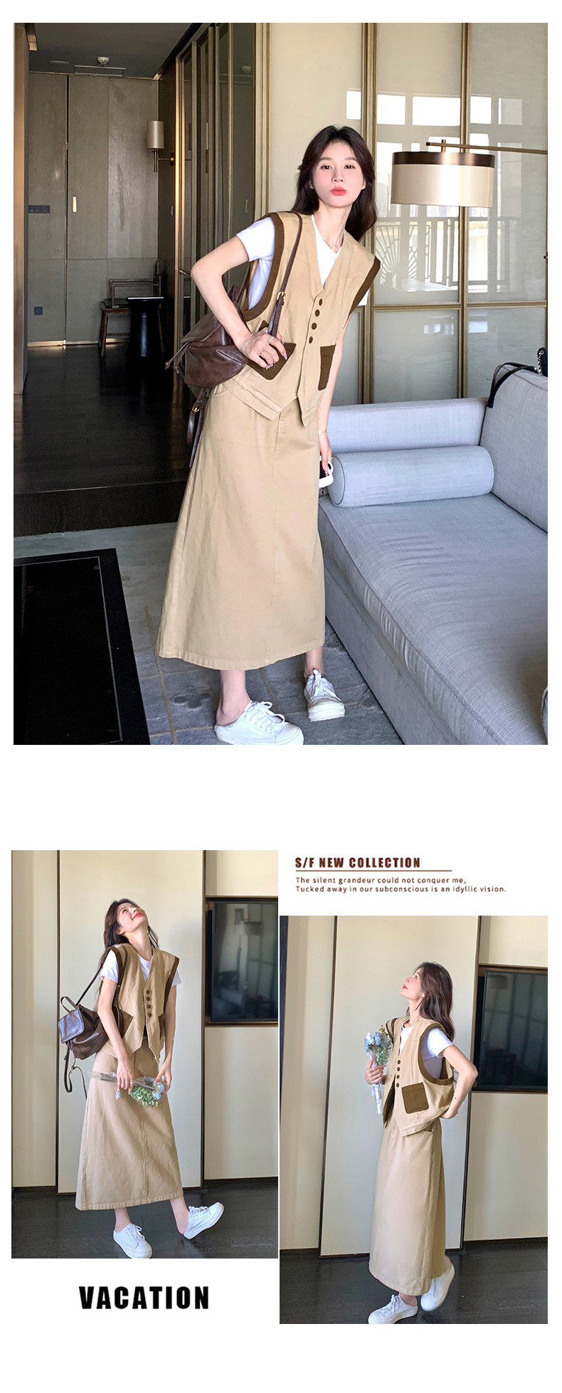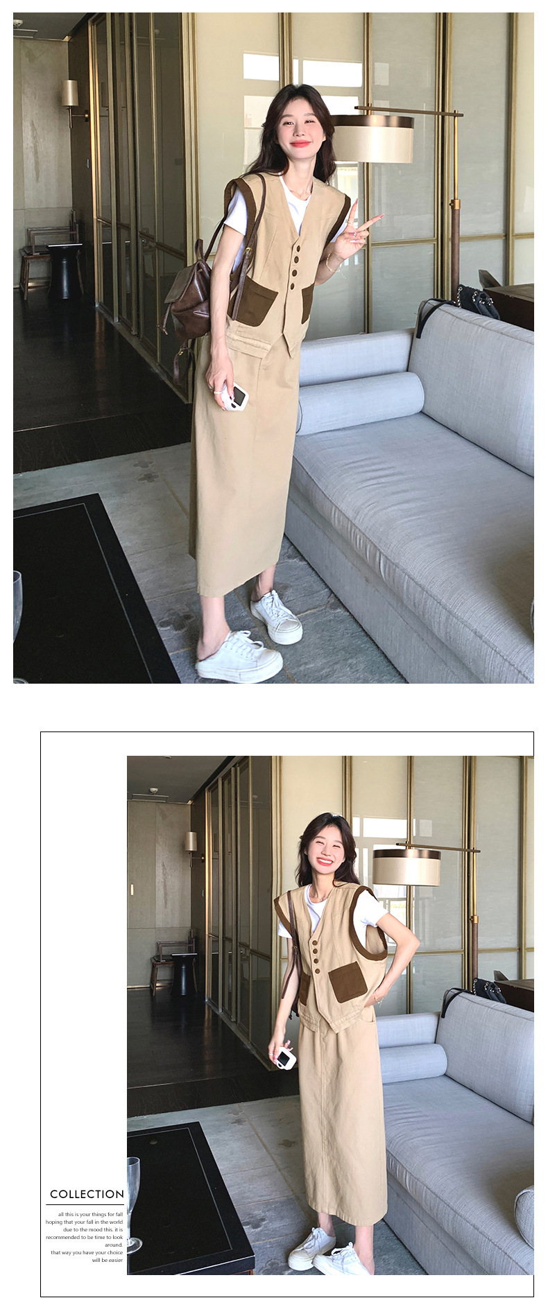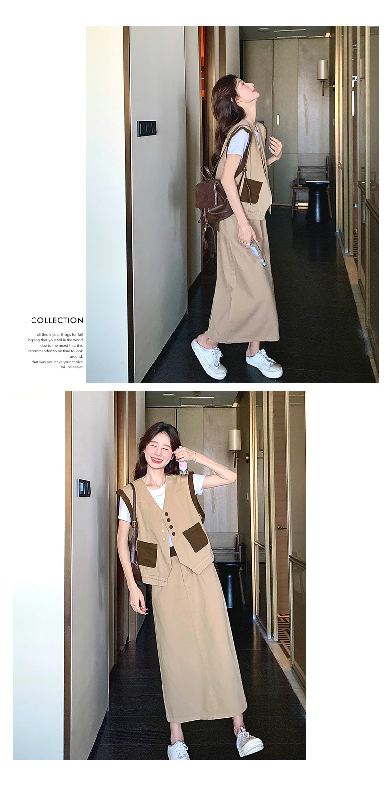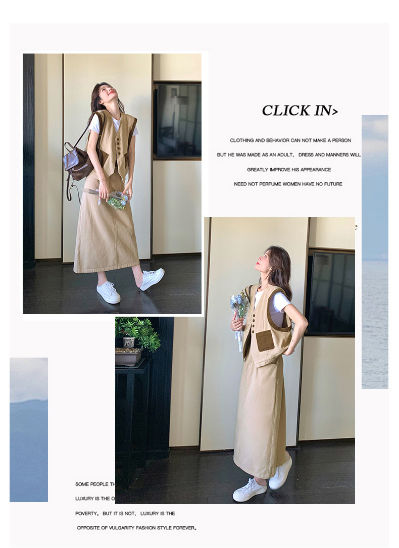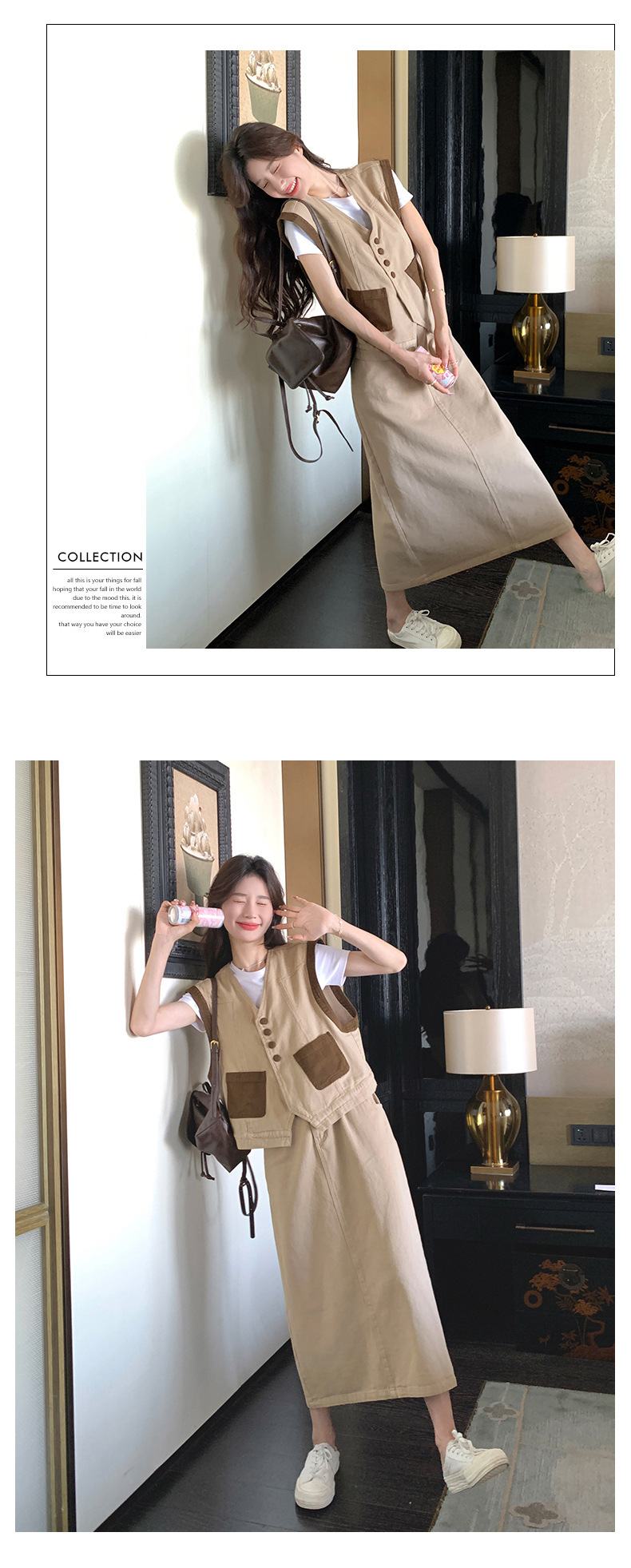 獨家訂製│韓系休閒感撞色背心+A字裙兩件式套裝組(05H6388)