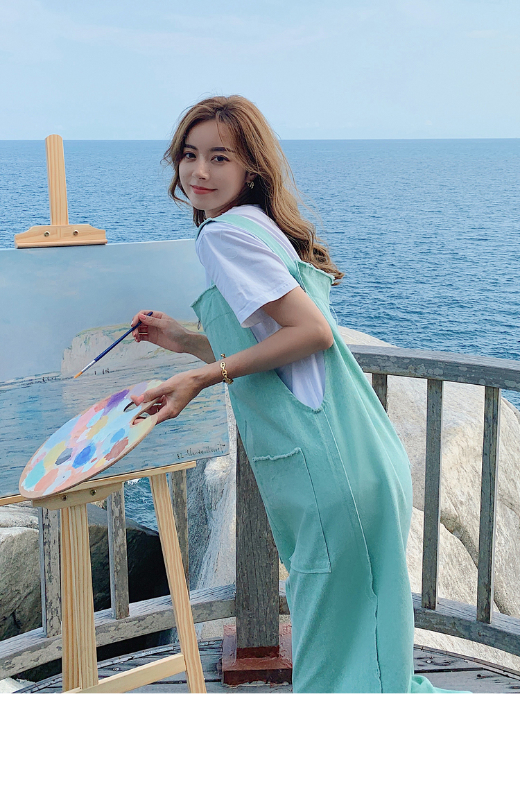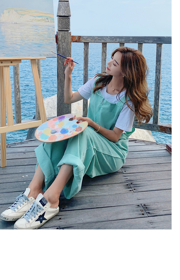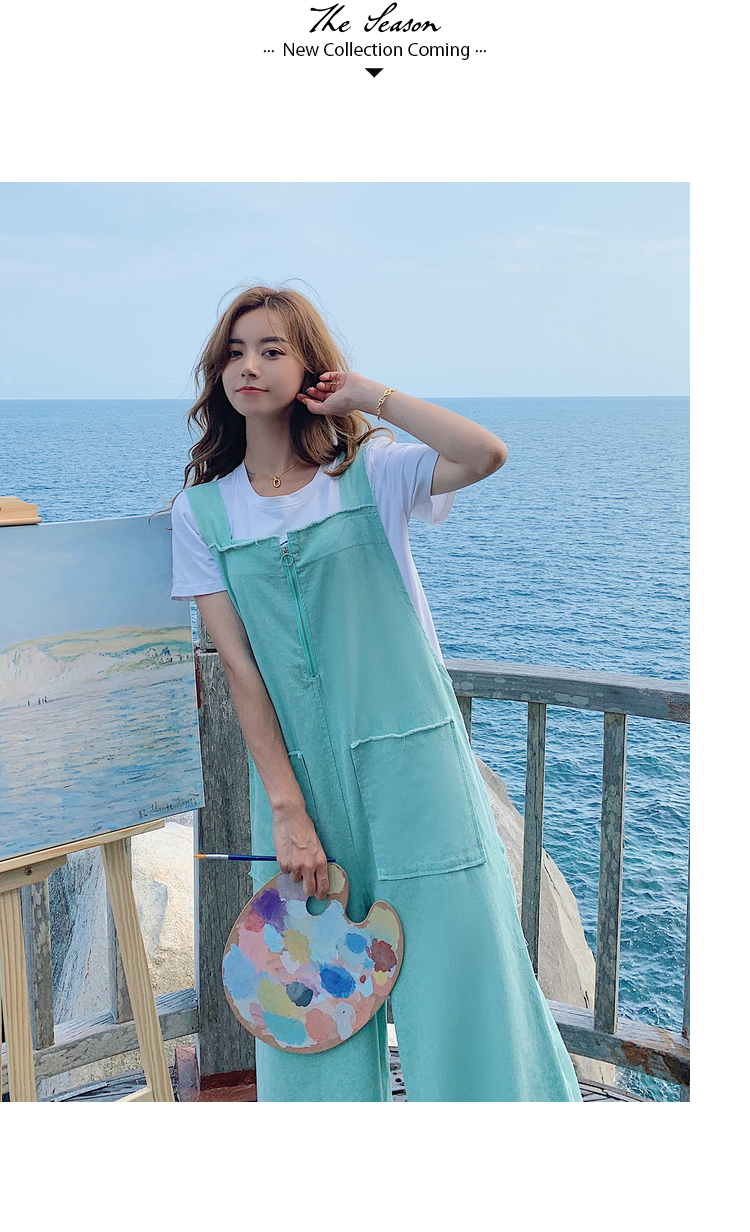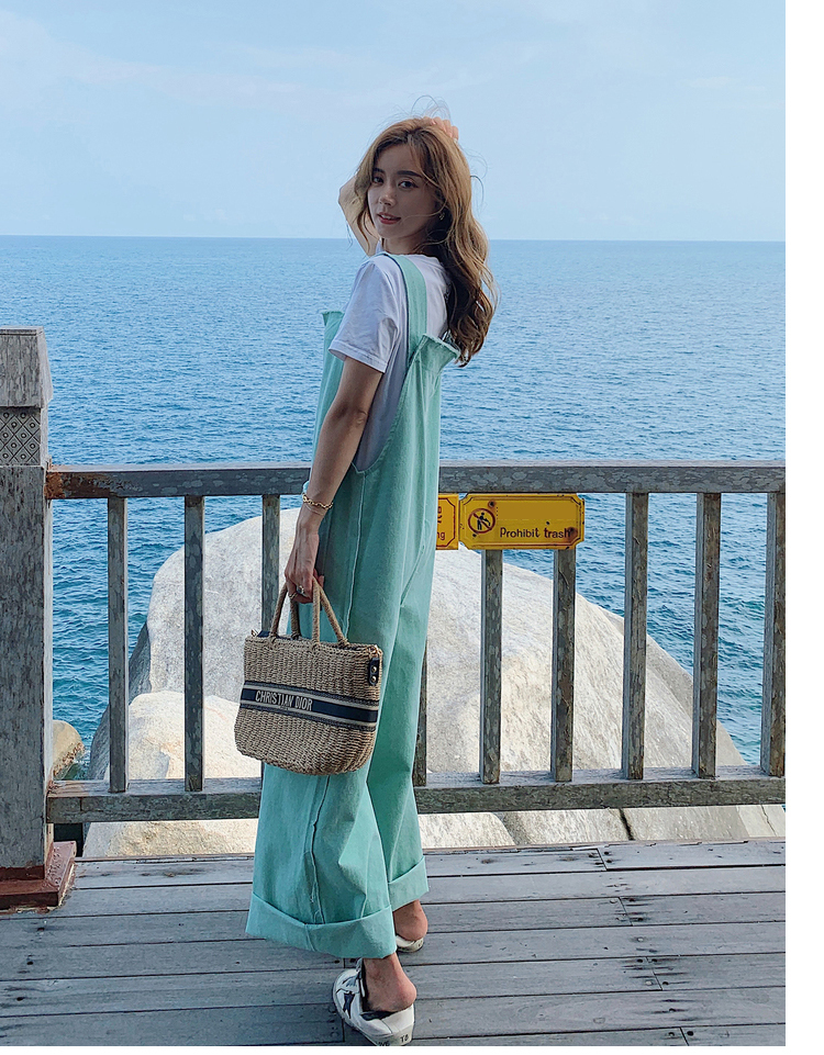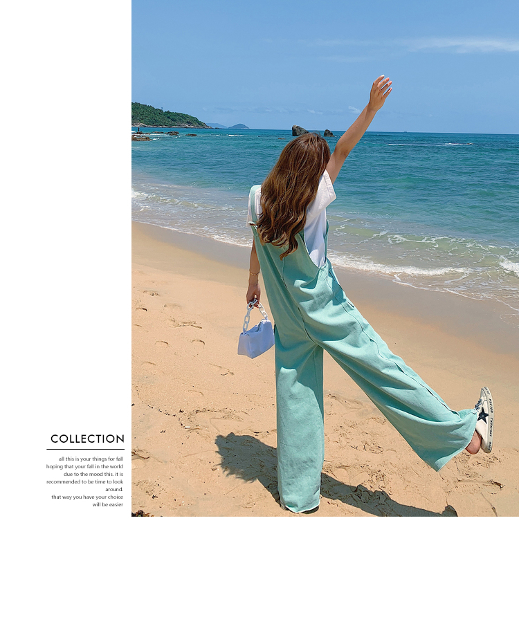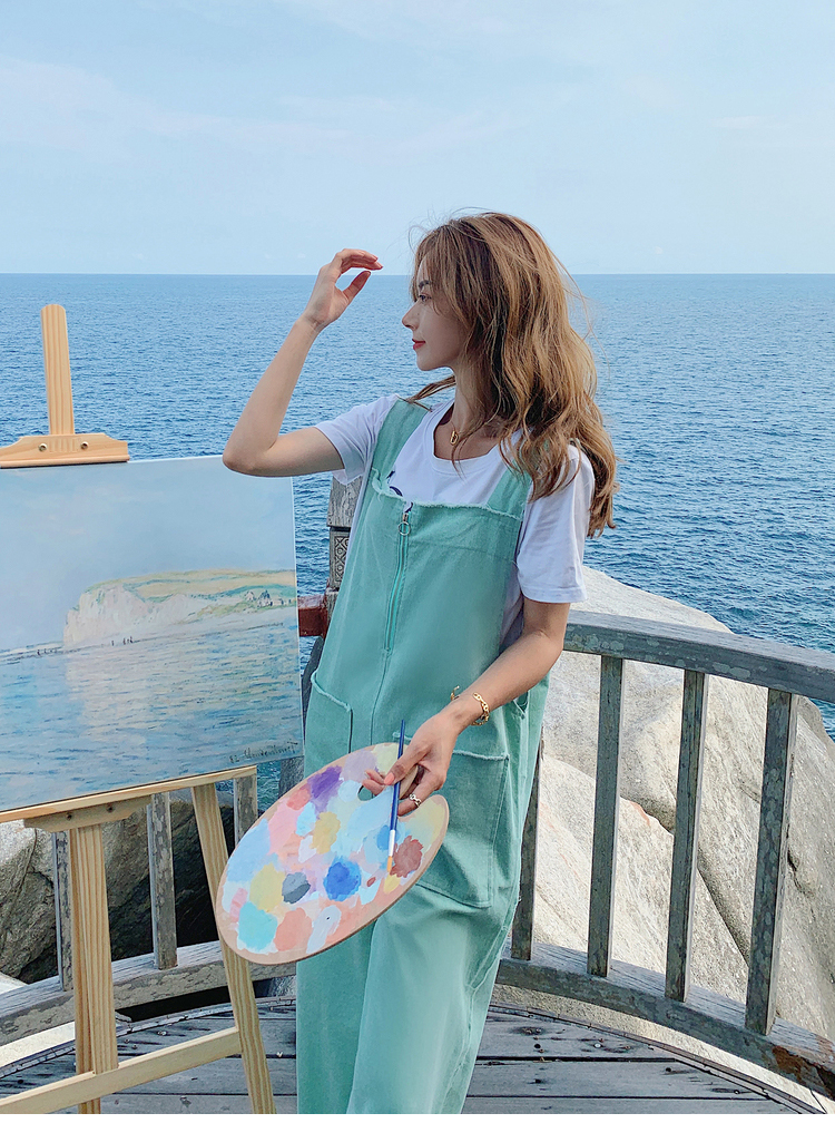 獨家訂製│俏皮舒適刷毛邊拉鍊造型工裝闊腿吊帶褲(05H6402)