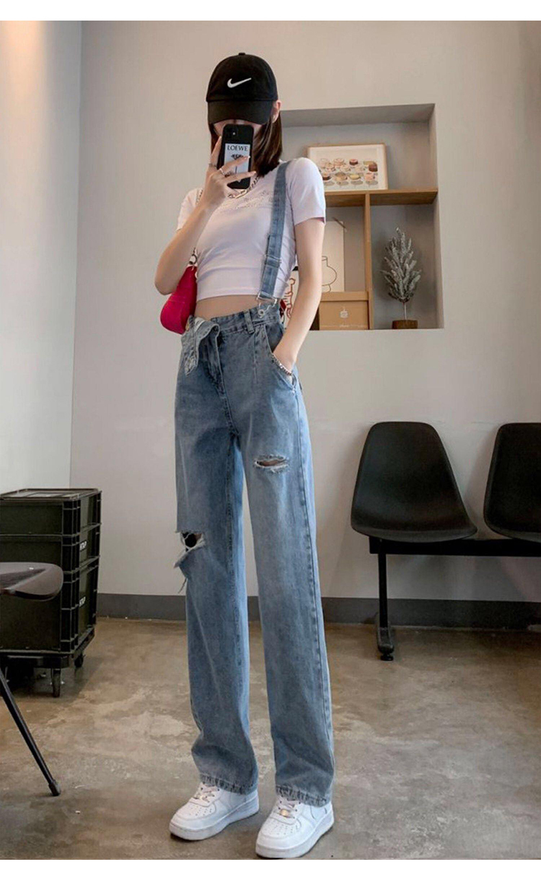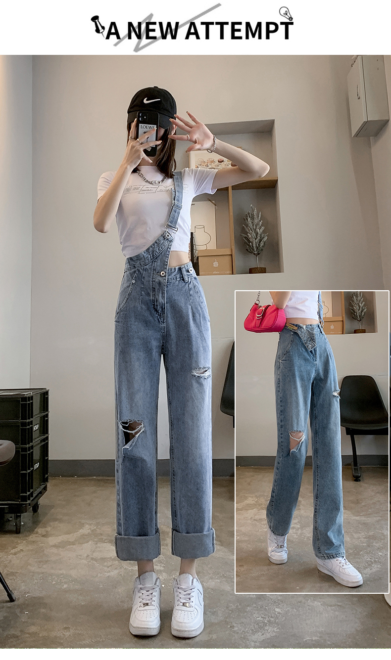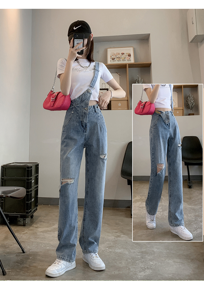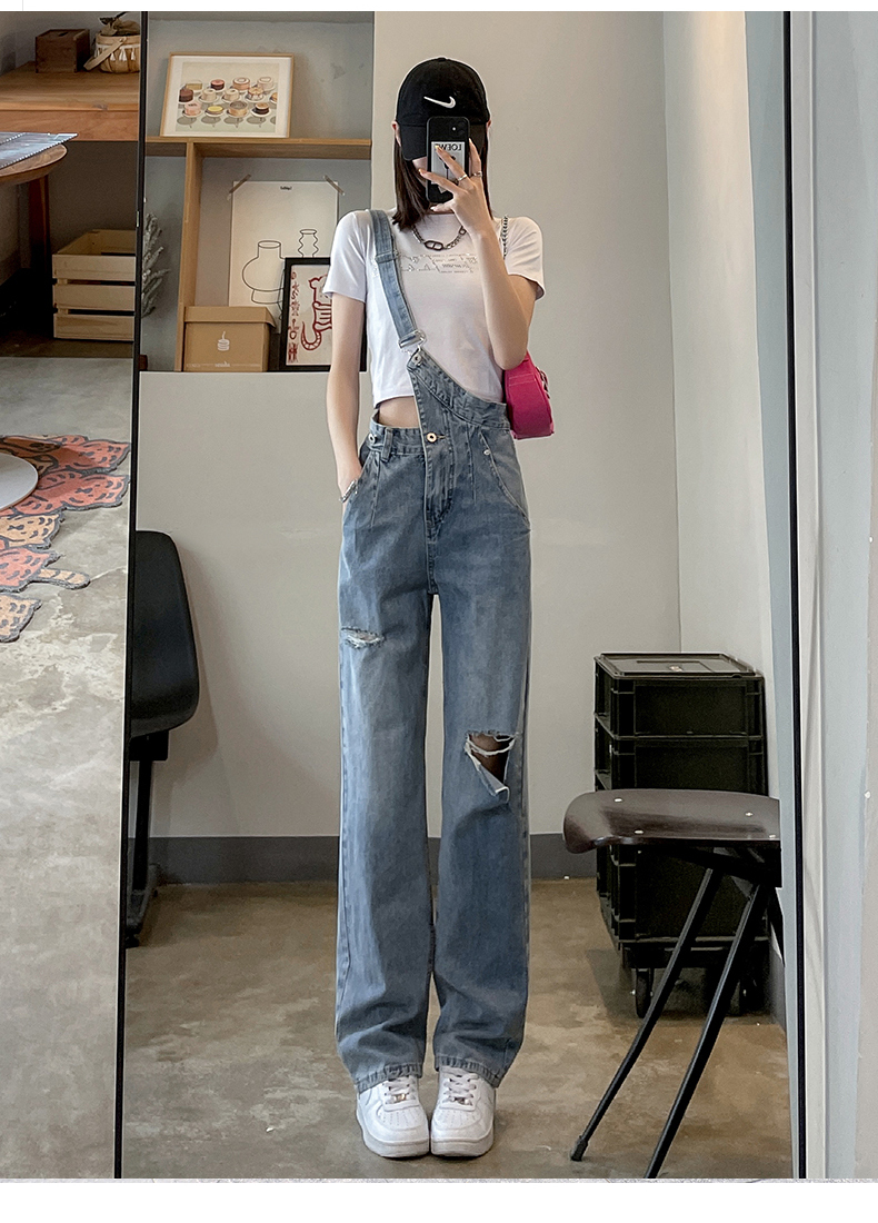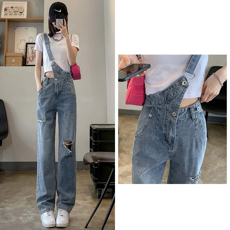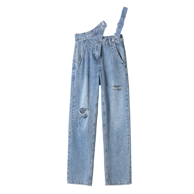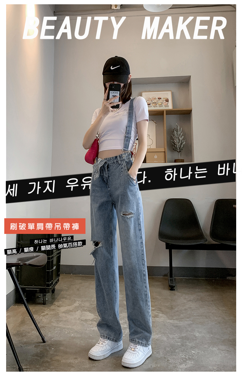 限量特惠|個性舒適破洞造型垂感單肩帶牛仔吊帶寬褲(05M05265)