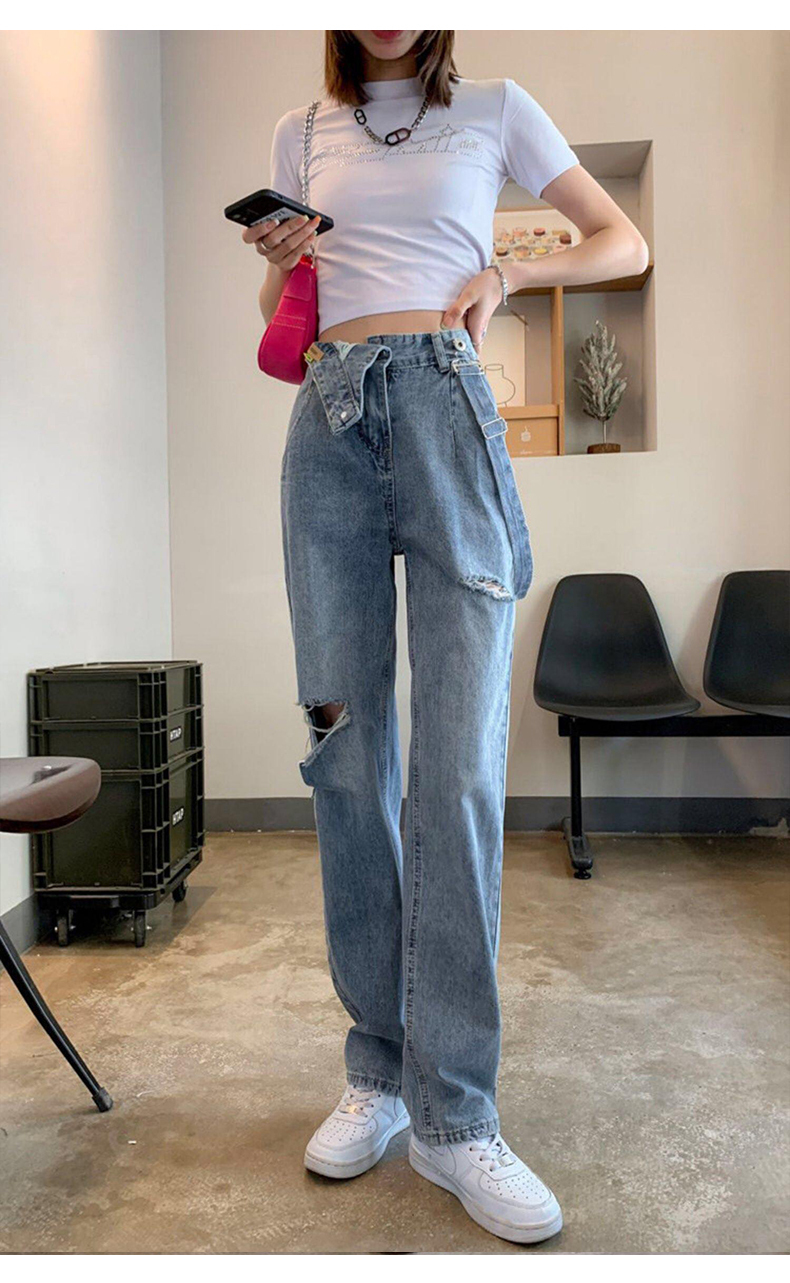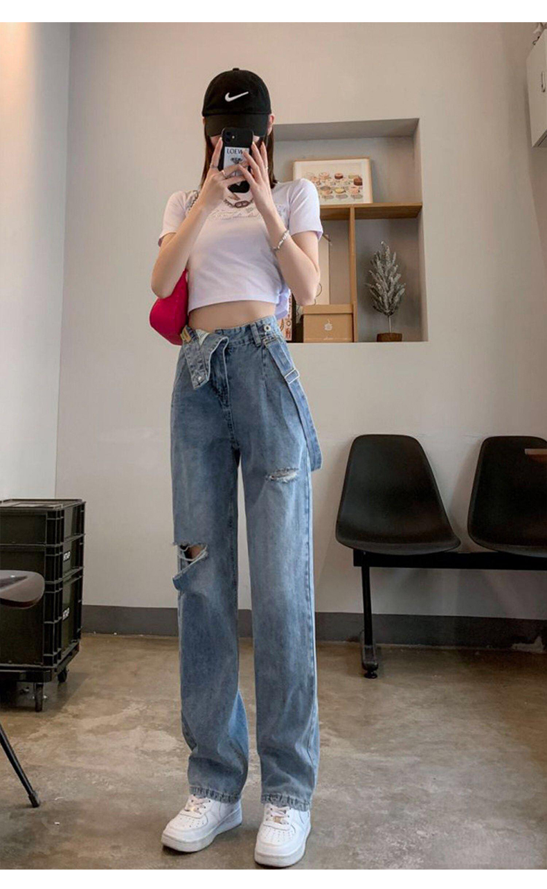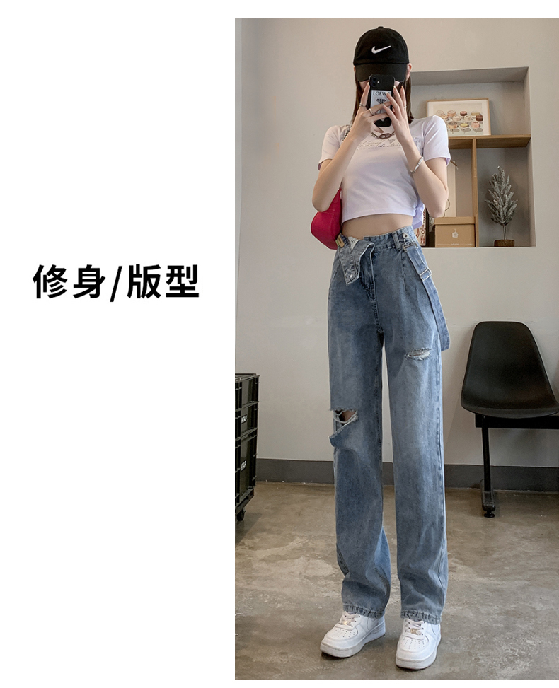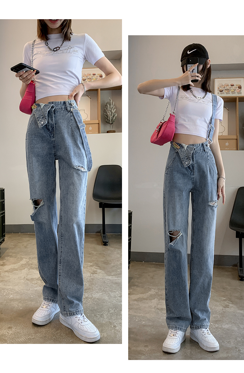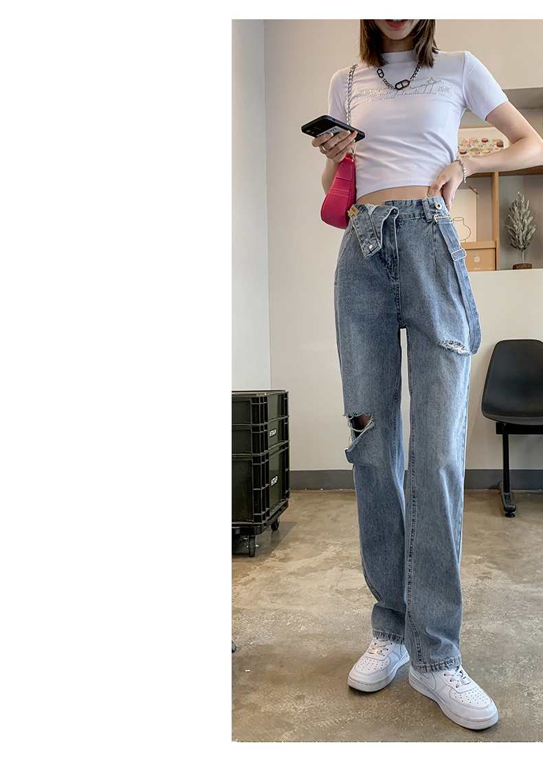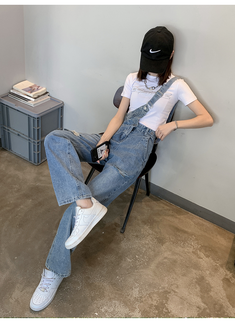 限量特惠|個性舒適破洞造型垂感單肩帶牛仔吊帶寬褲(05M05265)