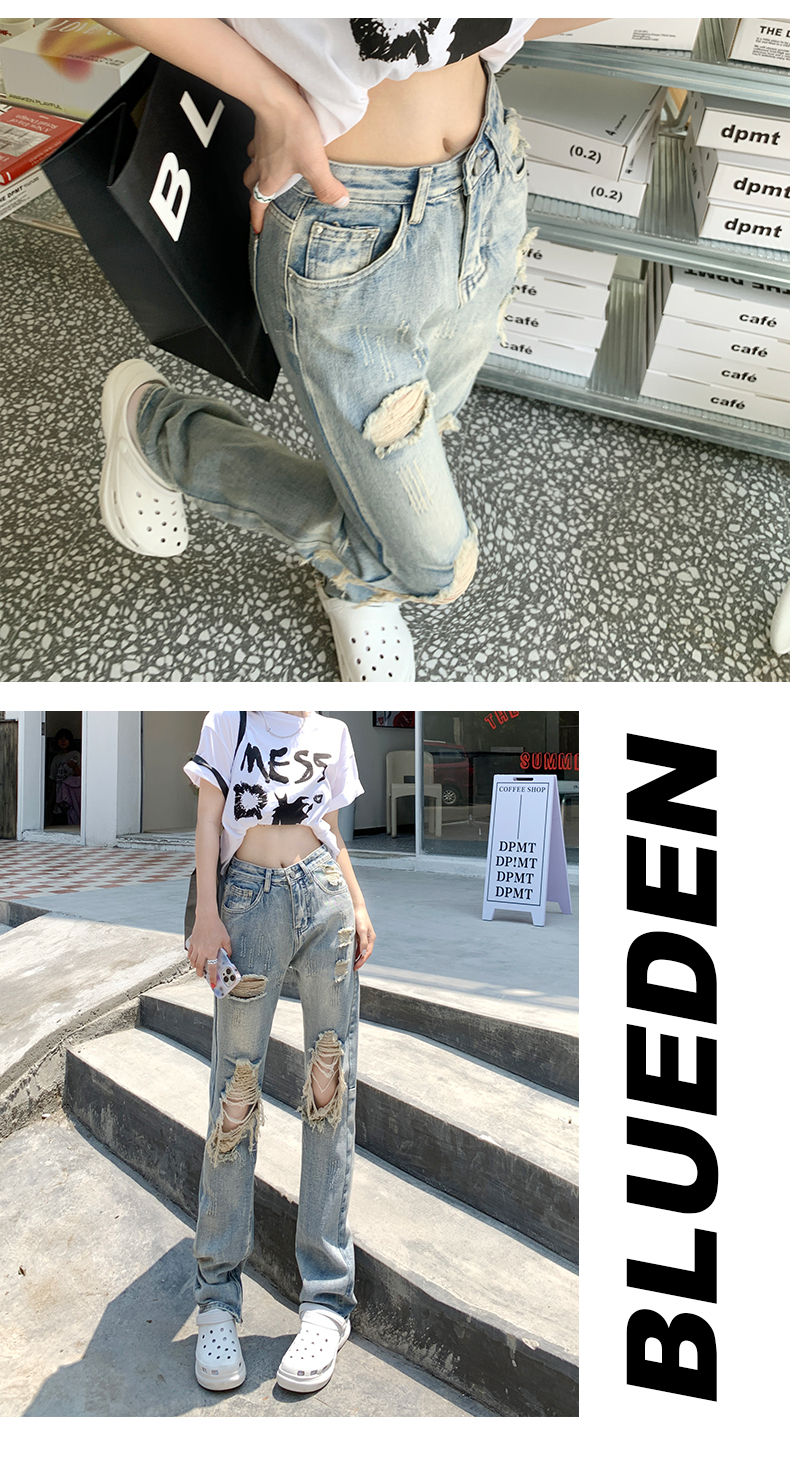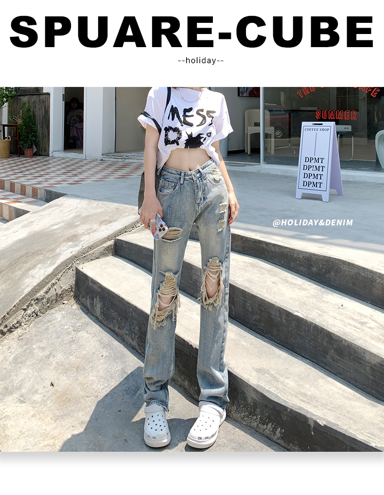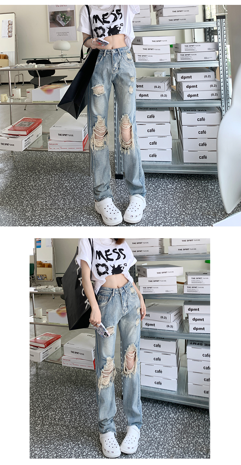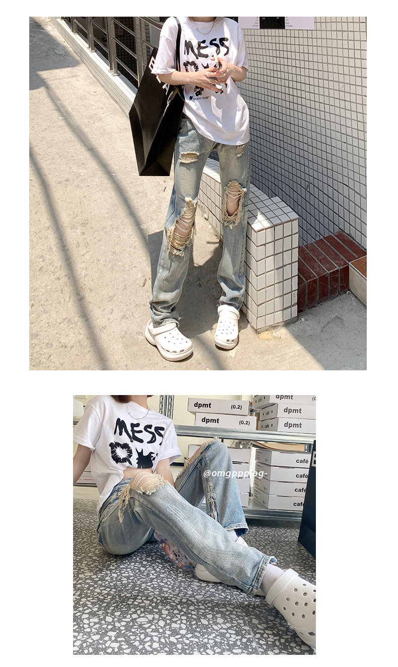 限量特惠|率性百搭破洞造型做舊牛仔寬褲(05M05281)
