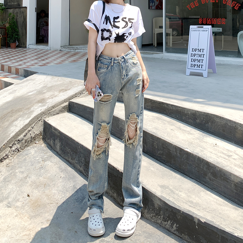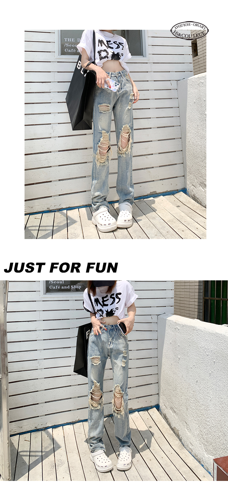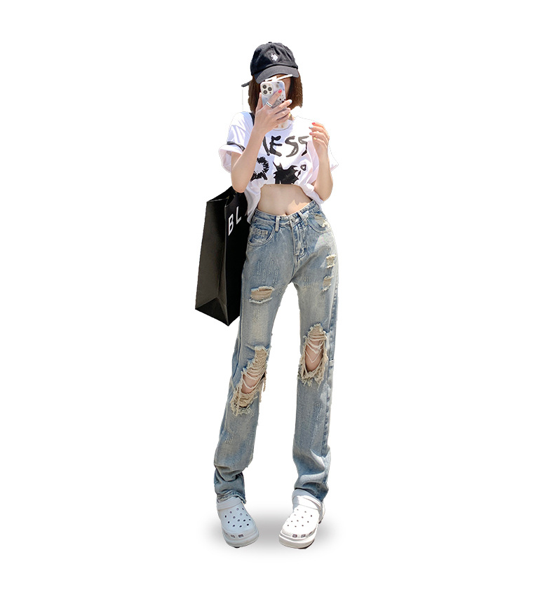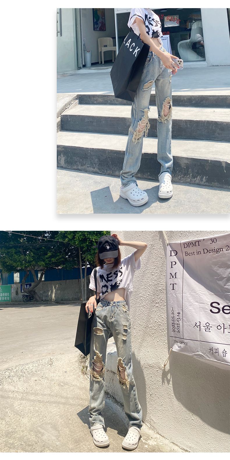 限量特惠|率性百搭破洞造型做舊牛仔寬褲(05M05281)