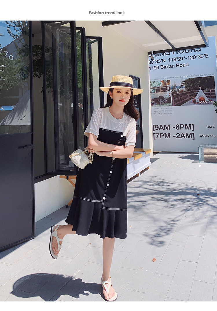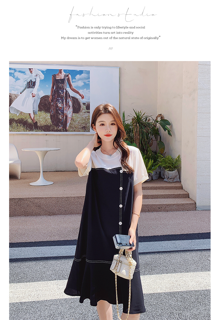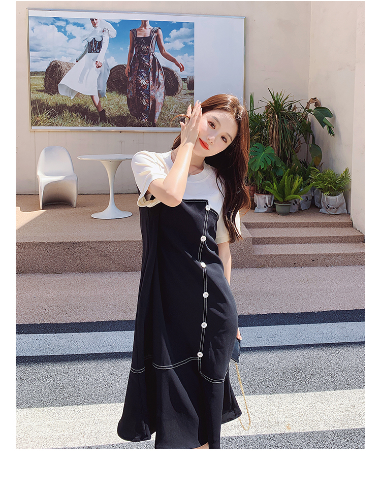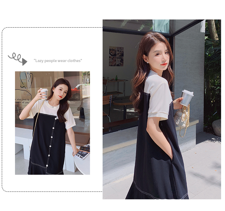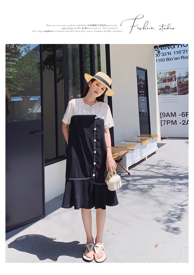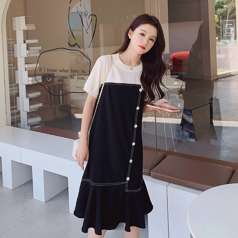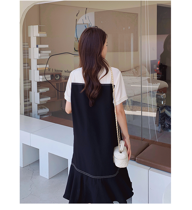 獨家訂製│韓系甜美感撞色拼接單排釦魚尾連衣裙(06H3933)