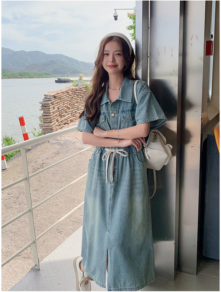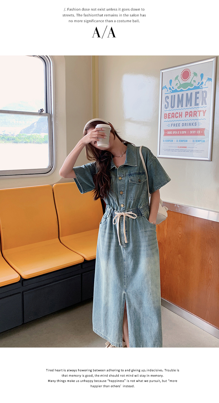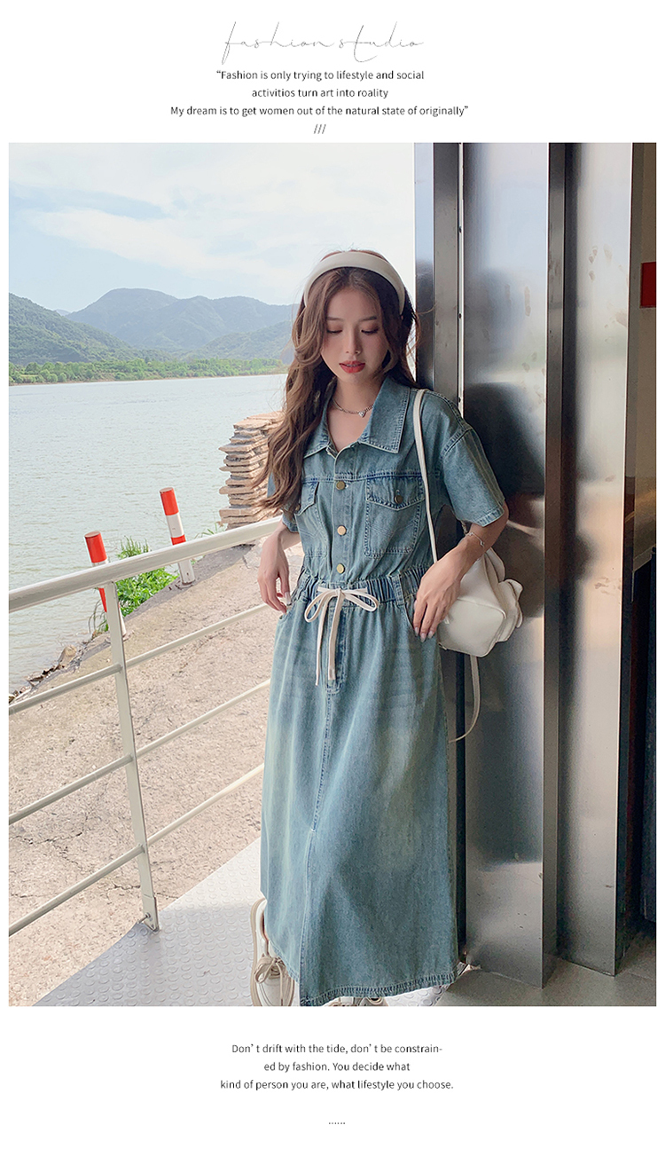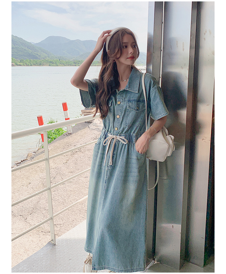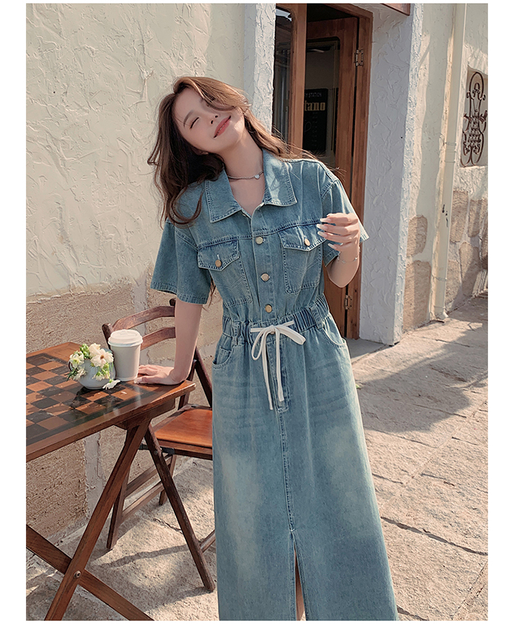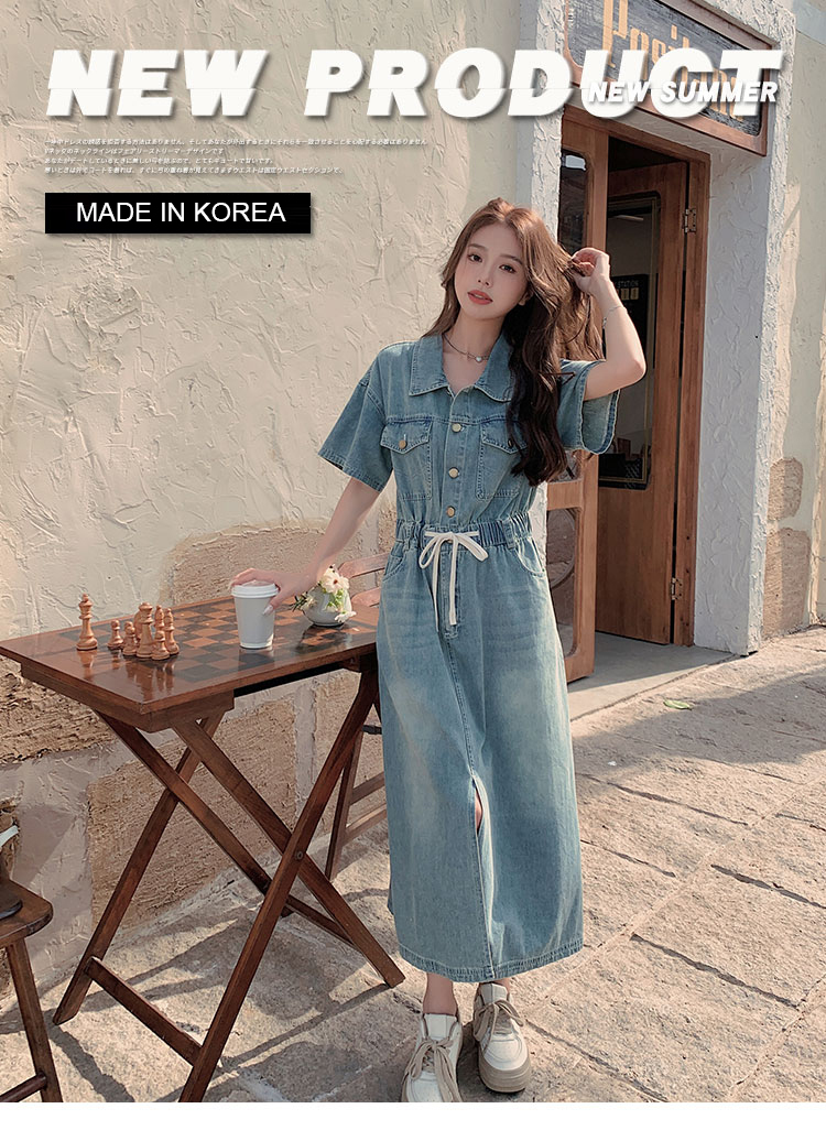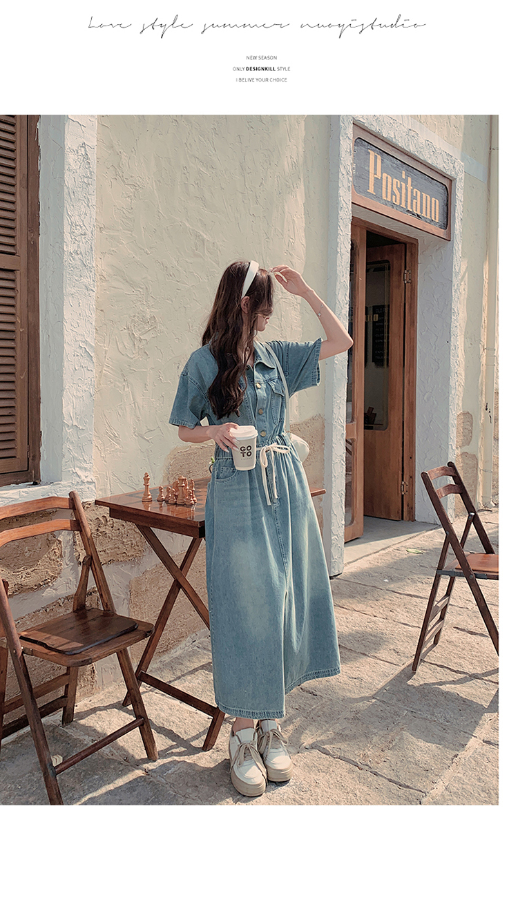 獨家訂製│韓系甜酷風抽繩收腰牛仔連衣裙(06H4002)