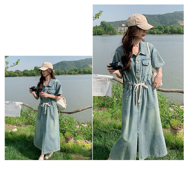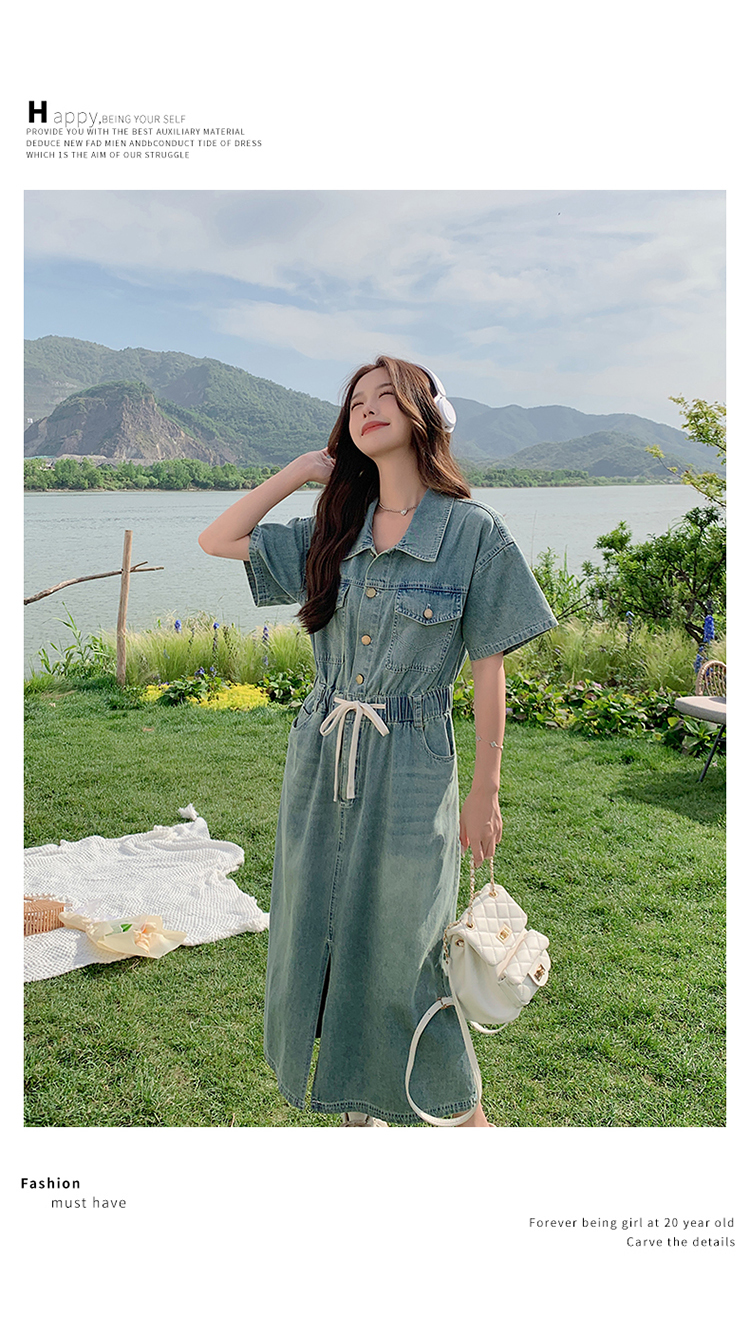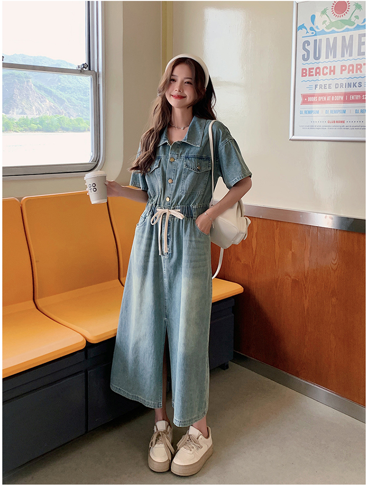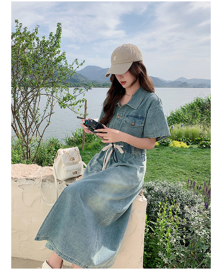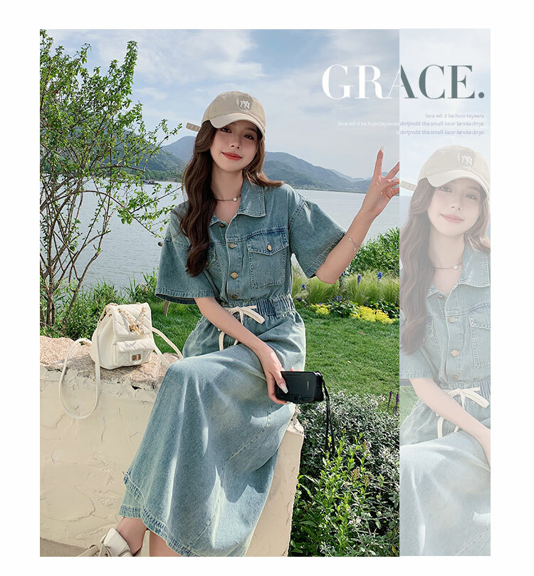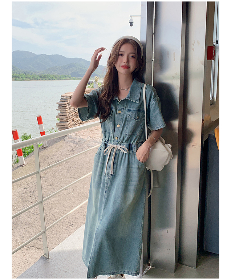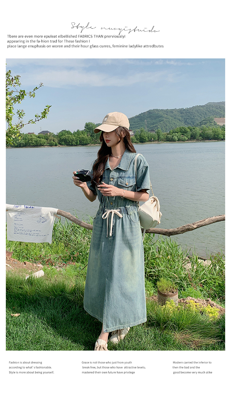 獨家訂製│韓系甜酷風抽繩收腰牛仔連衣裙(06H4002)
