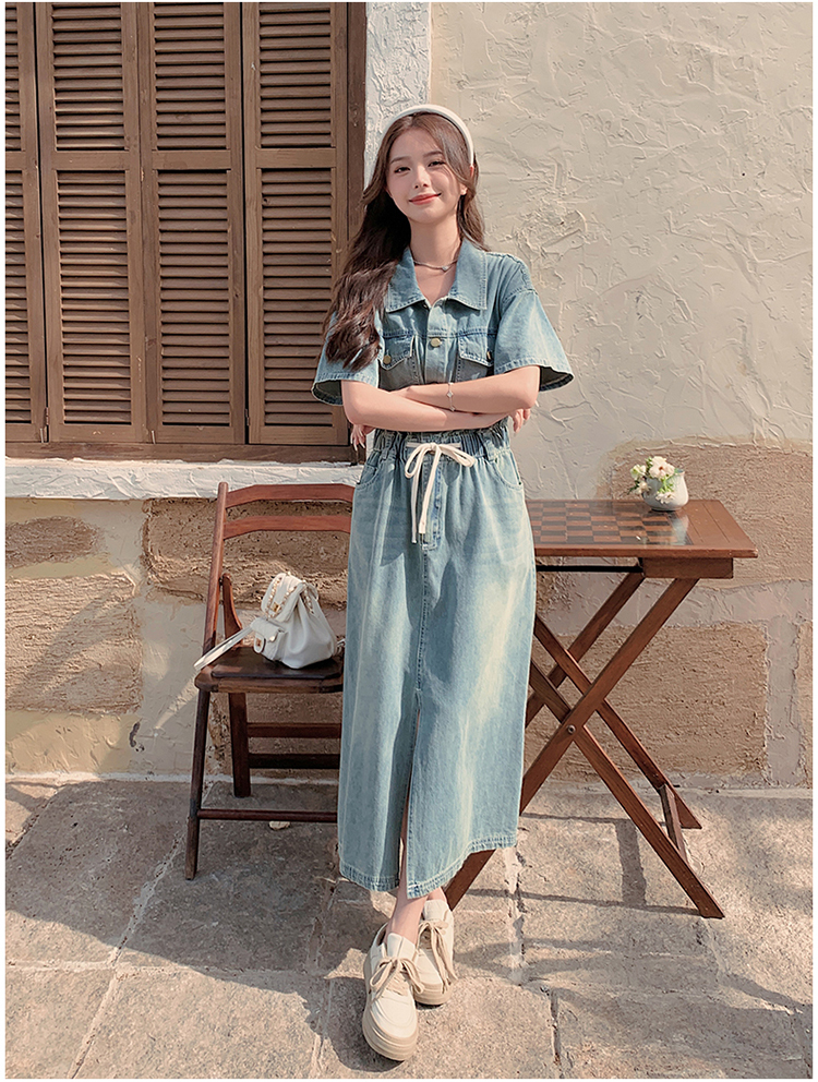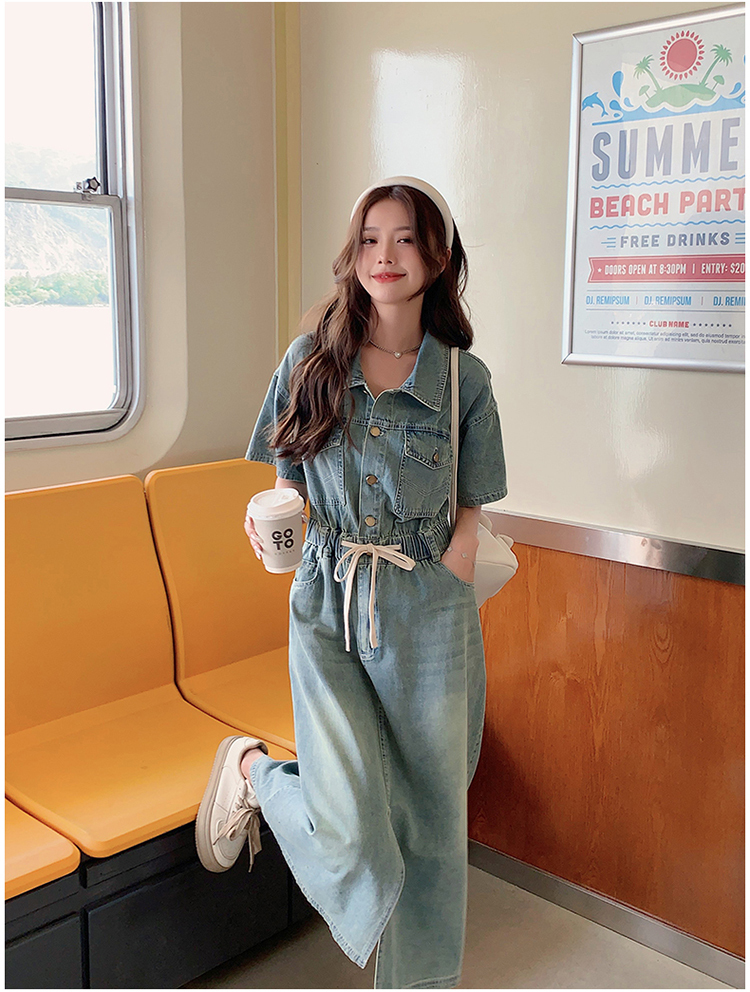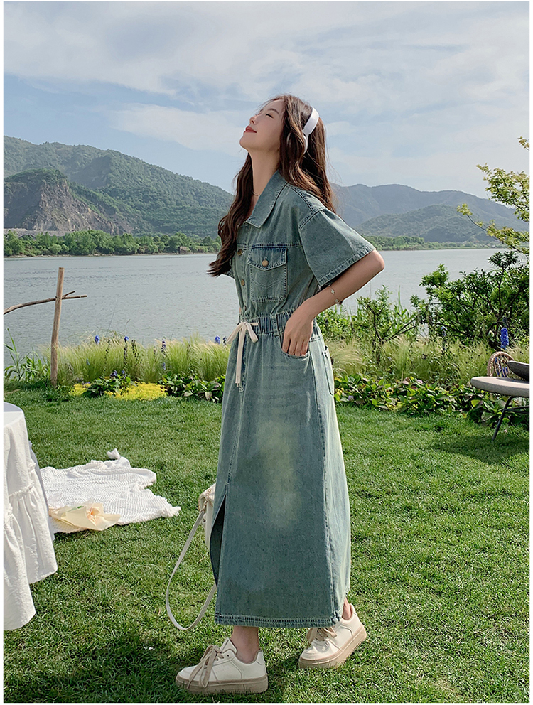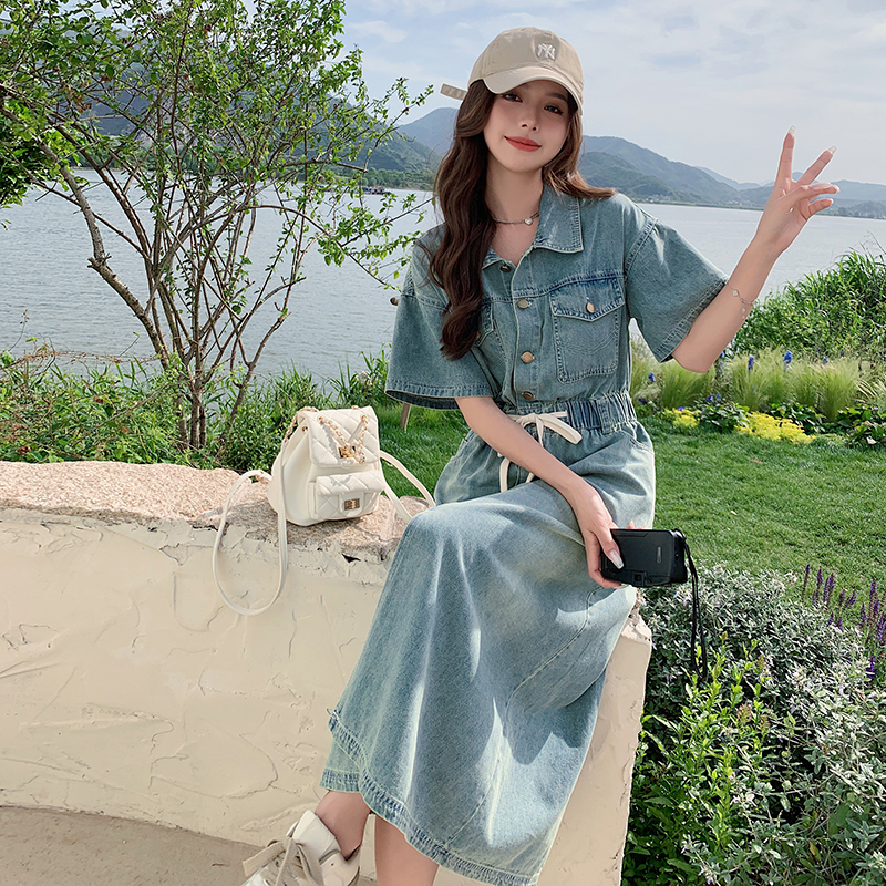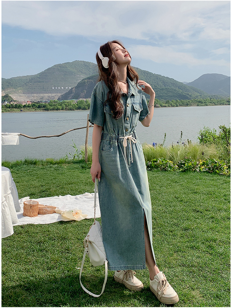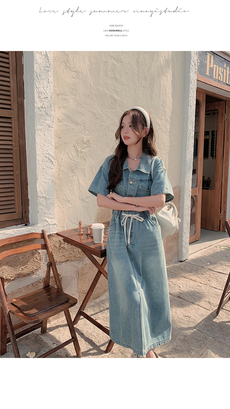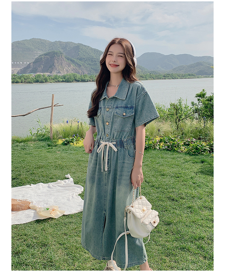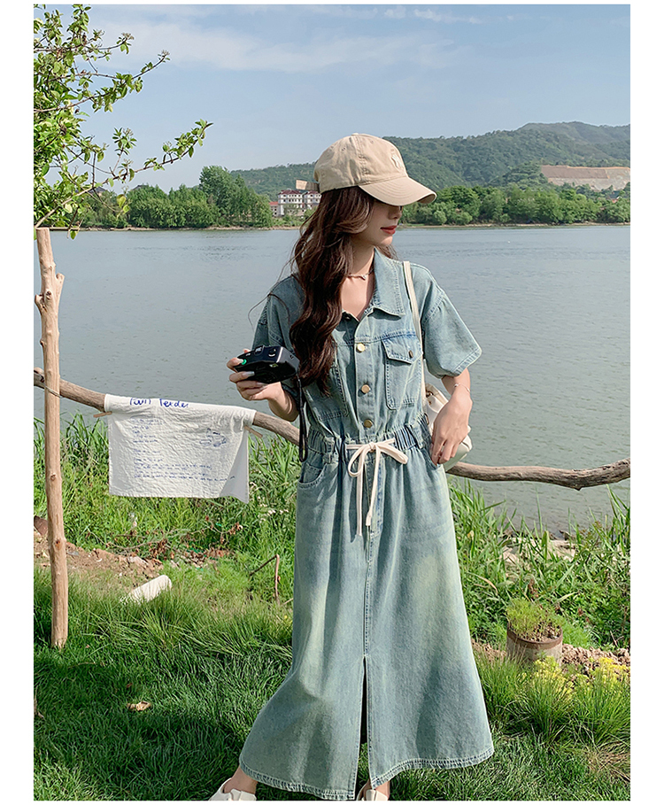 獨家訂製│韓系甜酷風抽繩收腰牛仔連衣裙(06H4002)