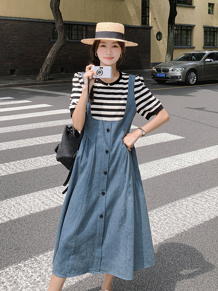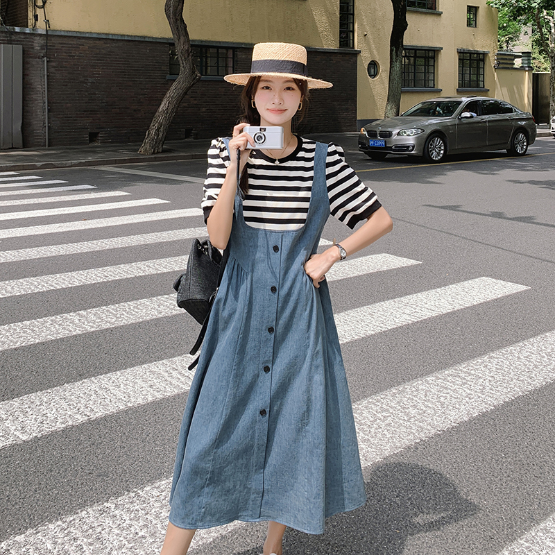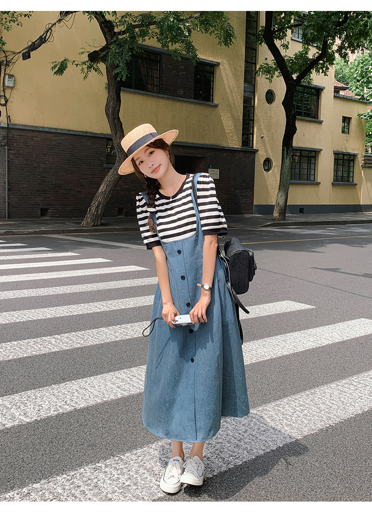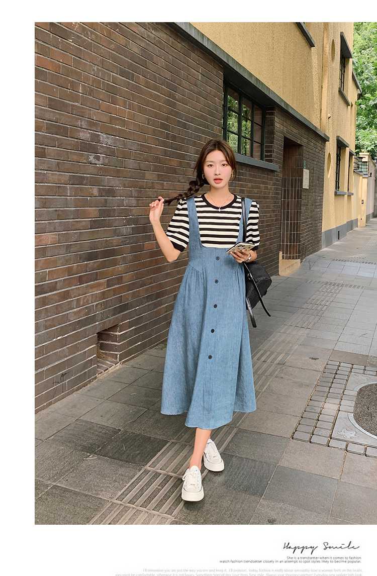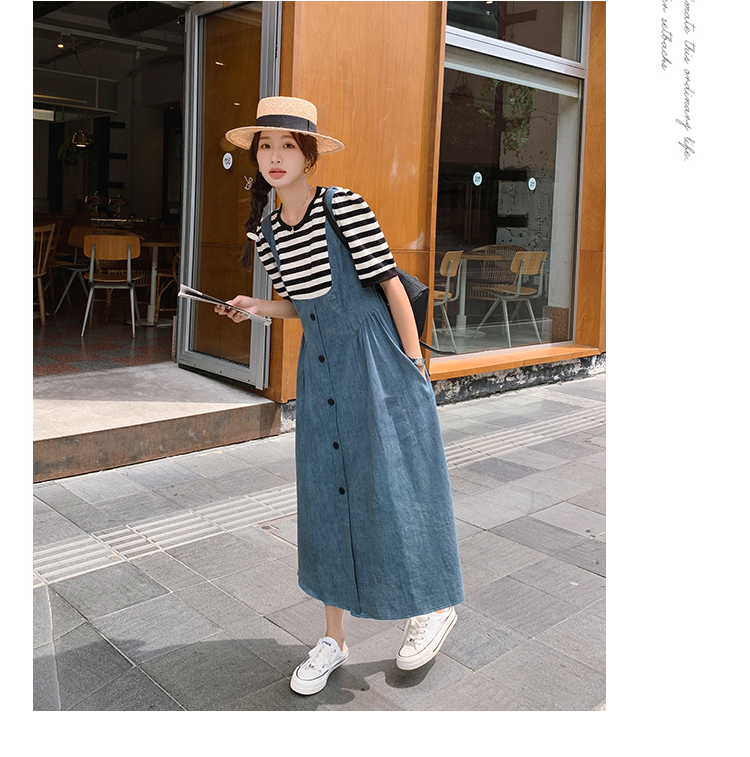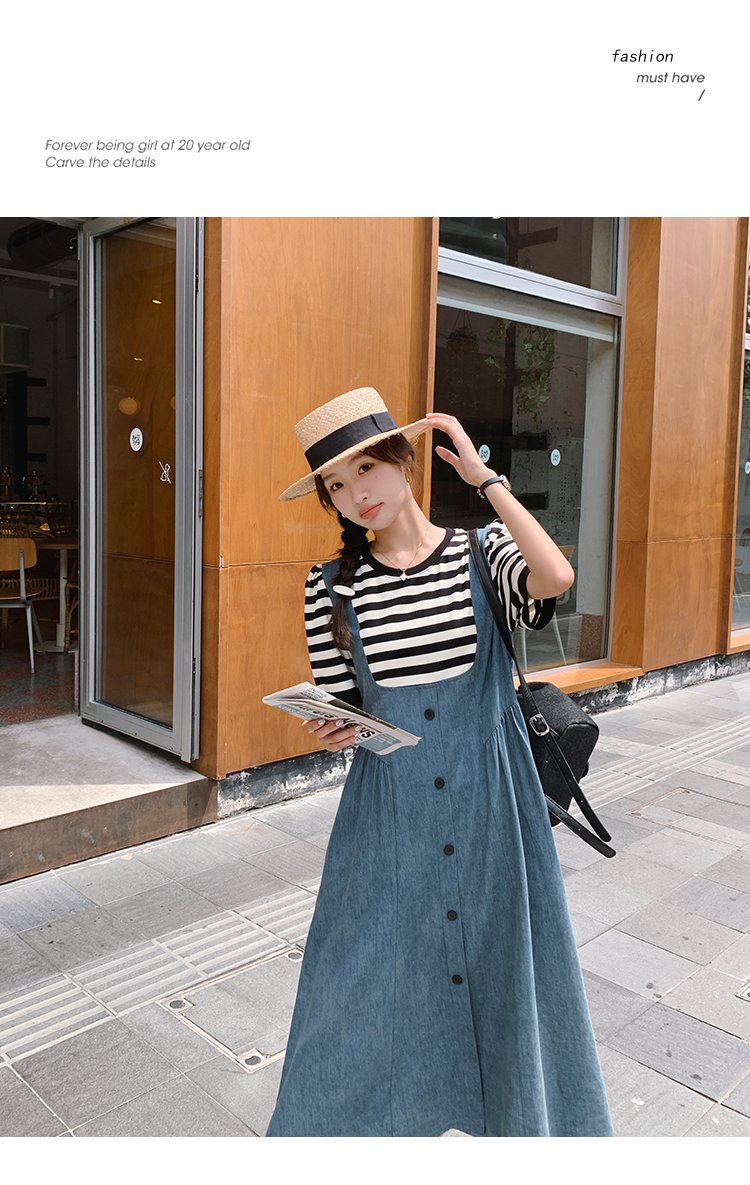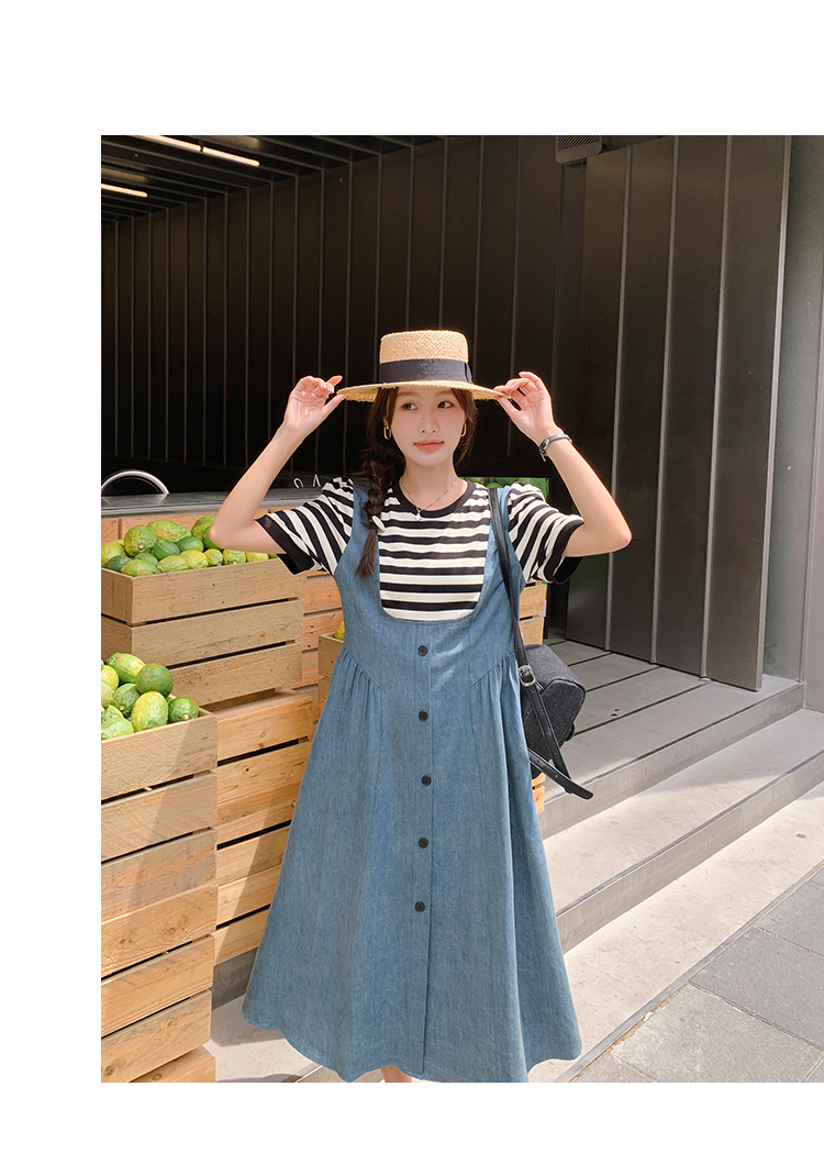 獨家訂製│韓系清甜感拼接牛仔吊帶假兩件式連身裙(06H4020)