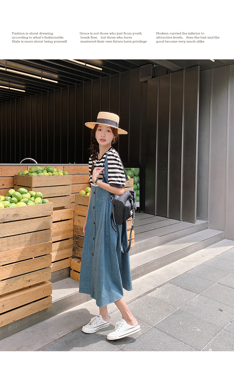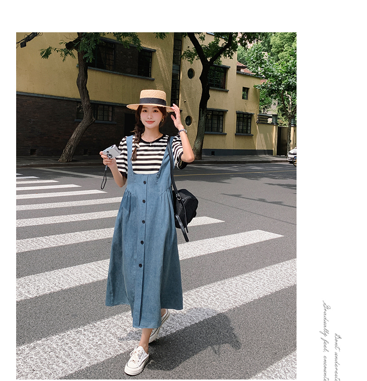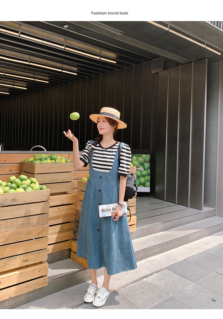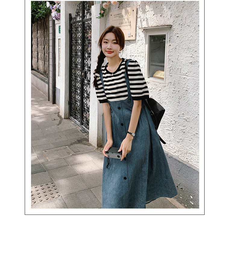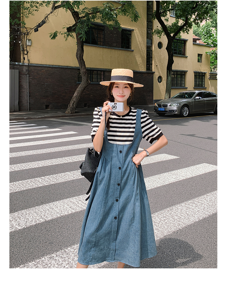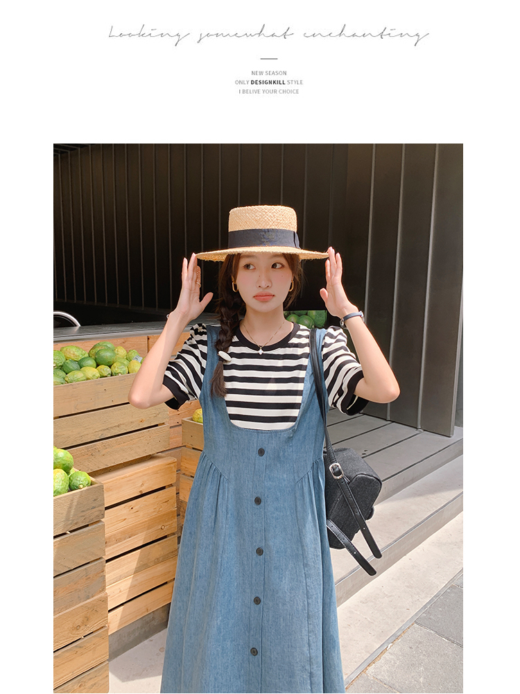 獨家訂製│韓系清甜感拼接牛仔吊帶假兩件式連身裙(06H4020)