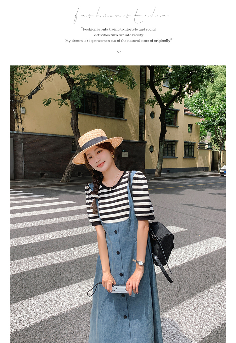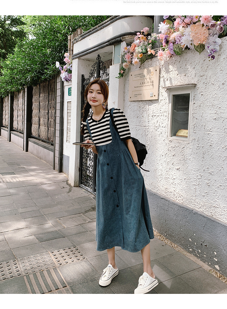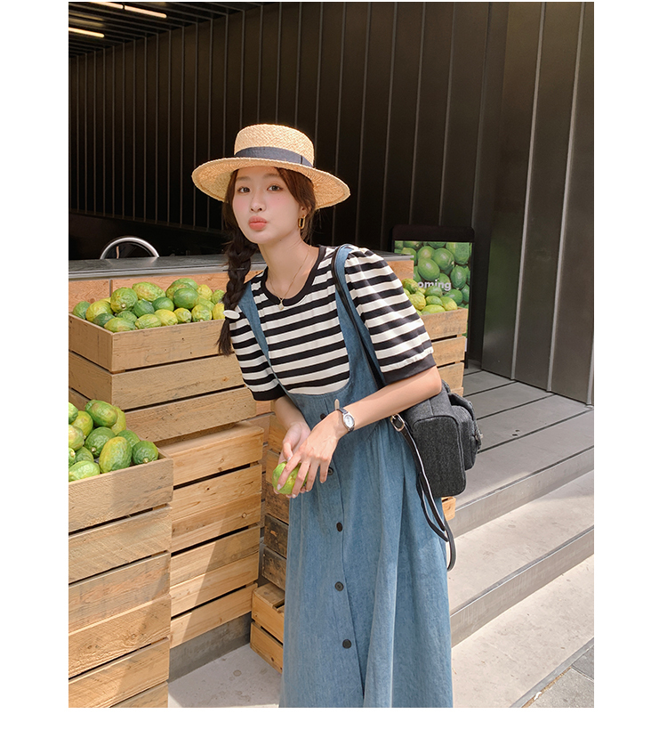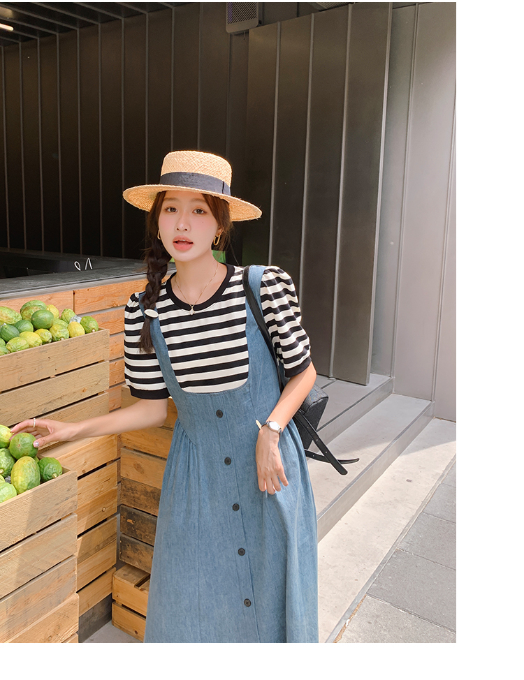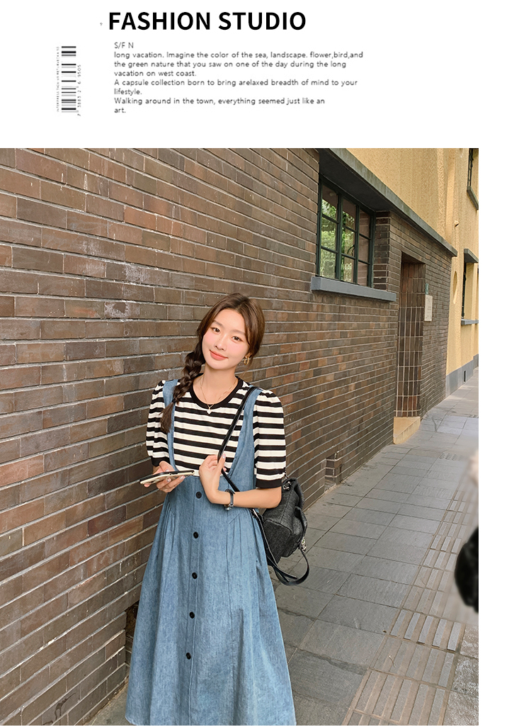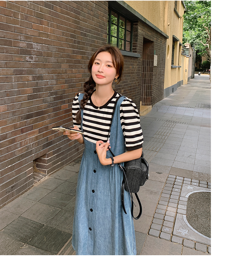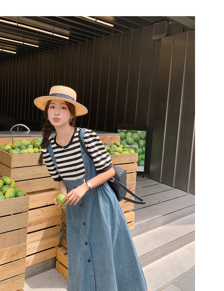 獨家訂製│韓系清甜感拼接牛仔吊帶假兩件式連身裙(06H4020)