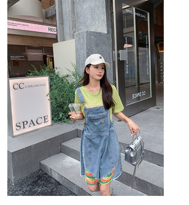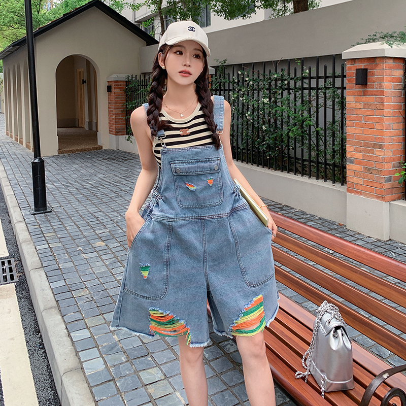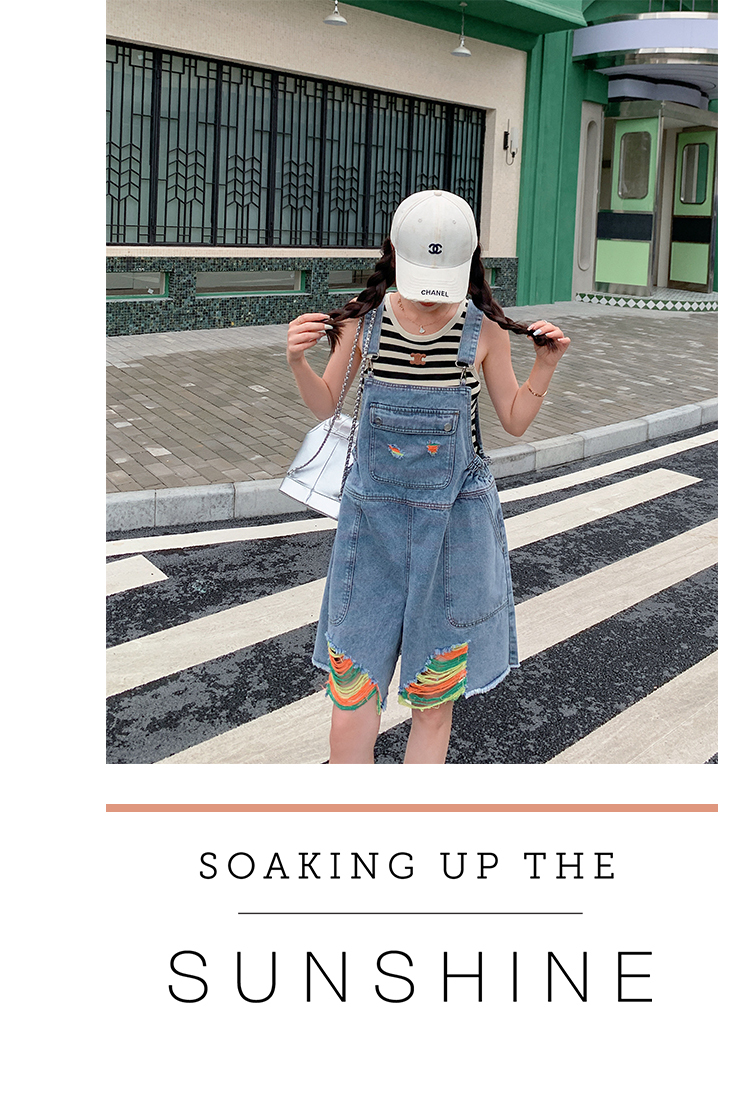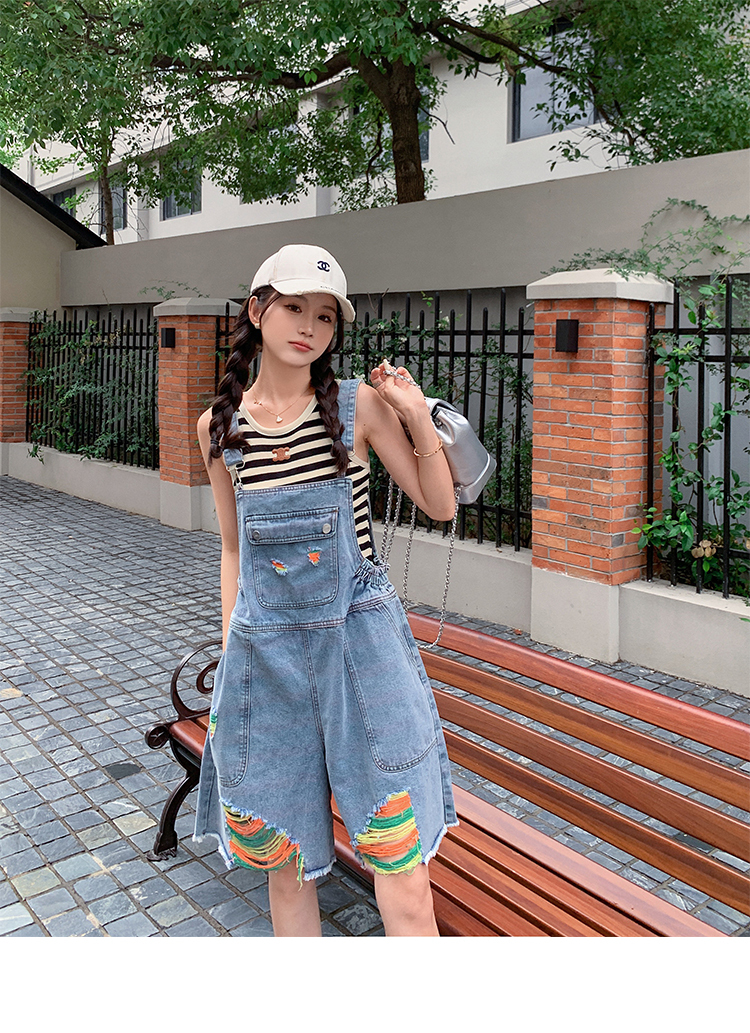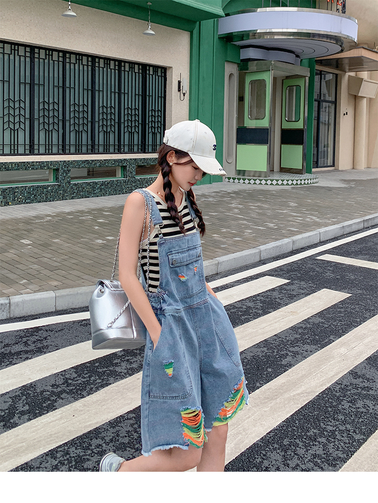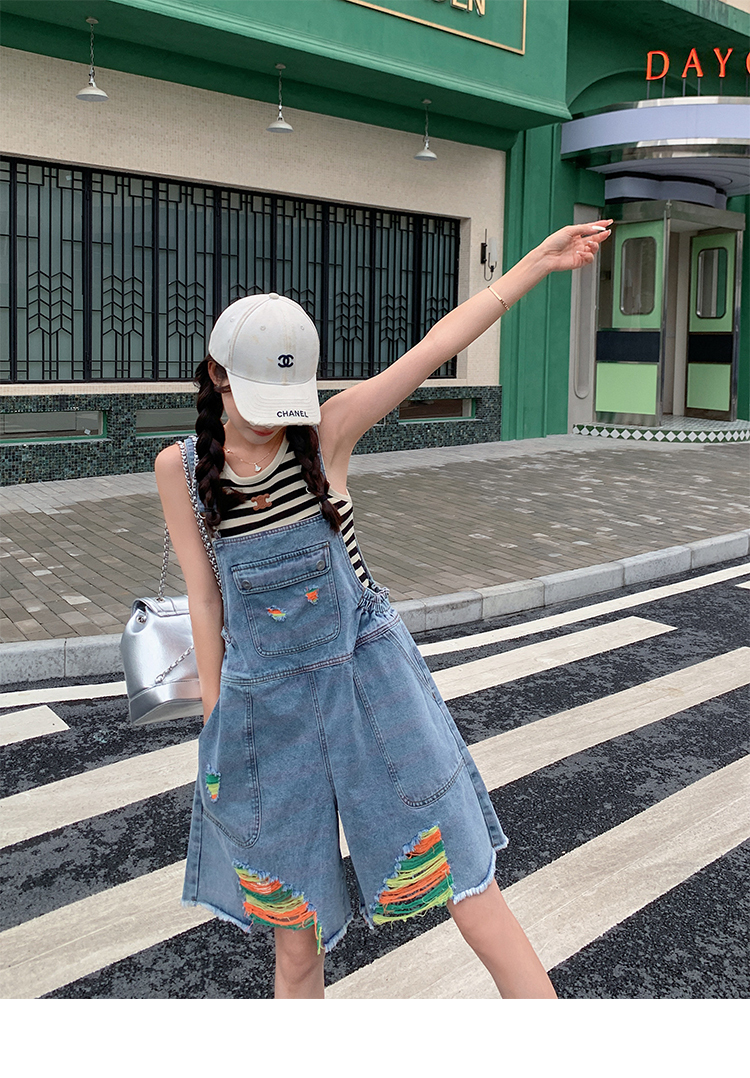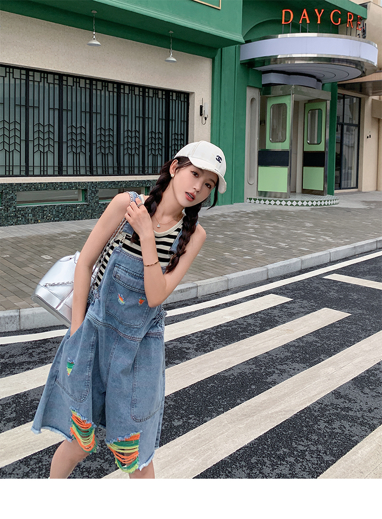 獨家訂製│韓系甜酷風繽紛刷破彈性收腰闊腿吊帶褲(06H4033)