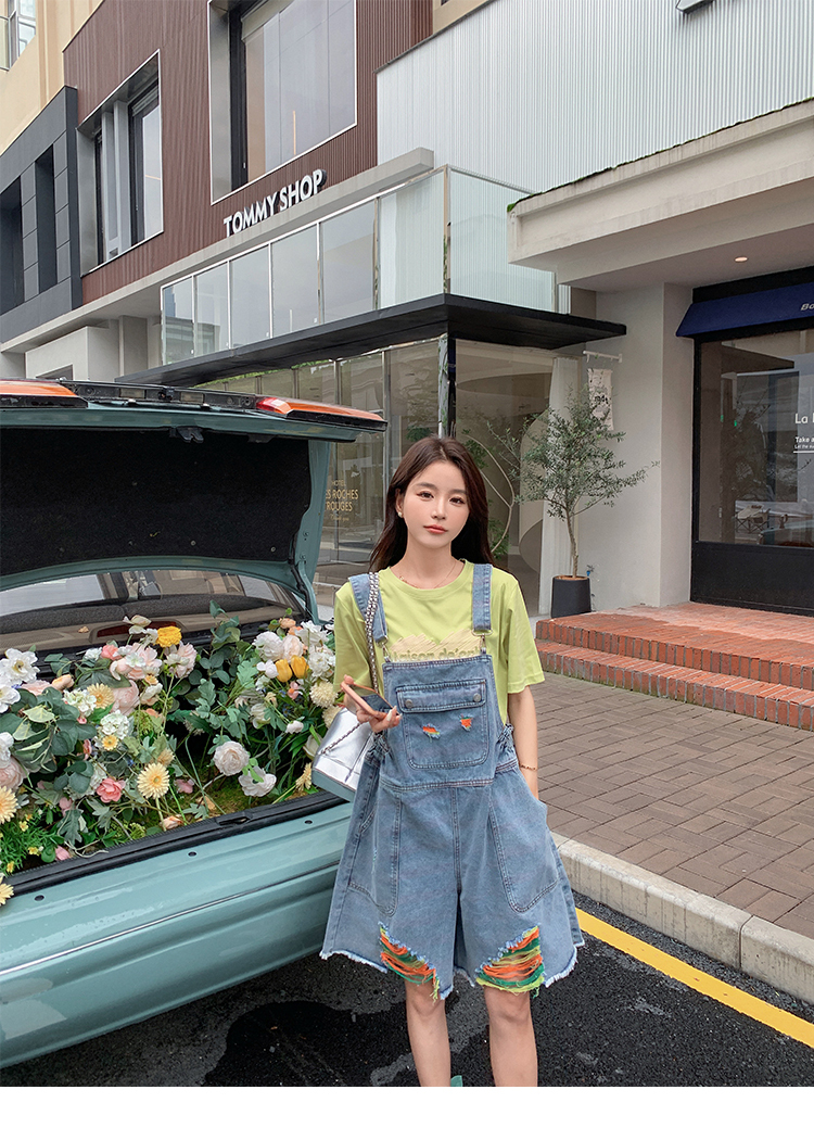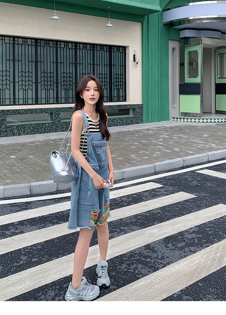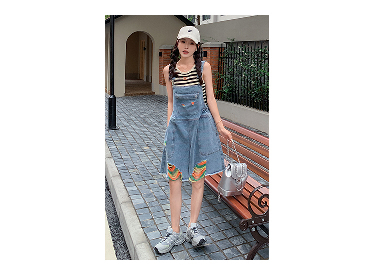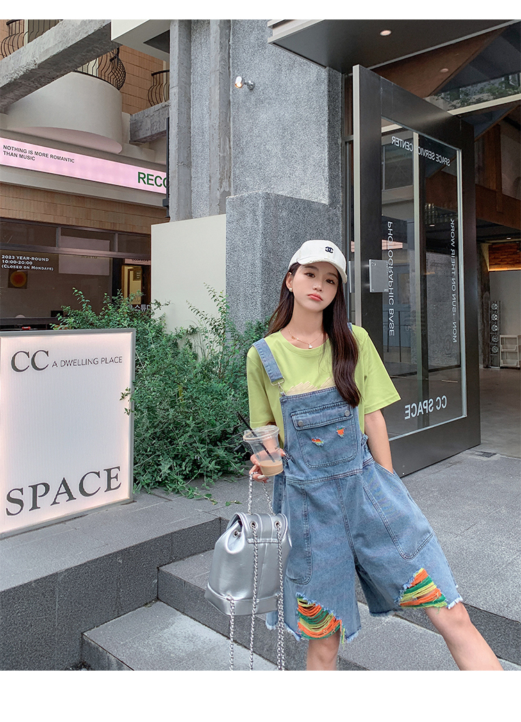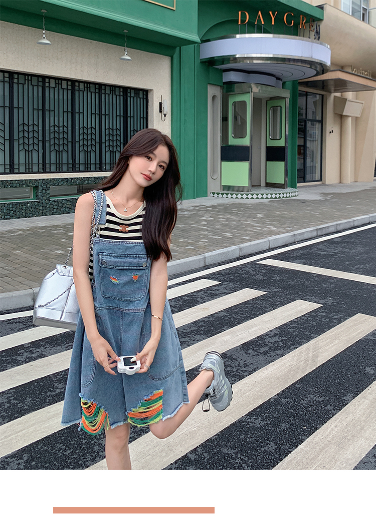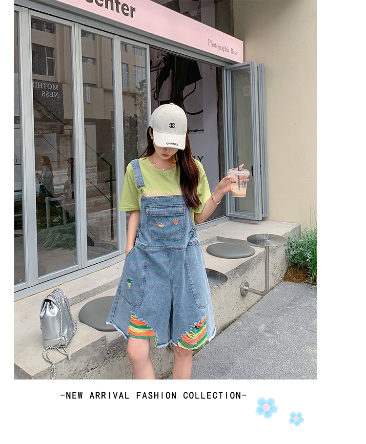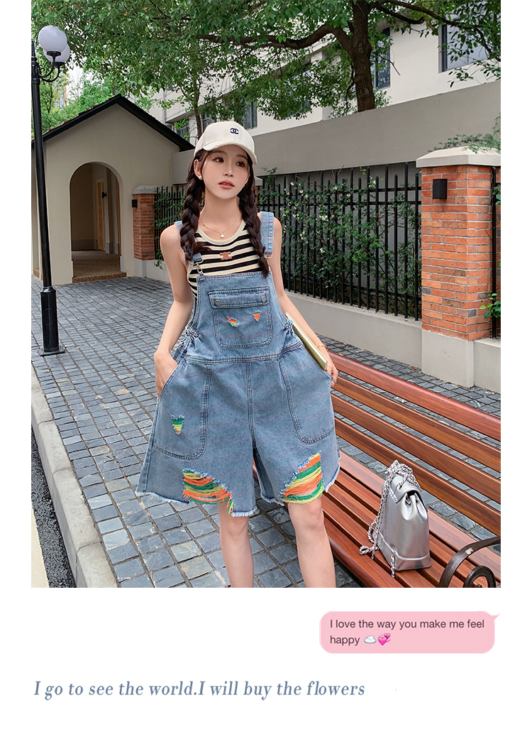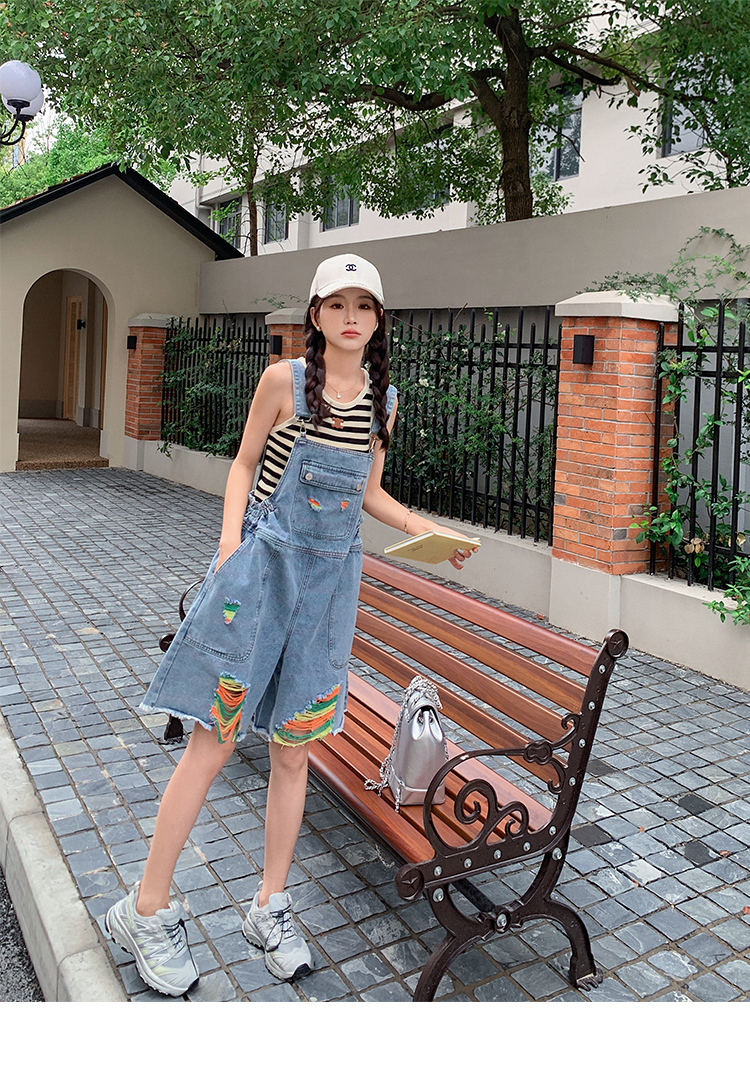 獨家訂製│韓系甜酷風繽紛刷破彈性收腰闊腿吊帶褲(06H4033)