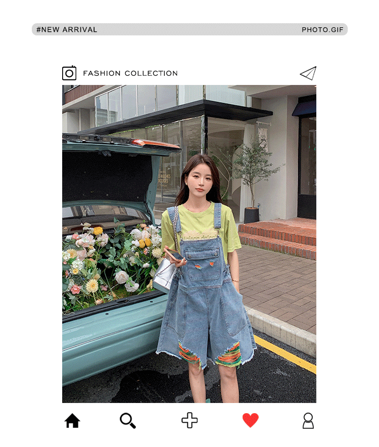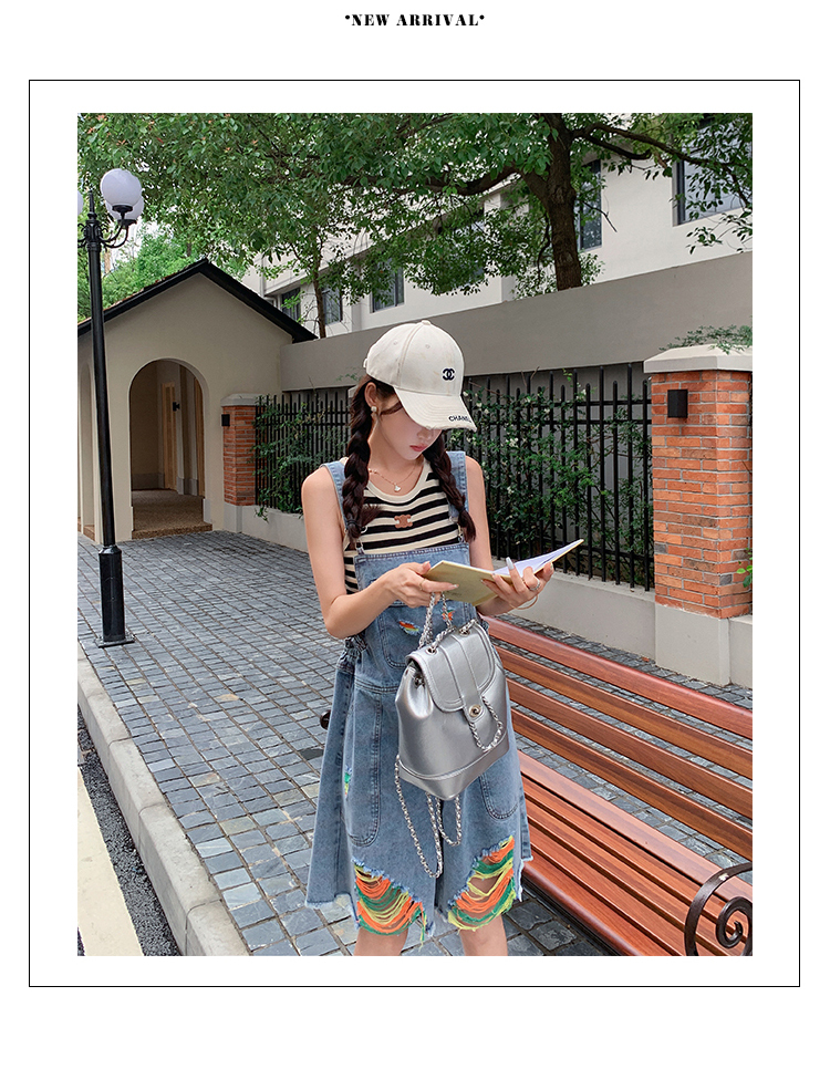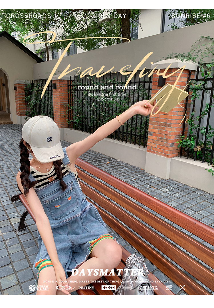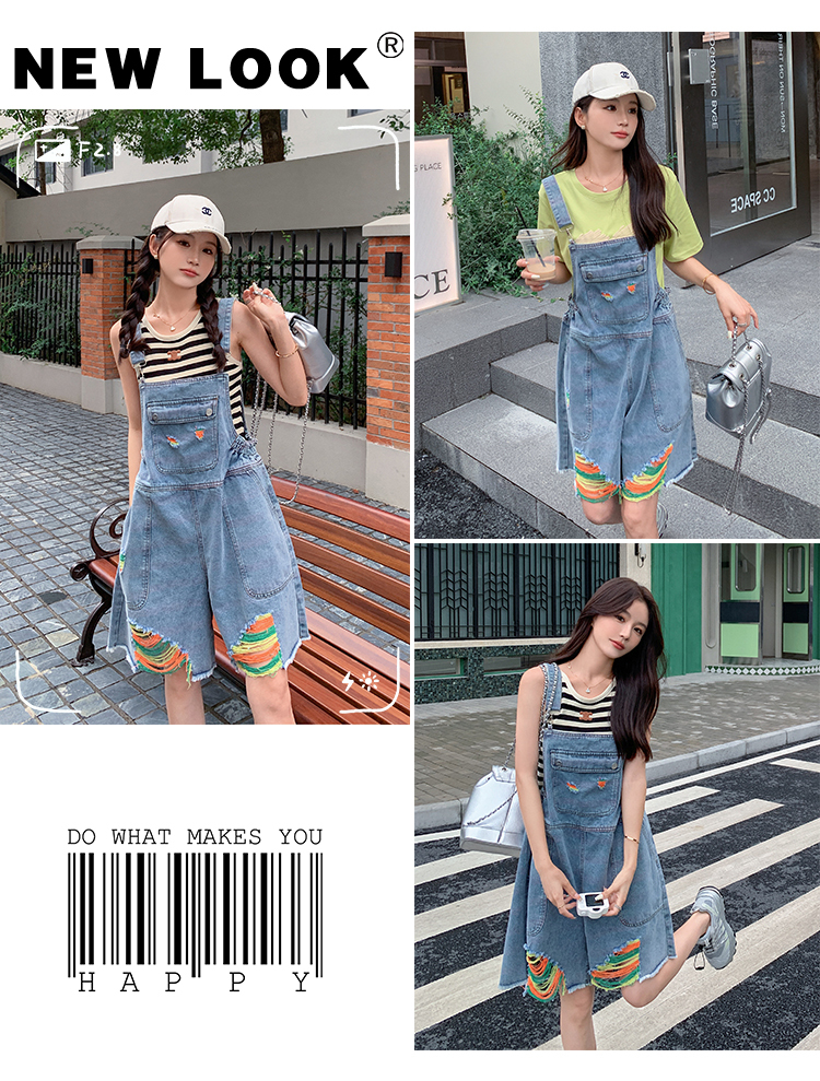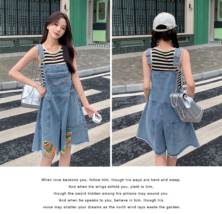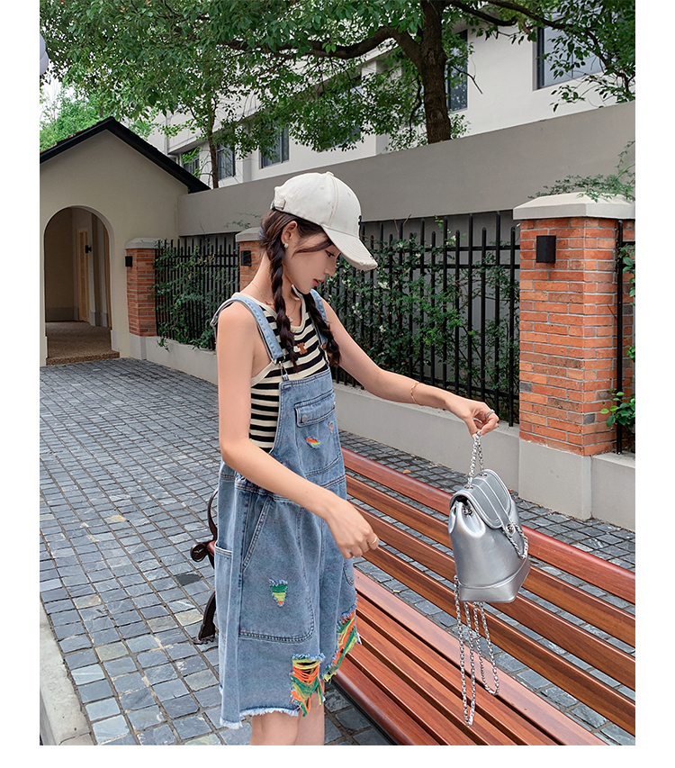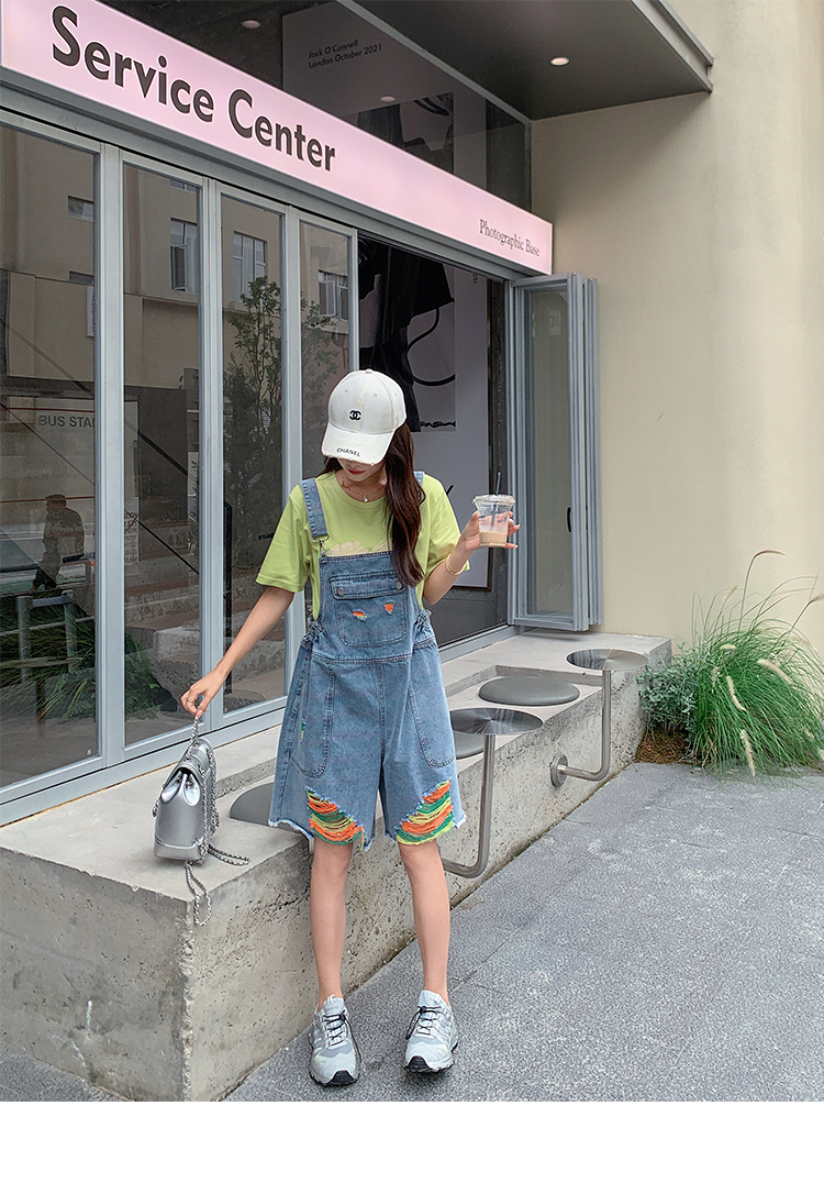 獨家訂製│韓系甜酷風繽紛刷破彈性收腰闊腿吊帶褲(06H4033)
