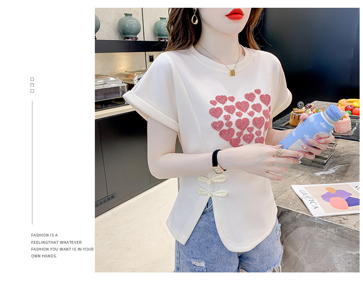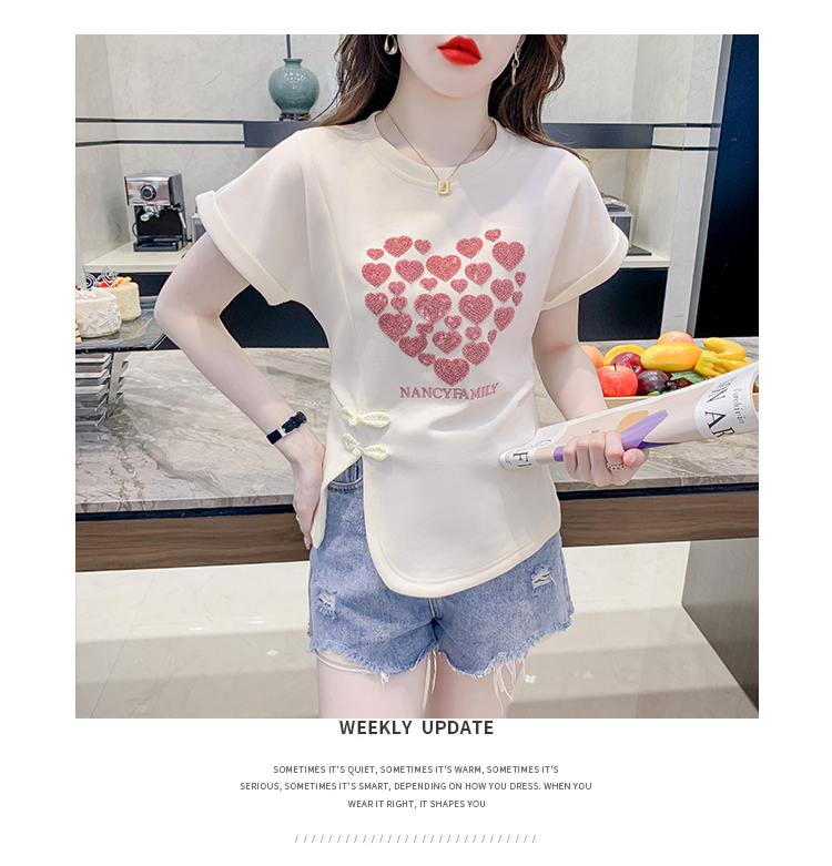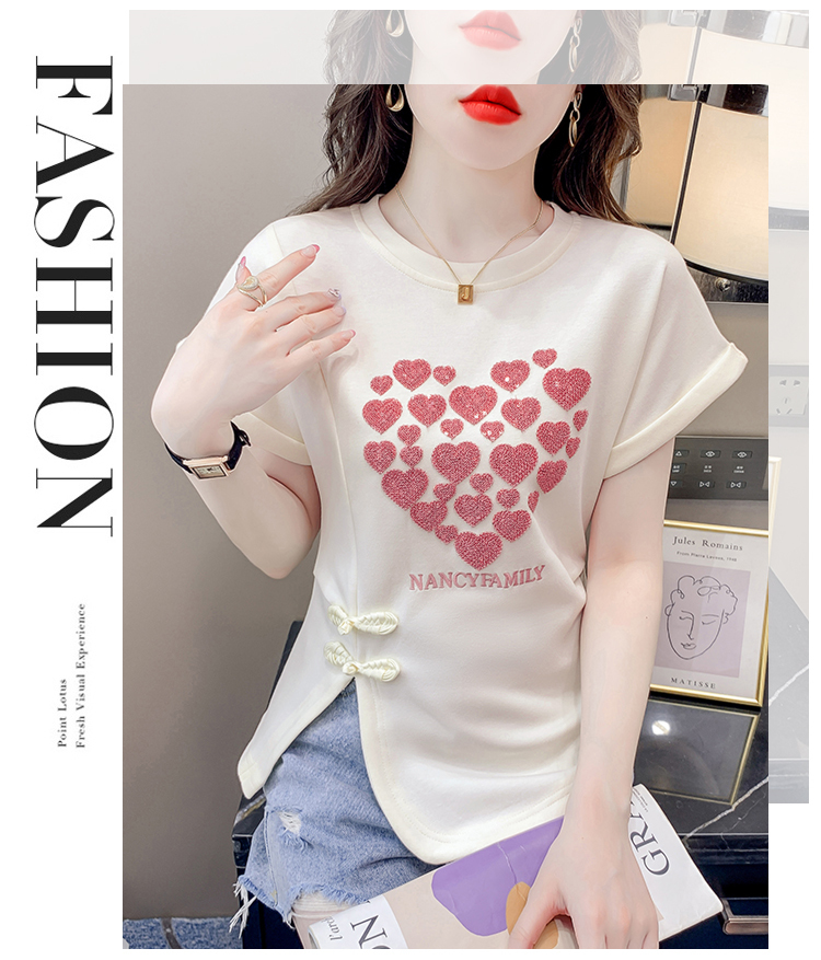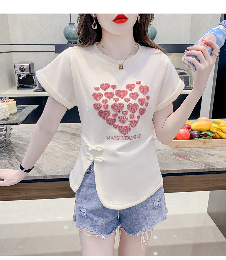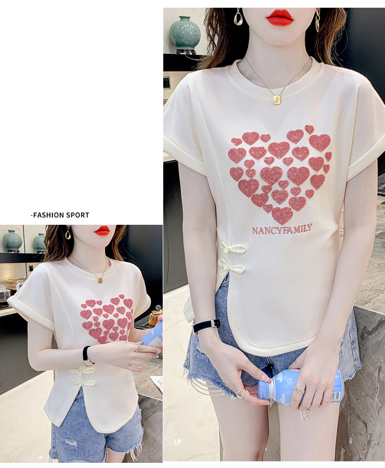 限量特惠|甜美不規則收腰盤扣開叉T恤(06H4058)