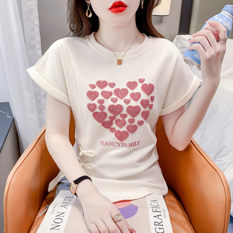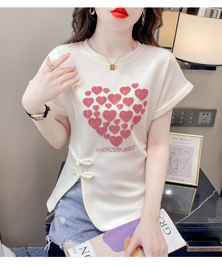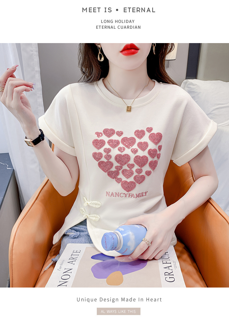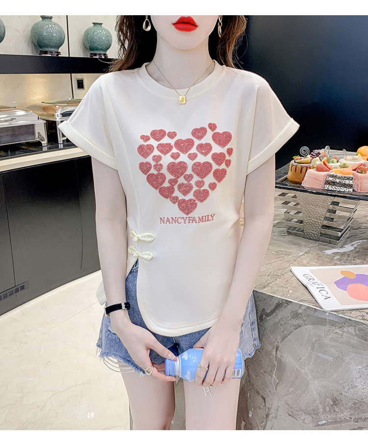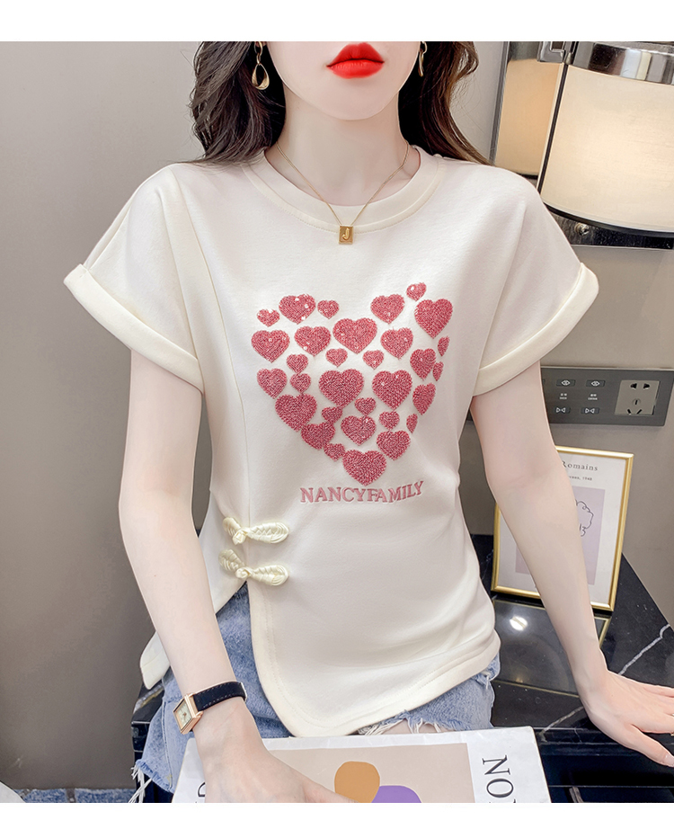 限量特惠|甜美不規則收腰盤扣開叉T恤(06H4058)