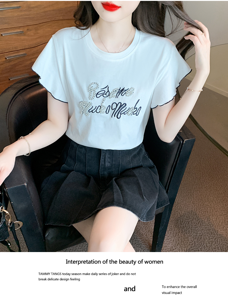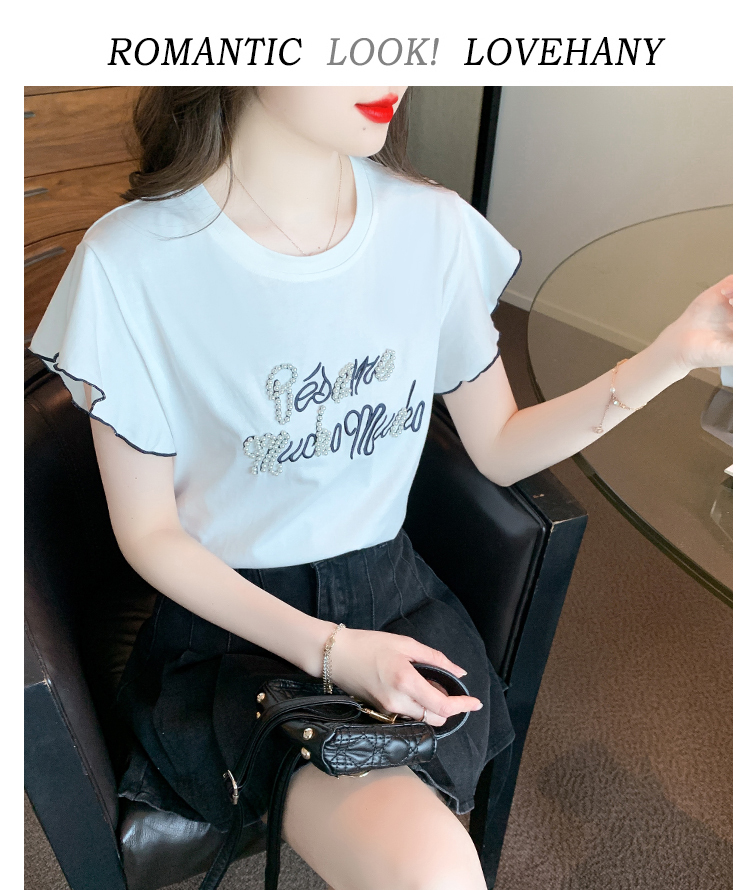 限量特惠|甜美字母刺繡釘珠T恤(06H4060)