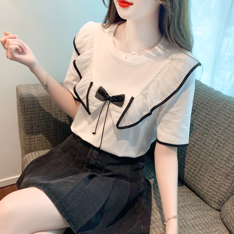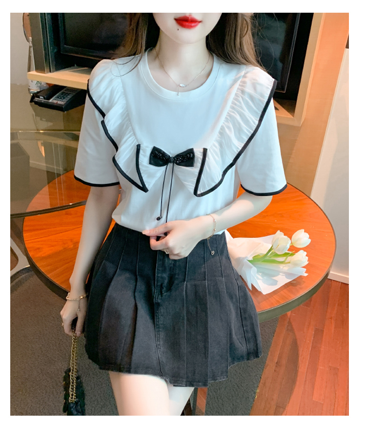 限量特惠|清甜減齡荷葉邊蝴蝶結T恤(06H4092)