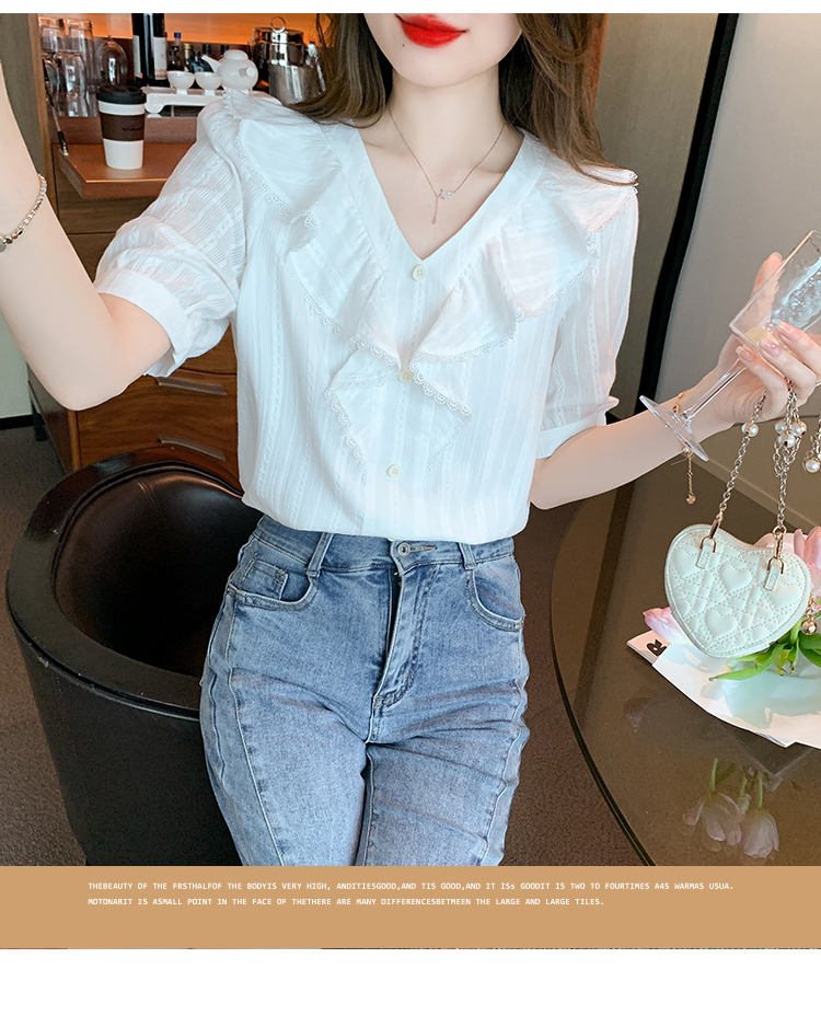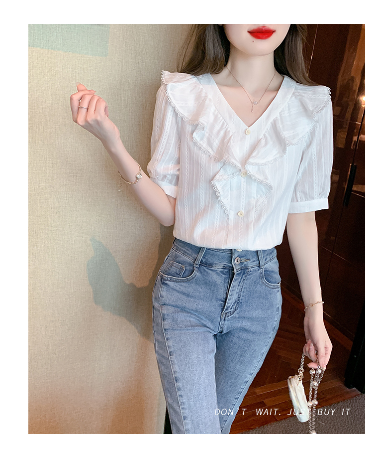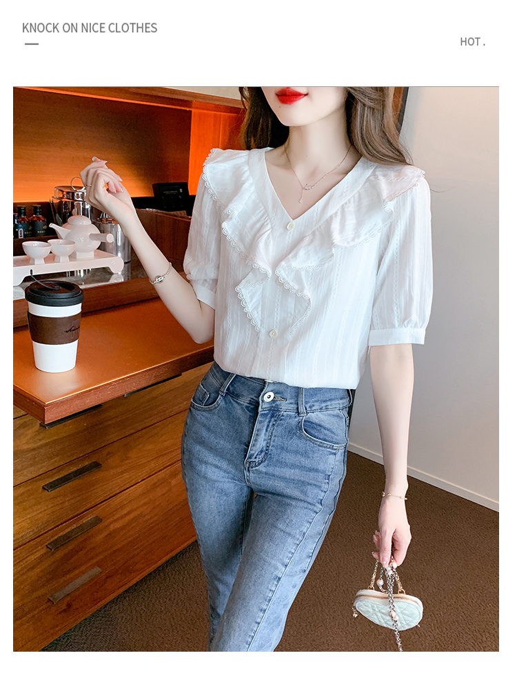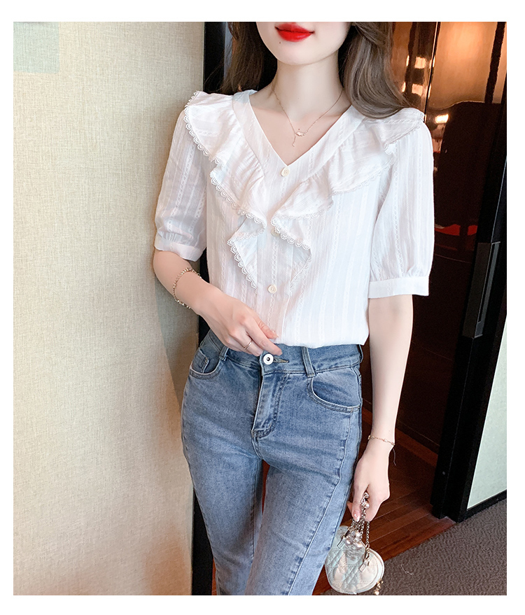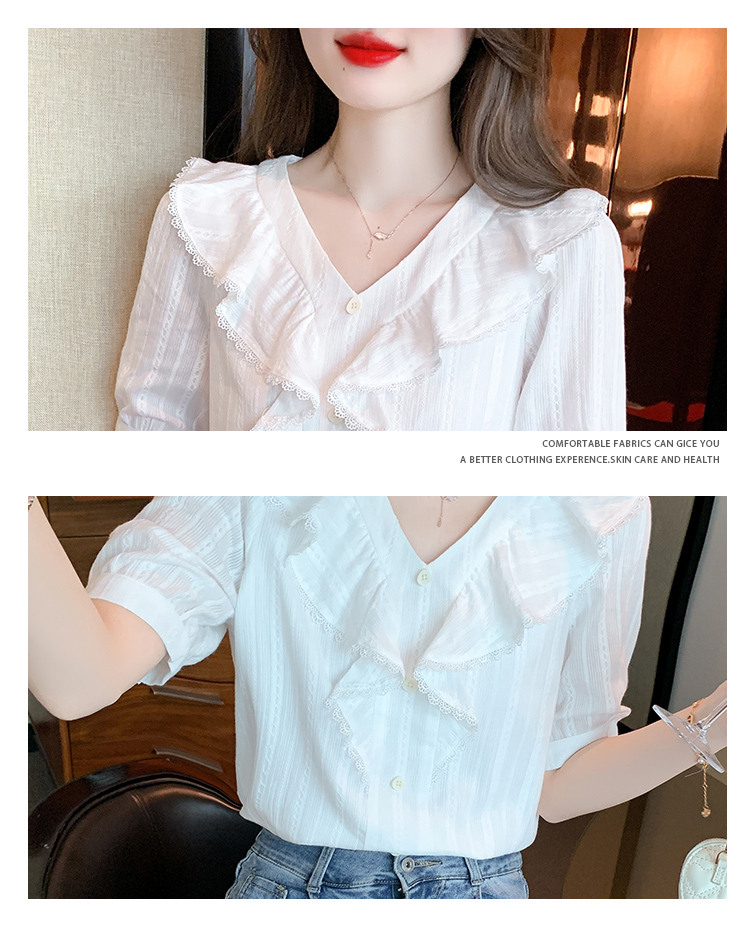 限量特惠|氣質荷葉花邊造型雪紡上衣(06H4093)