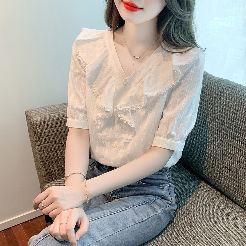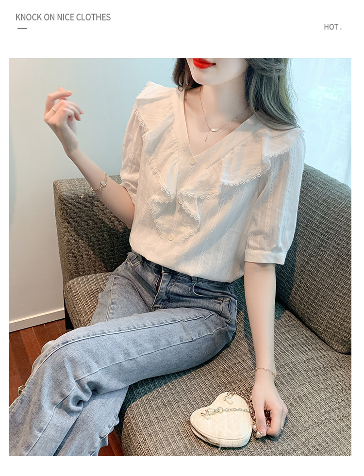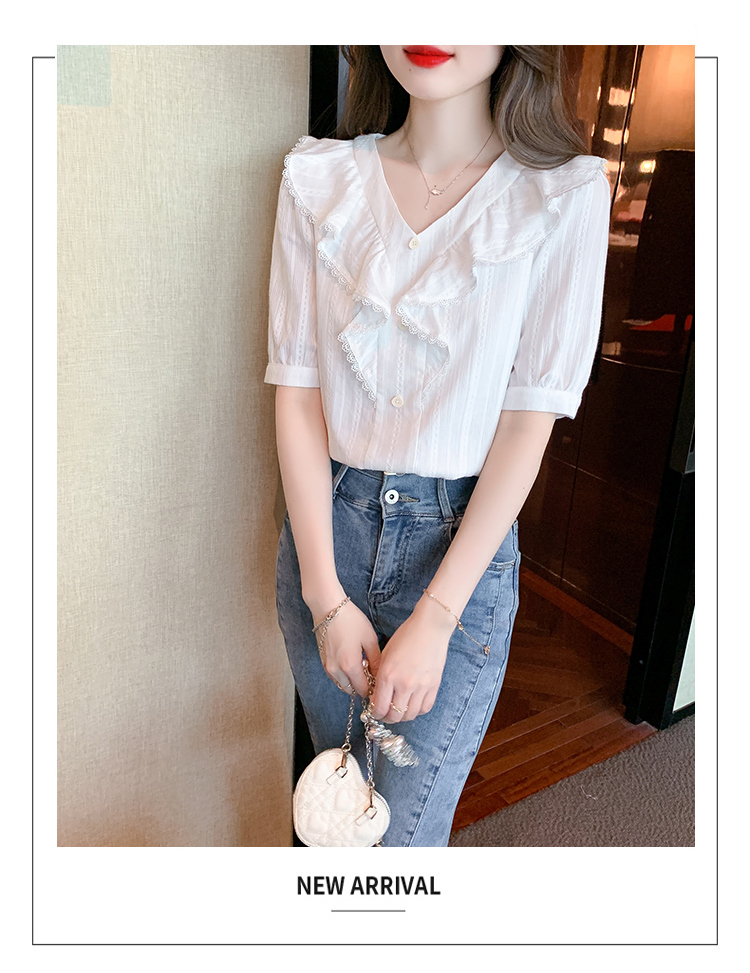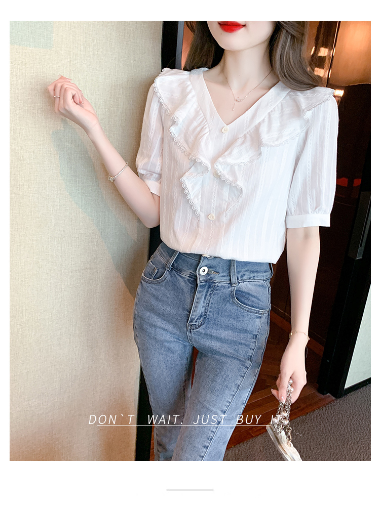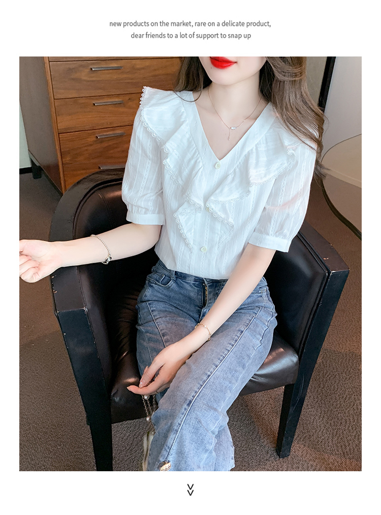 限量特惠|氣質荷葉花邊造型雪紡上衣(06H4093)